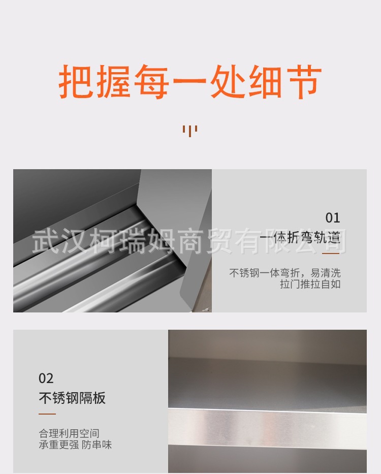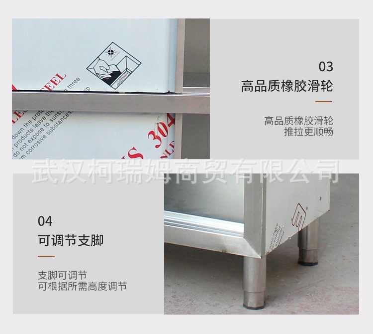매우 두꺼운 일체형 304 스테인리스 스틸 4도어 찬장, 양문형 찬장, 상업용 캐비닛, 수납 캐비닛, 식사 측면