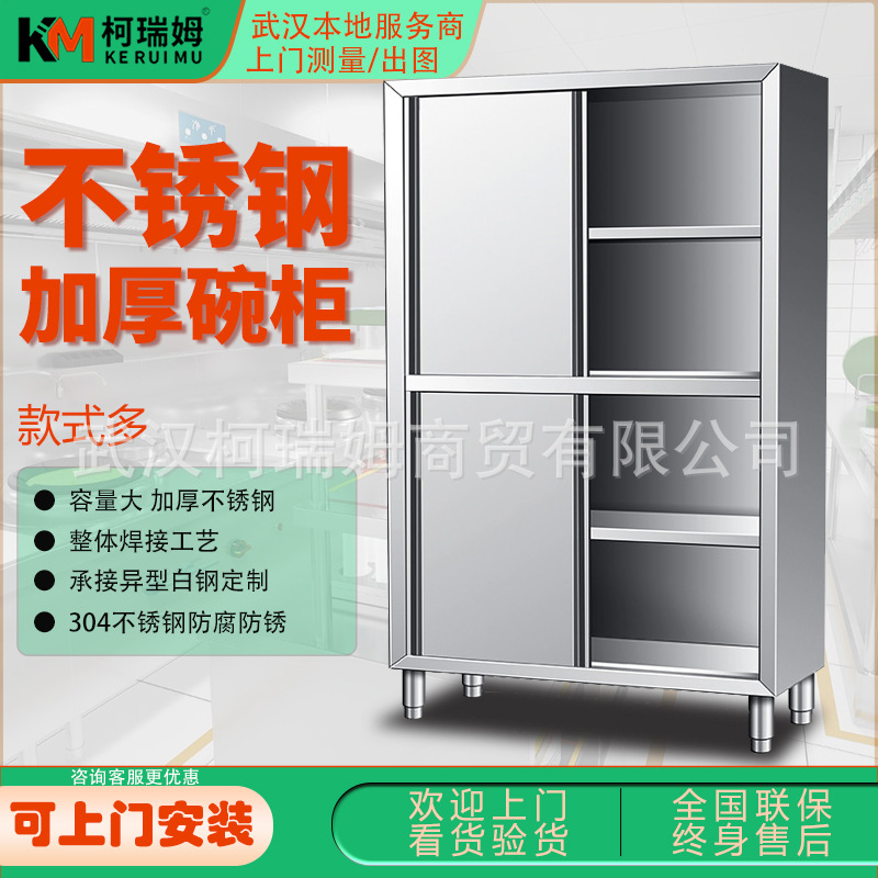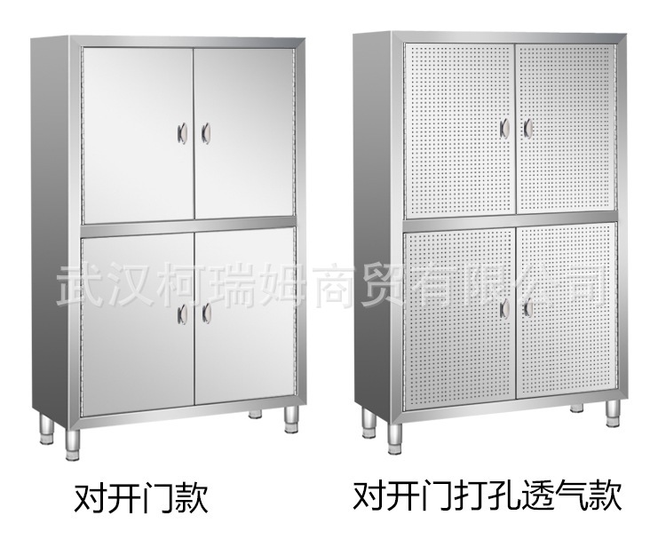 매우 두꺼운 일체형 304 스테인리스 스틸 4도어 찬장, 양문형 찬장, 상업용 캐비닛, 수납 캐비닛, 식사 측면스토어 가기