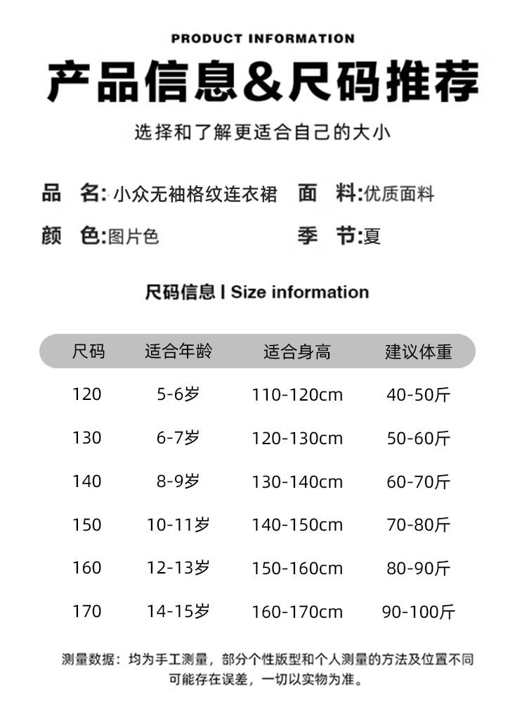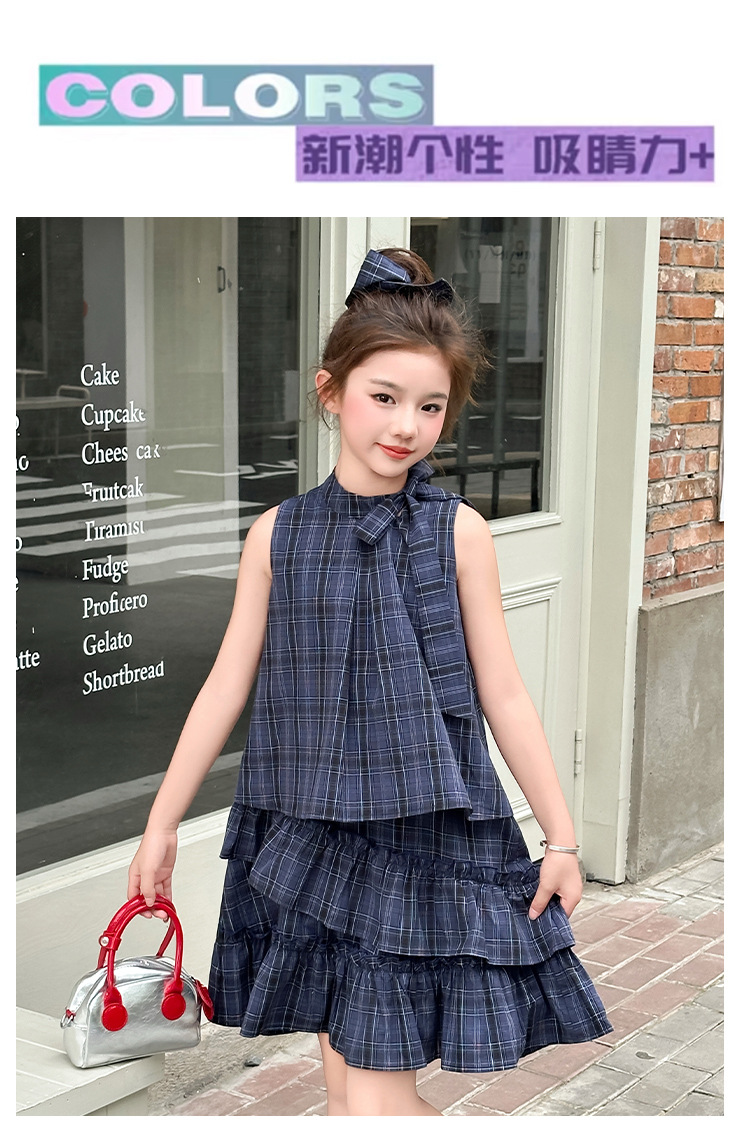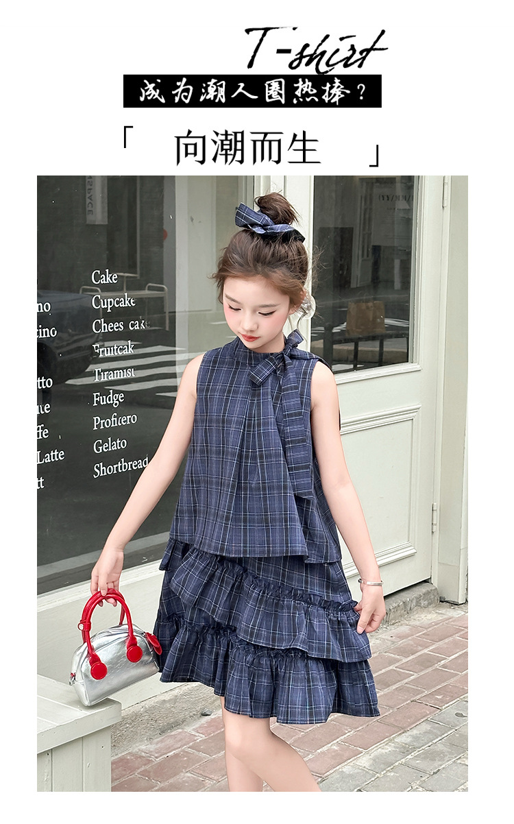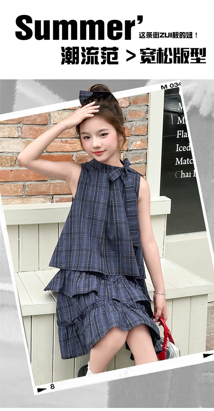 여자 드레스 2025 새로운 여름 스타일 유행 어린이 민소매 디자인 틈새 격자 무늬 조끼 드레스 유행스토어 가기