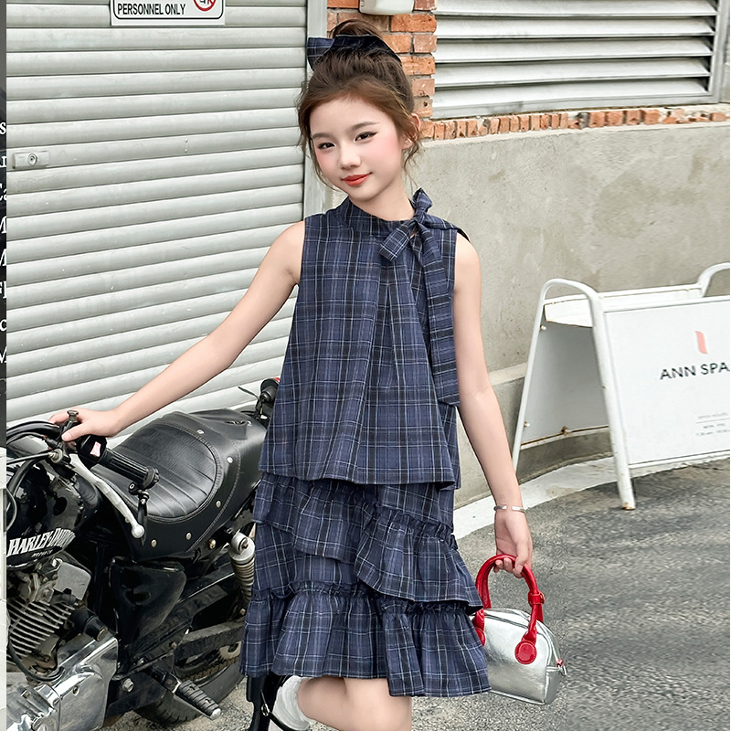 여자 드레스 2025 새로운 여름 스타일 유행 어린이 민소매 디자인 틈새 격자 무늬 조끼 드레스 유행
