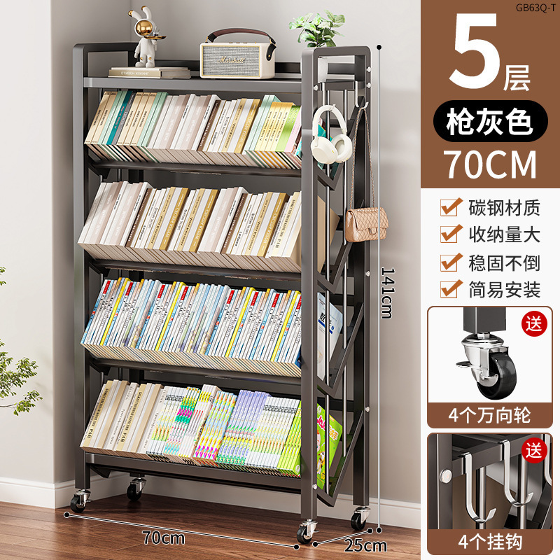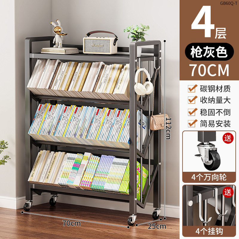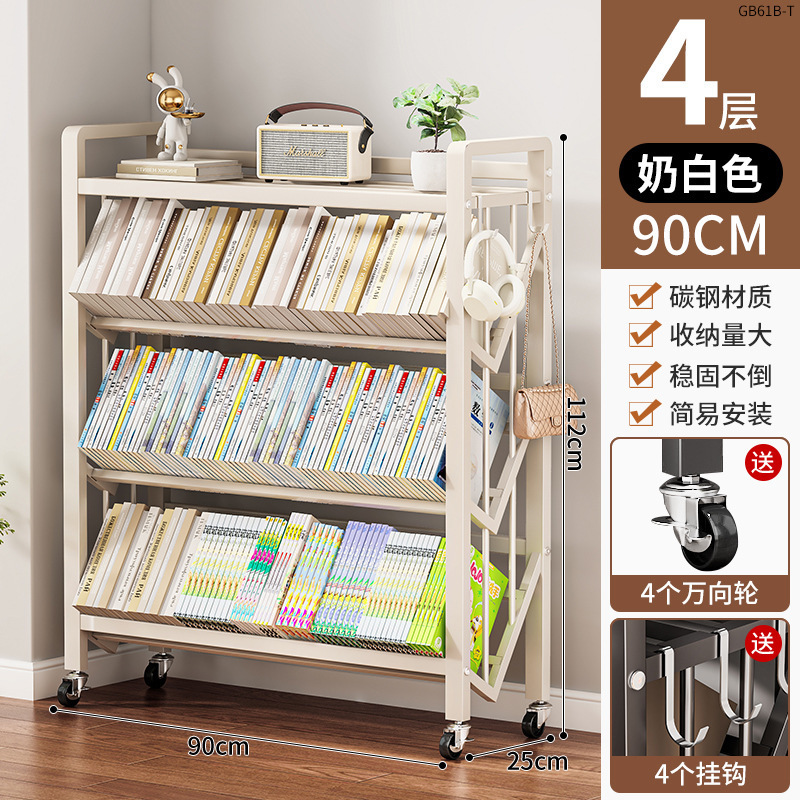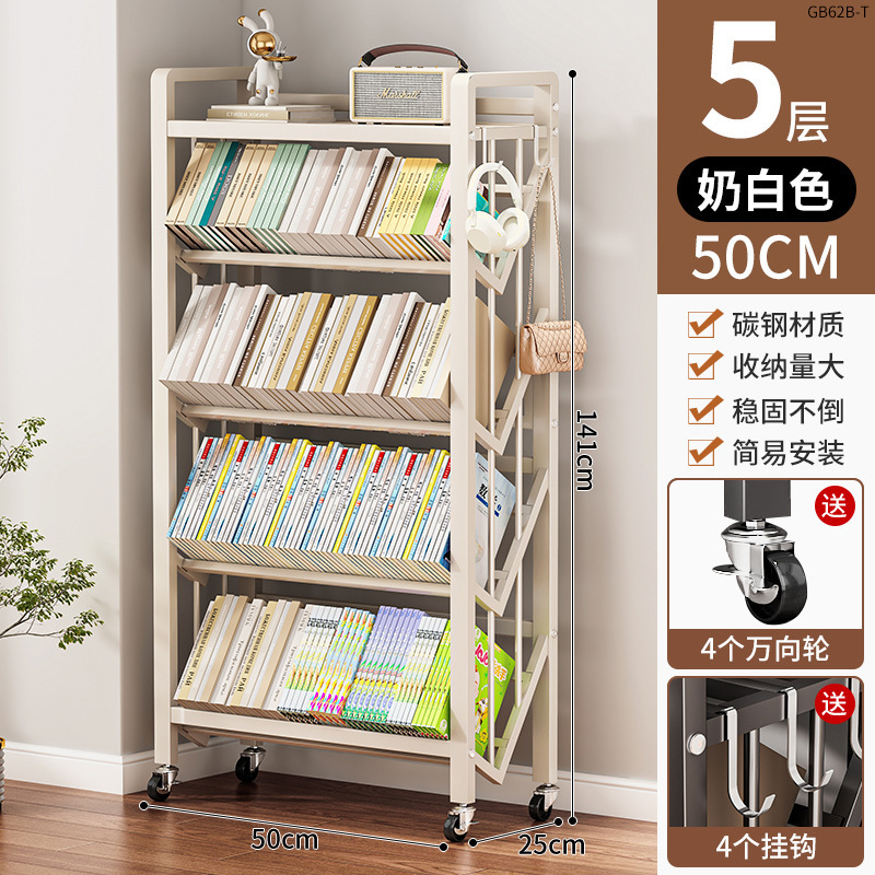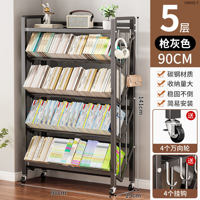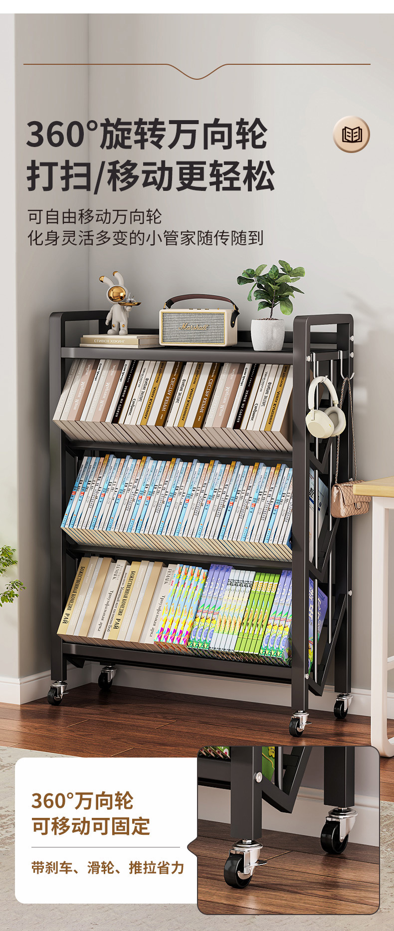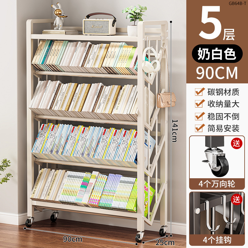 범용 바퀴가 달린 철제 책장, 벽에 붙은 바닥에서 천장까지의 선반, 간단한 이동식 어린이 도서 다층 수납 선반