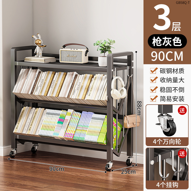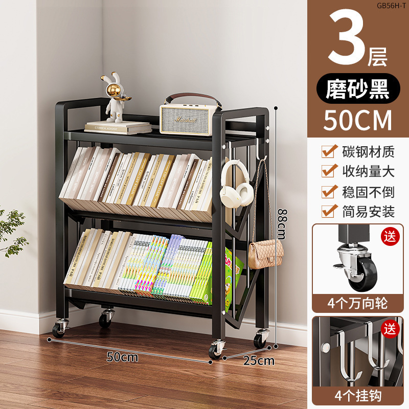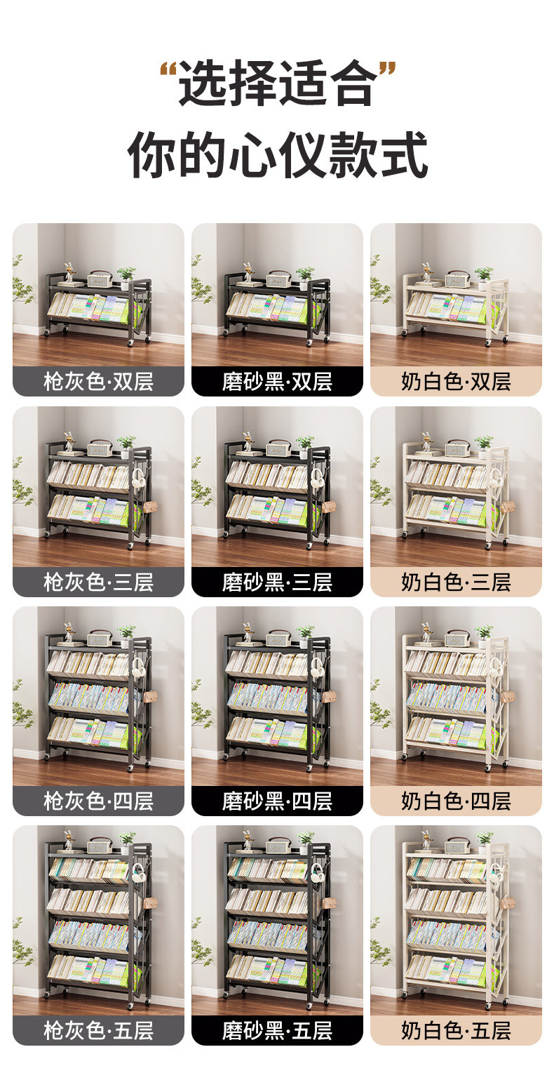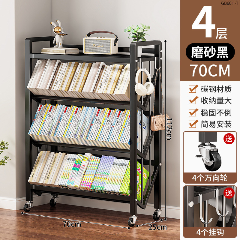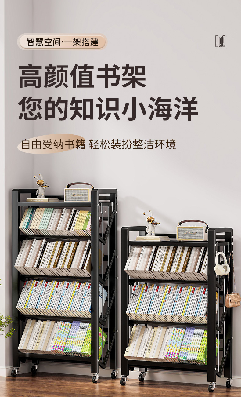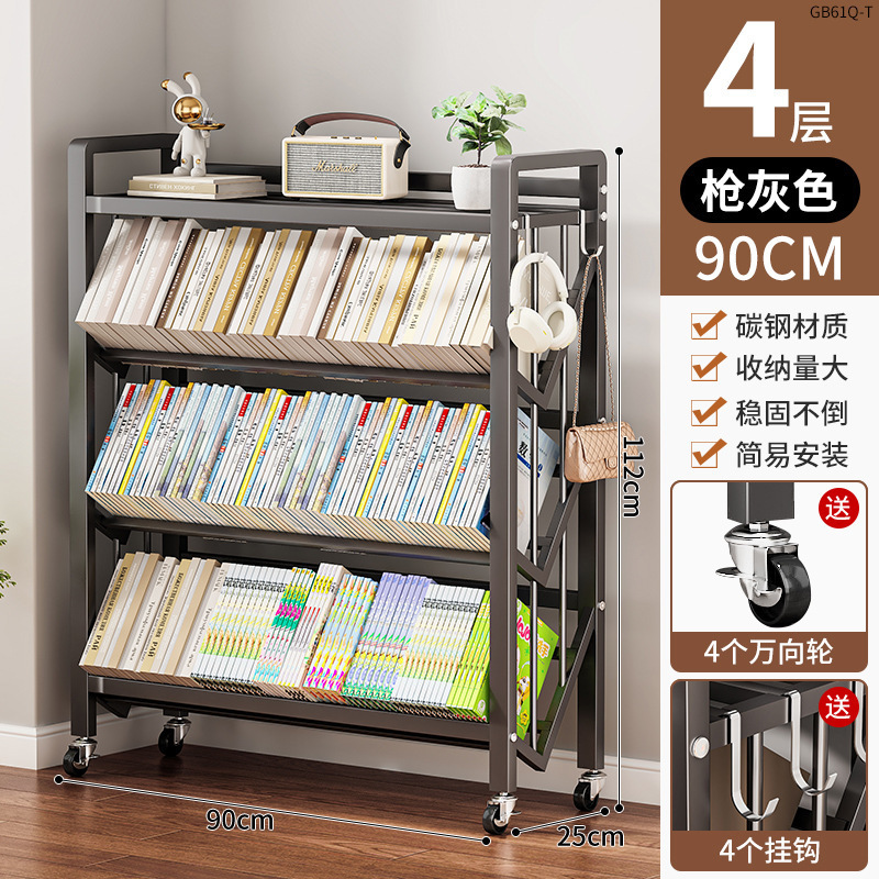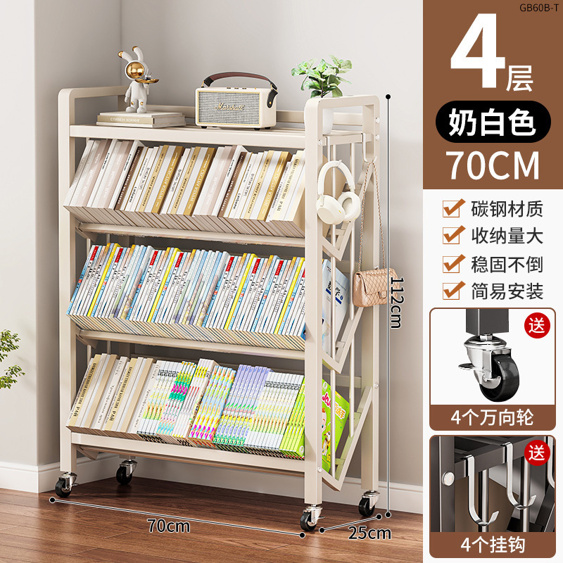 범용 바퀴가 달린 철제 책장, 벽에 붙은 바닥에서 천장까지의 선반, 간단한 이동식 어린이 도서 다층 수납 선반