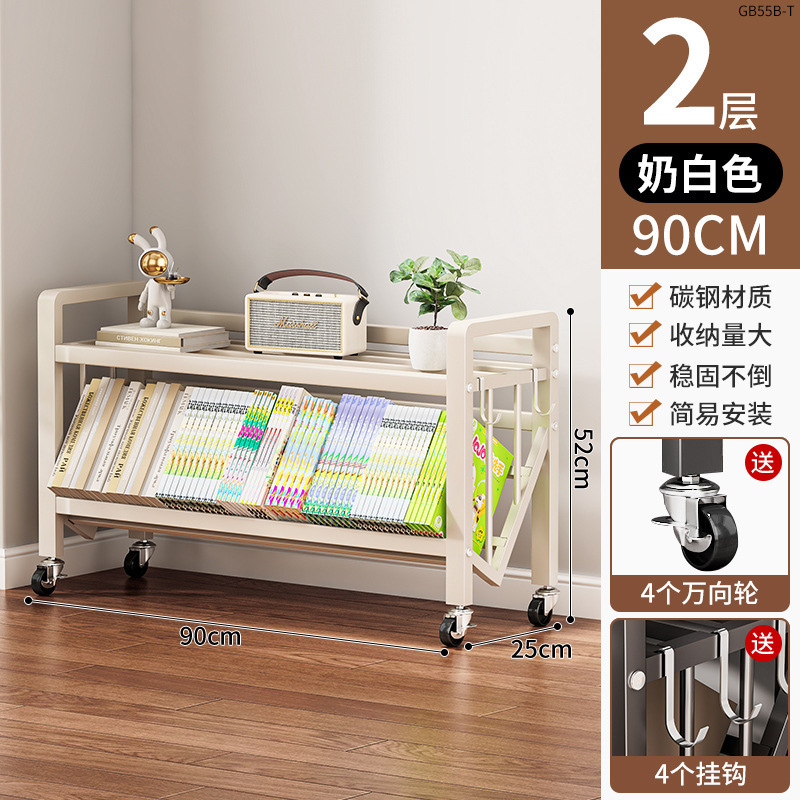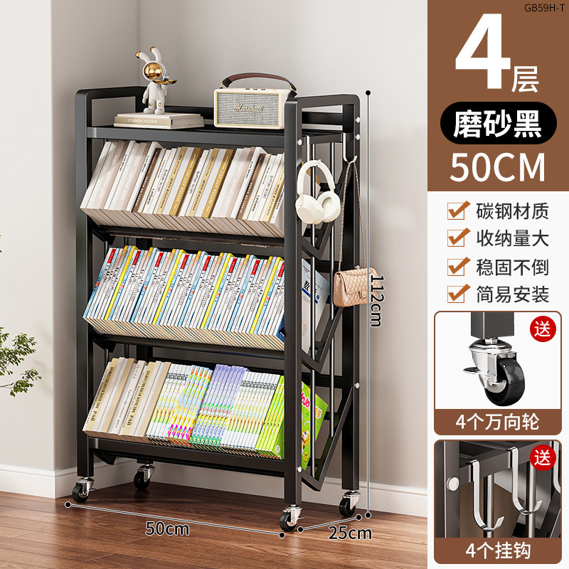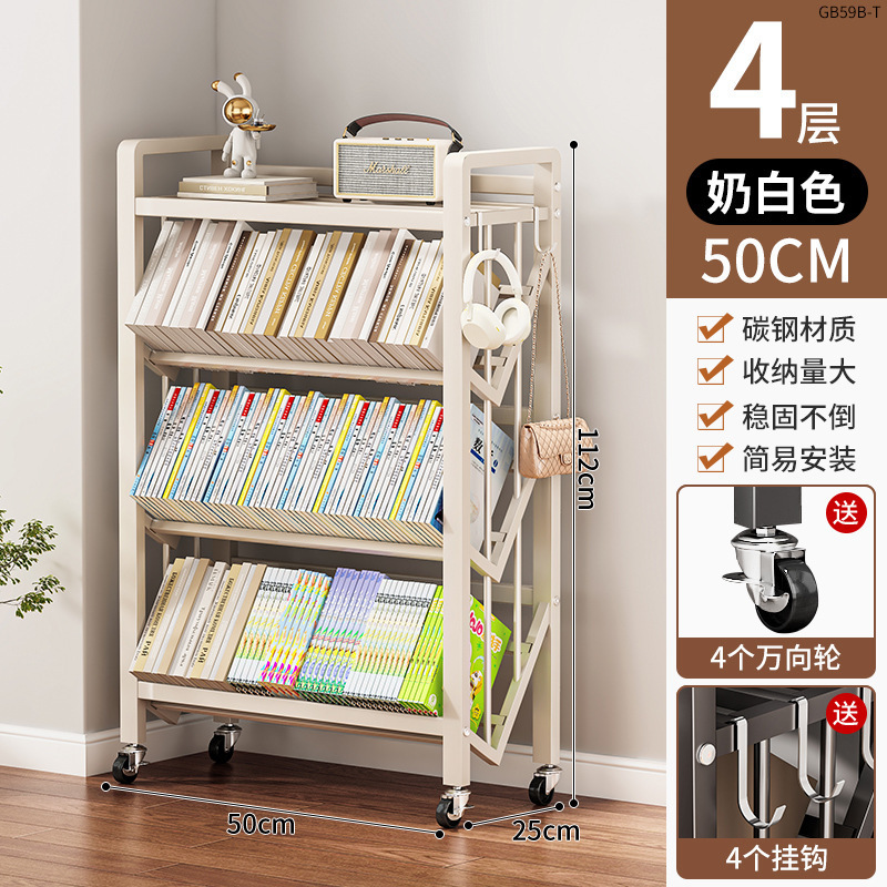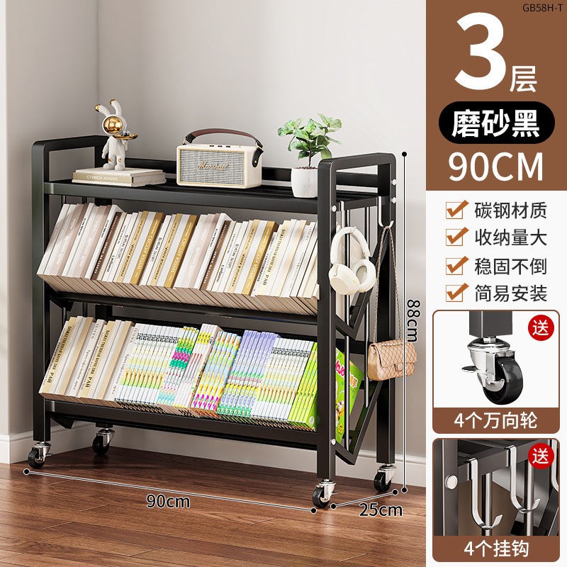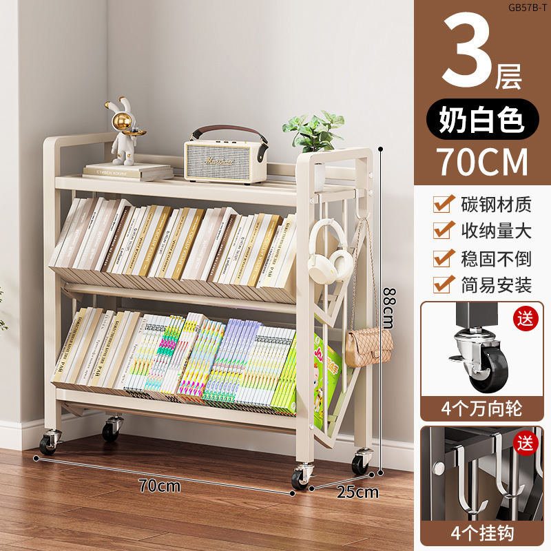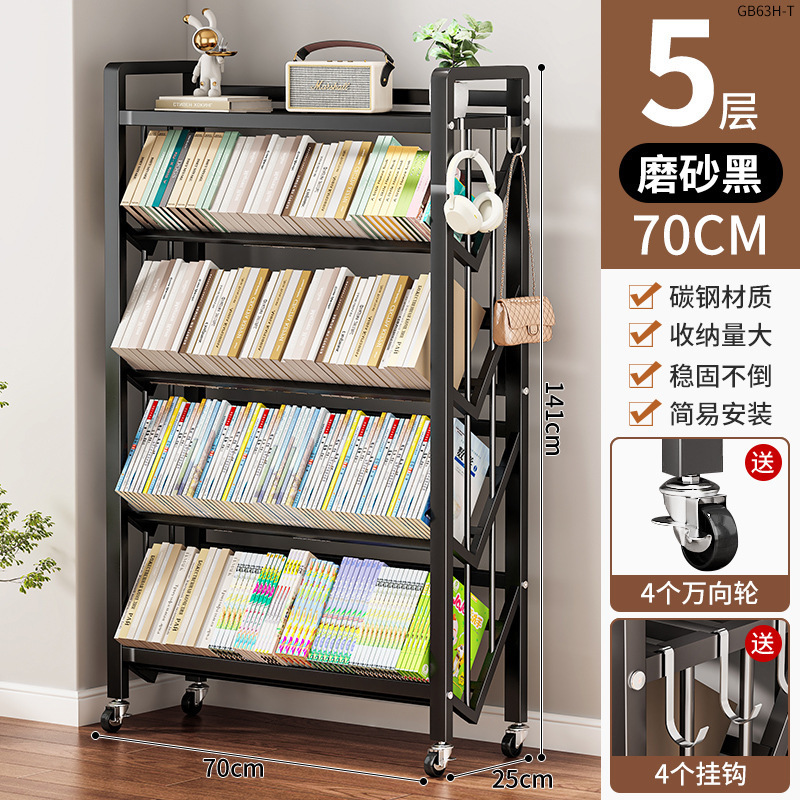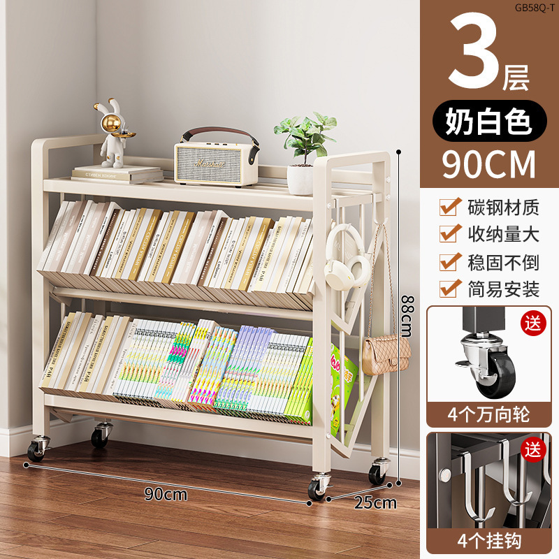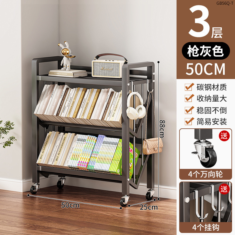 범용 바퀴가 달린 철제 책장, 벽에 붙은 바닥에서 천장까지의 선반, 간단한 이동식 어린이 도서 다층 수납 선반