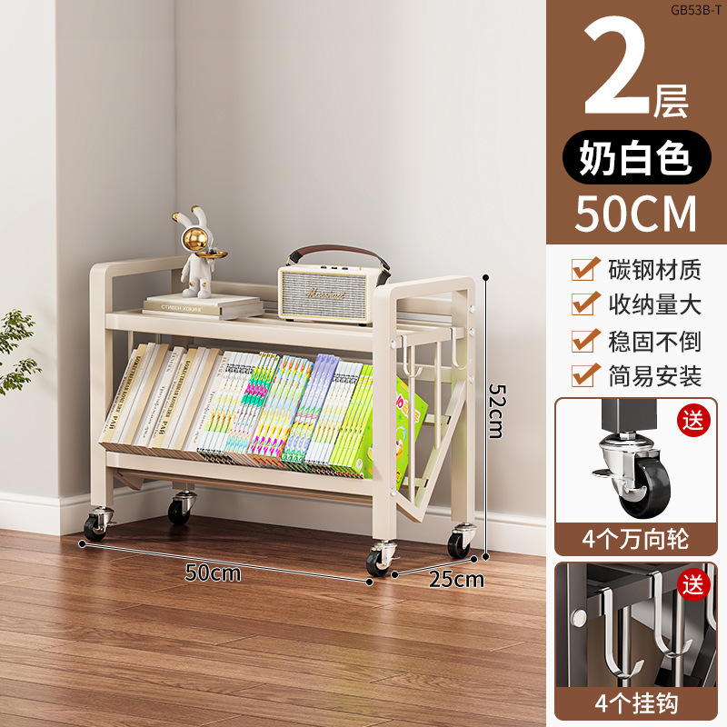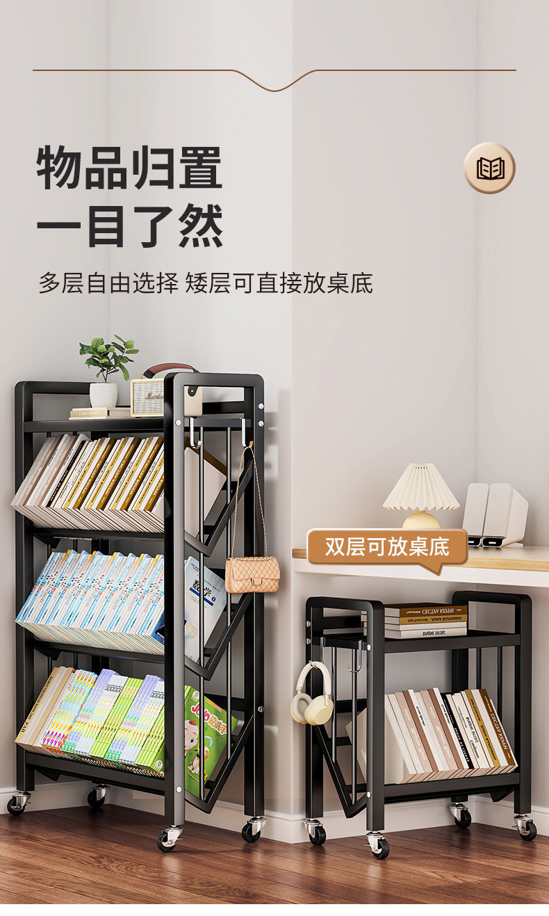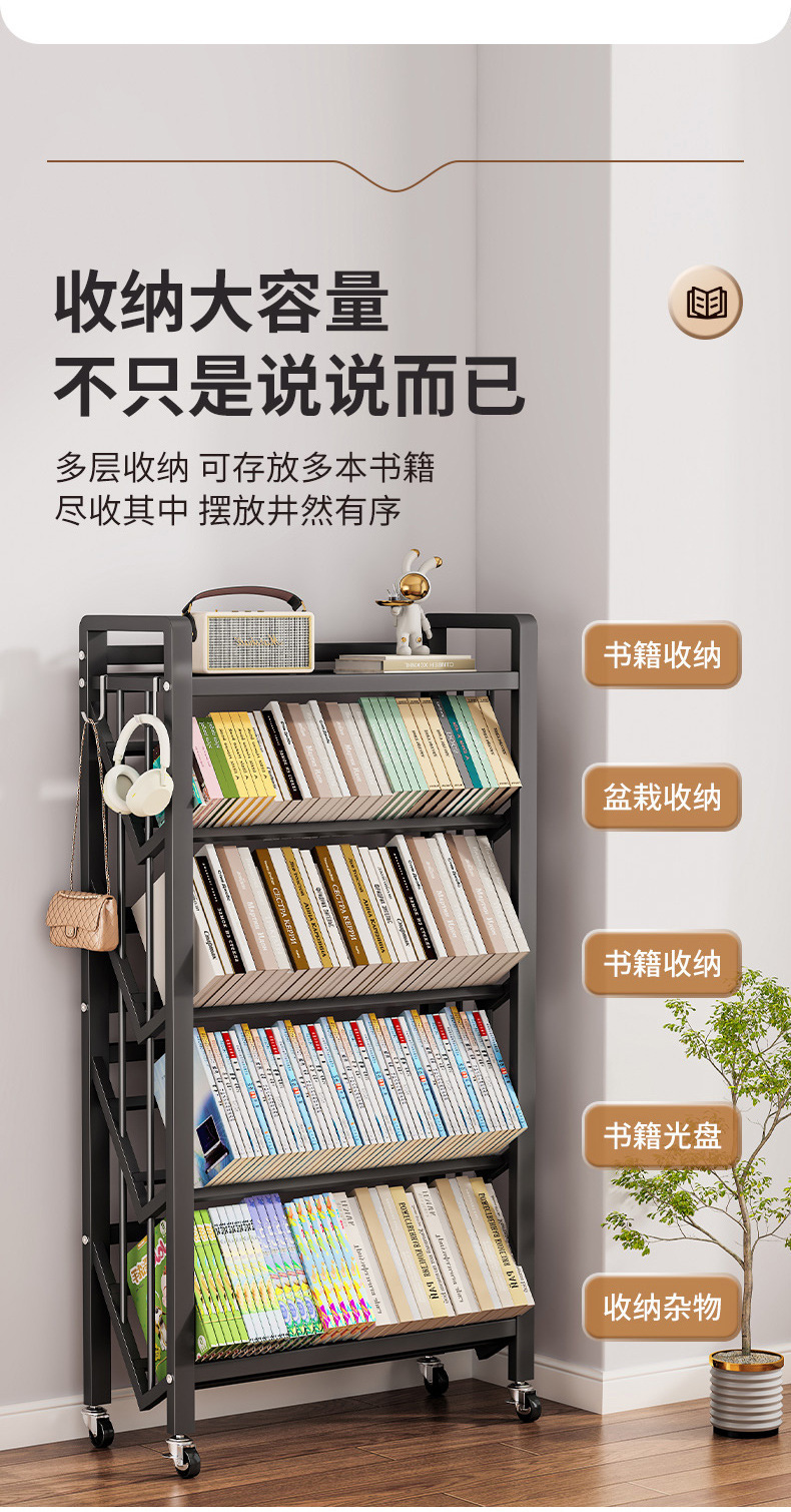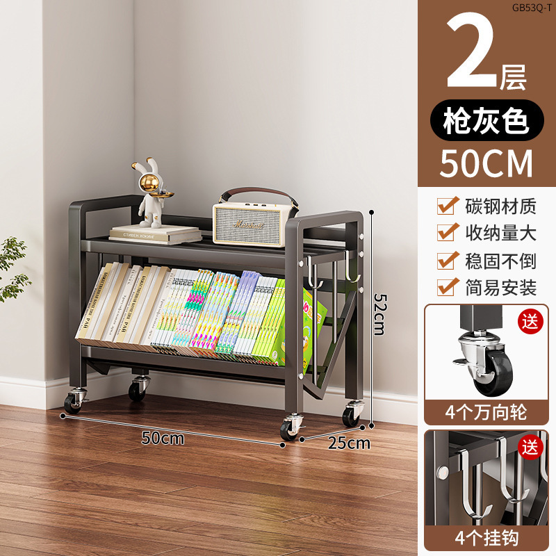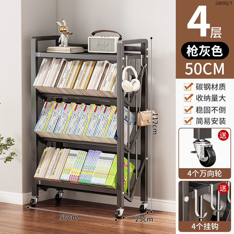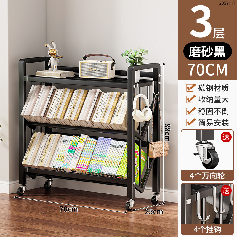범용 바퀴가 달린 철제 책장, 벽에 붙은 바닥에서 천장까지의 선반, 간단한 이동식 어린이 도서 다층 수납 선반