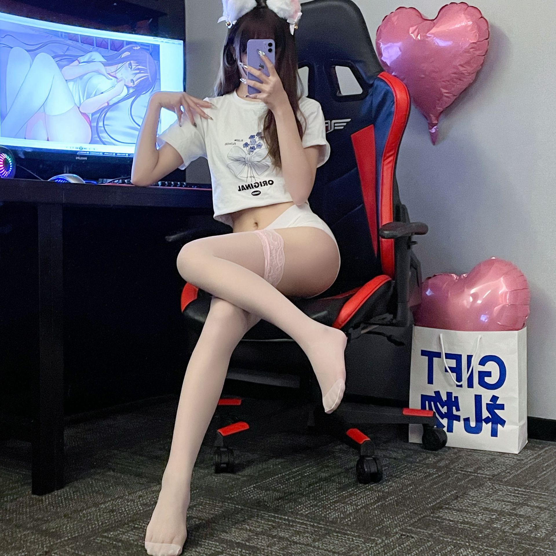 • 흰색 망사 스타킹