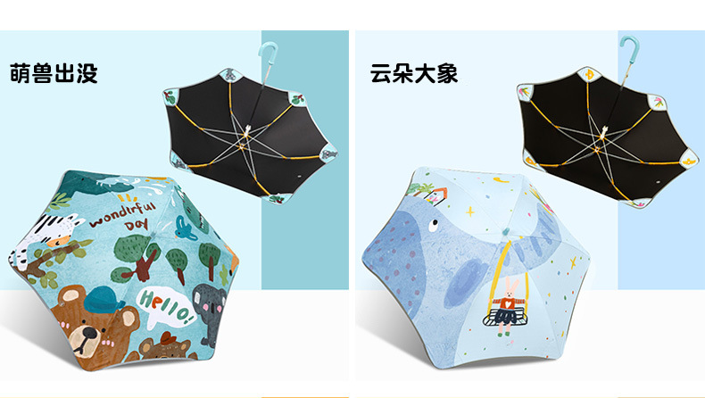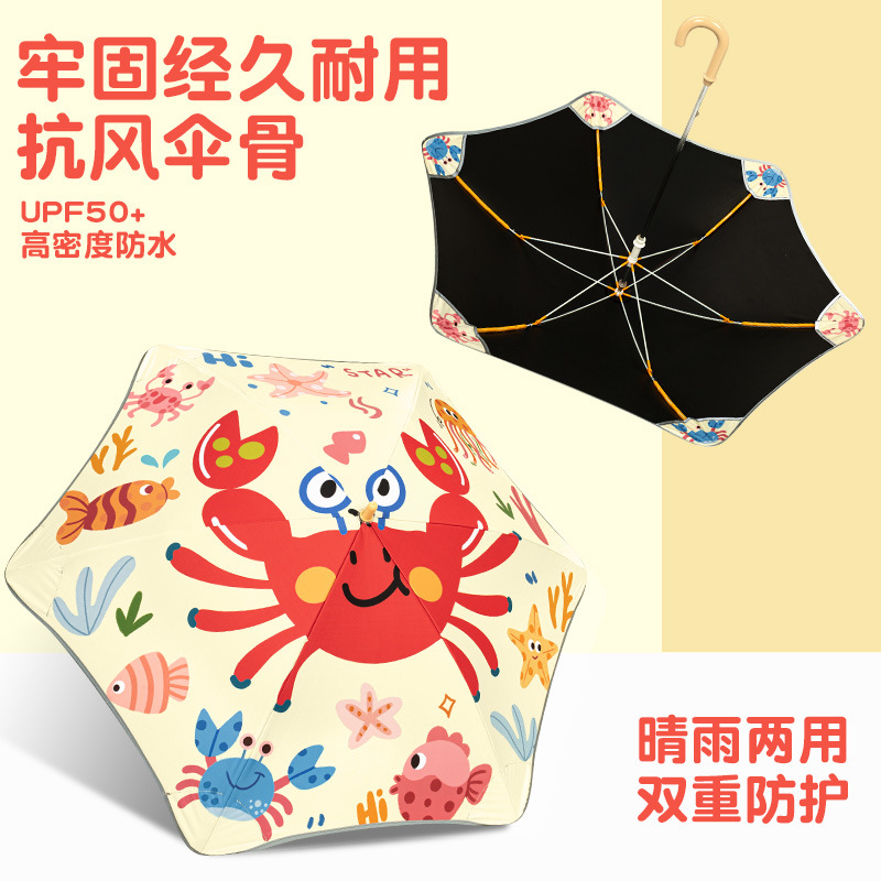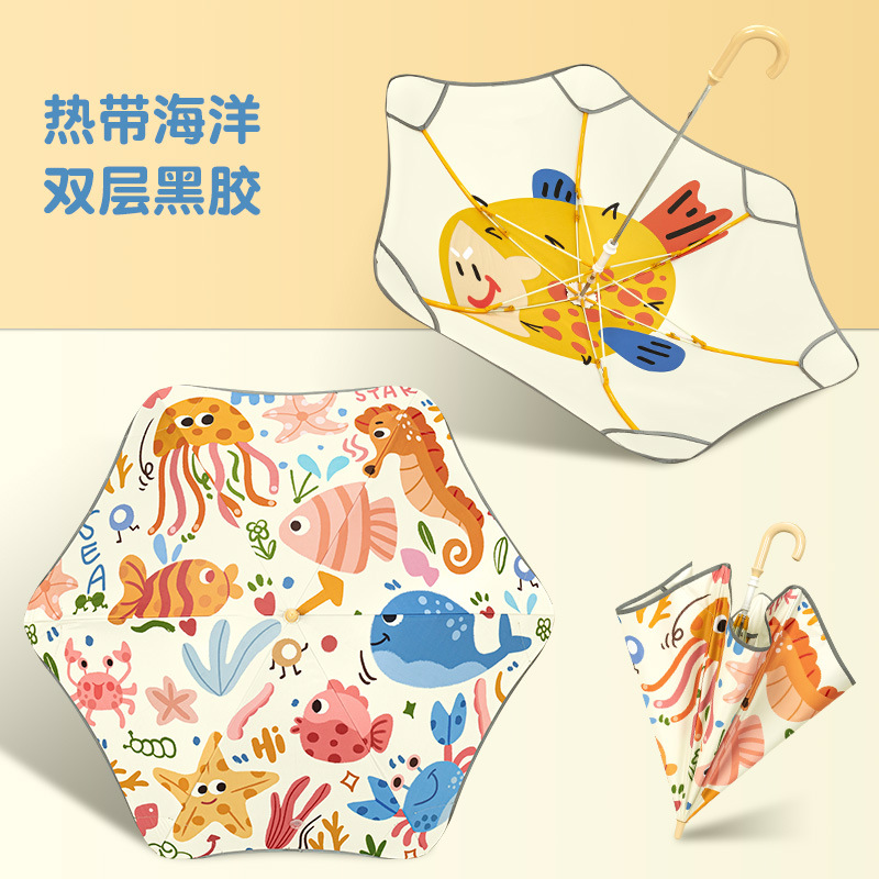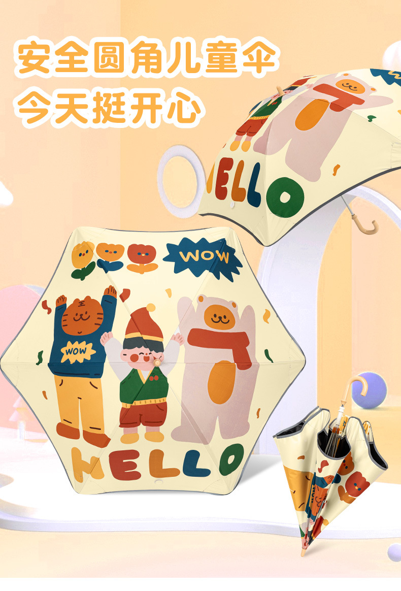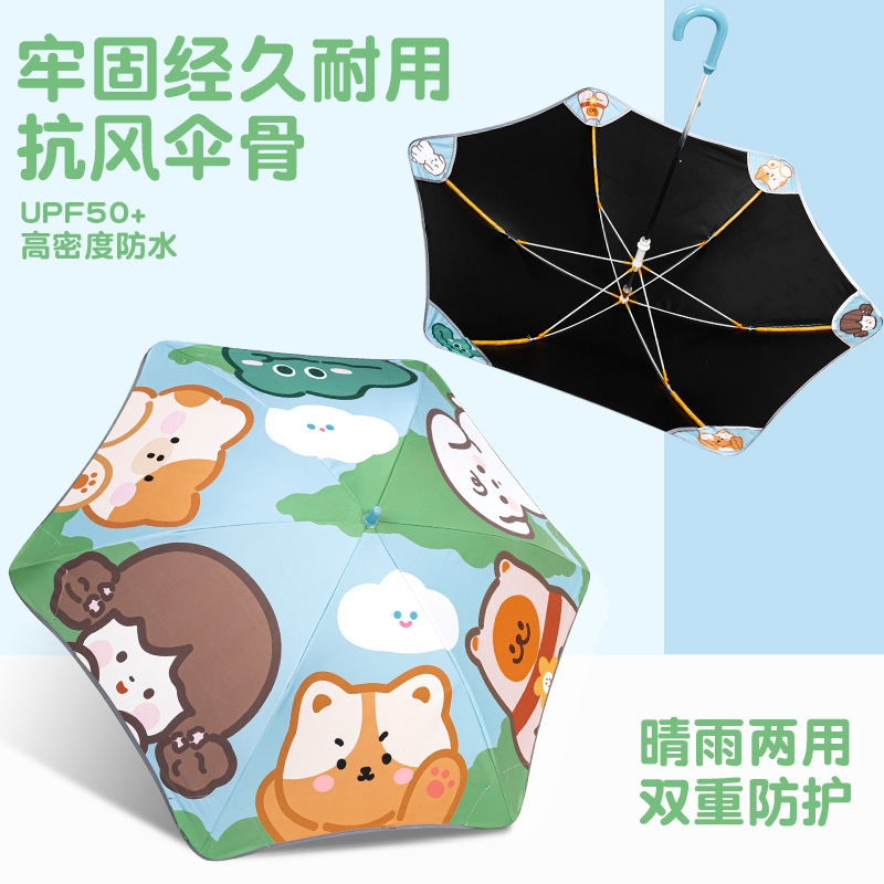 반올림 어린이 우산 여자 소년 초등학교 아기 유치원 긴 손잡이 우산 태양 우산