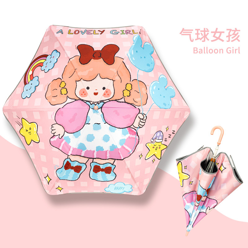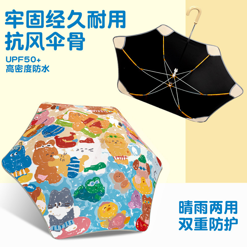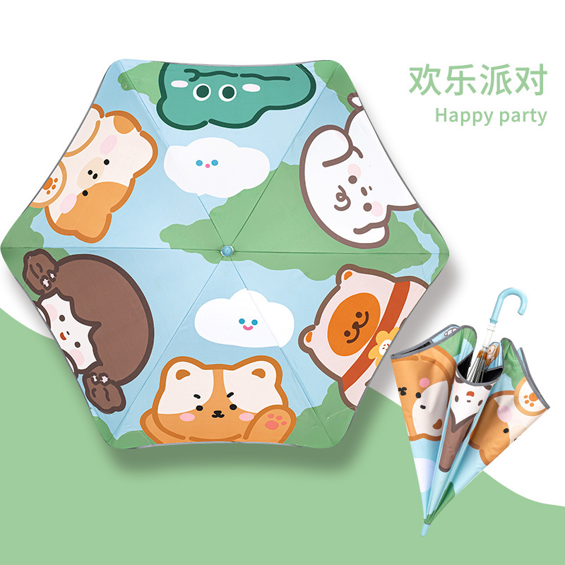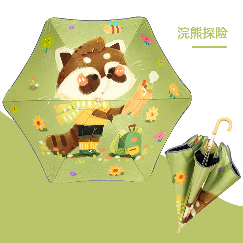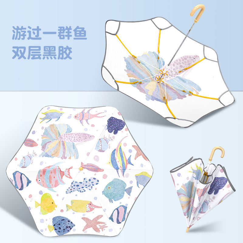 반올림 어린이 우산 여자 소년 초등학교 아기 유치원 긴 손잡이 우산 태양 우산