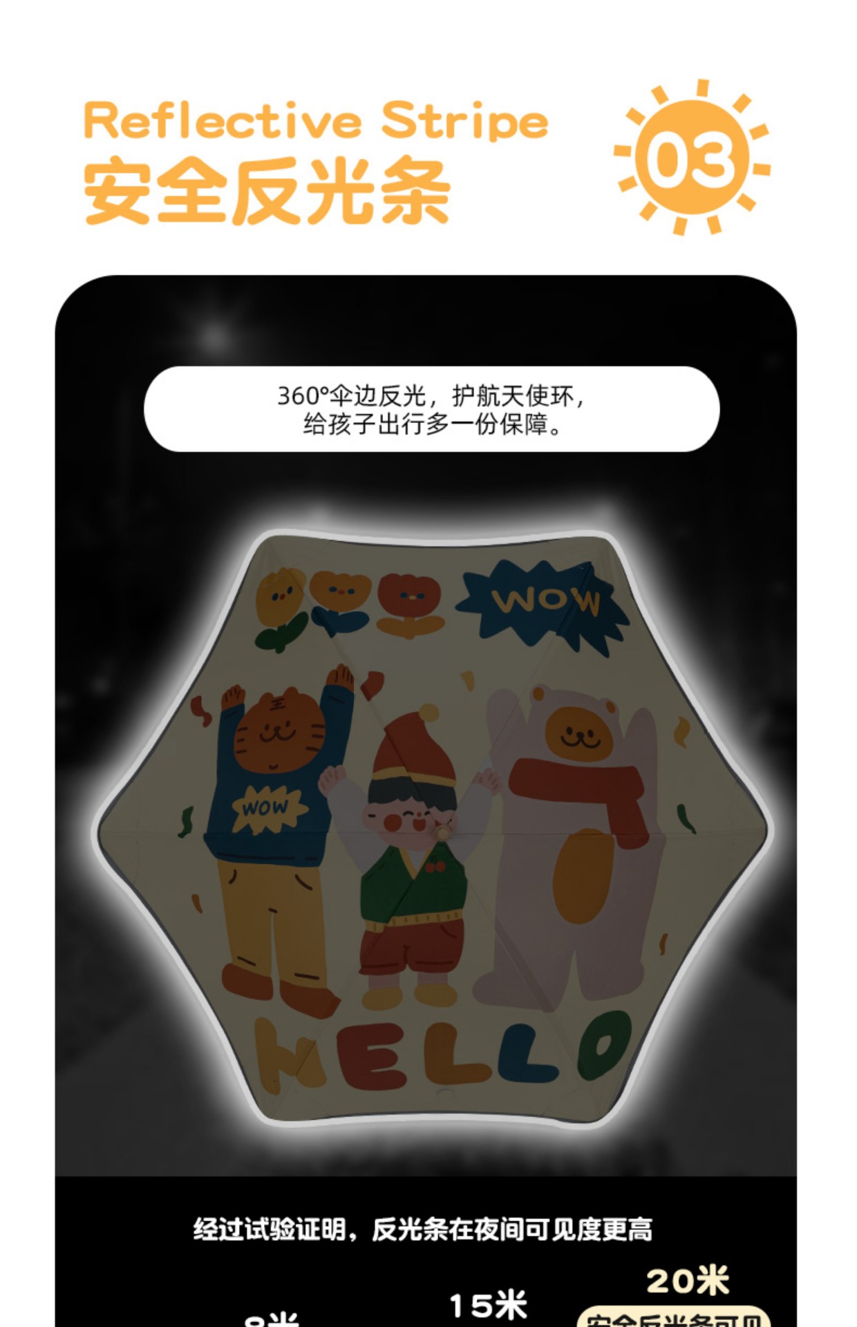 • 오늘은 정말 행복해요 - 어린이용 긴 손잡이 모델, 둥근 모서리 + 핀치 방지 + 반사 스트립