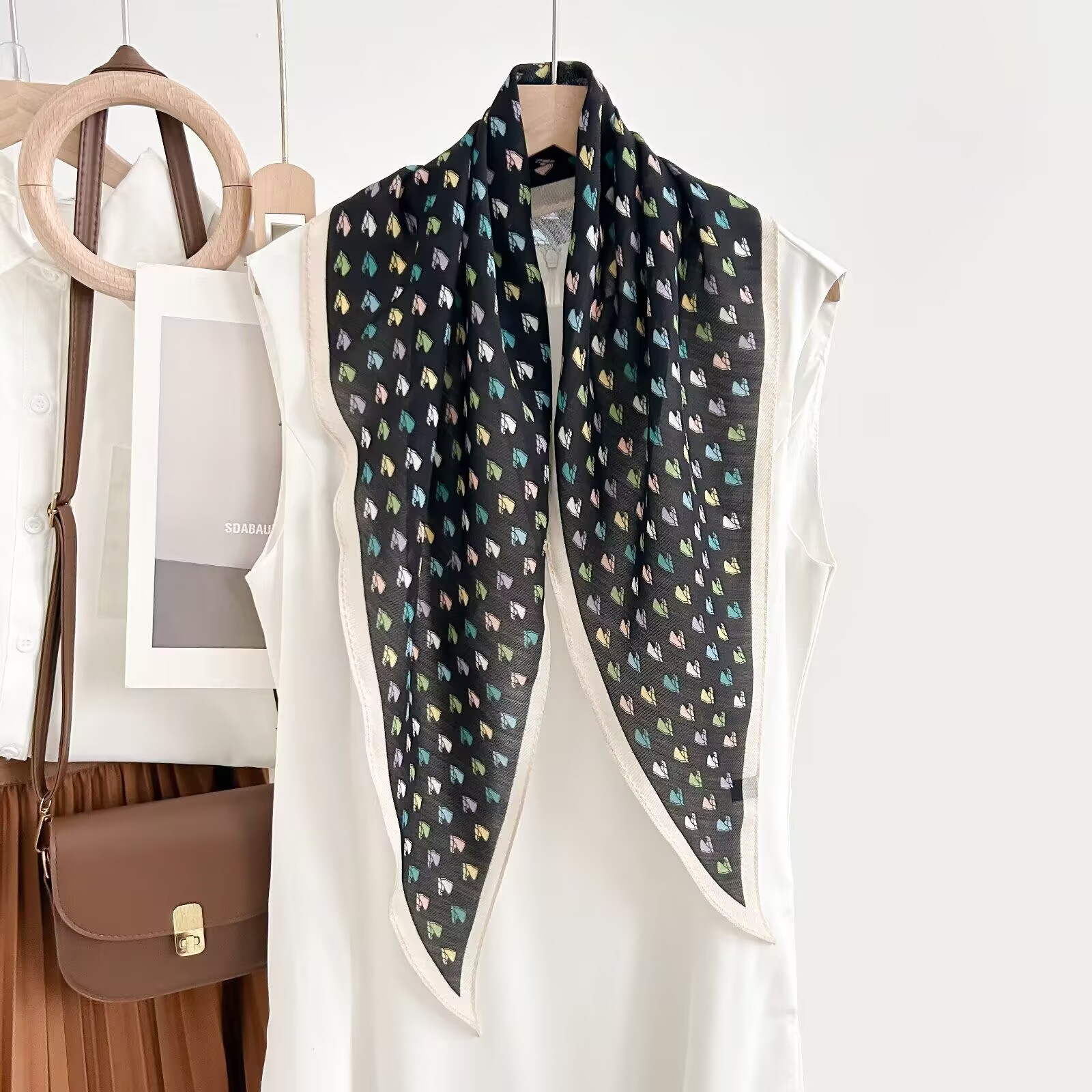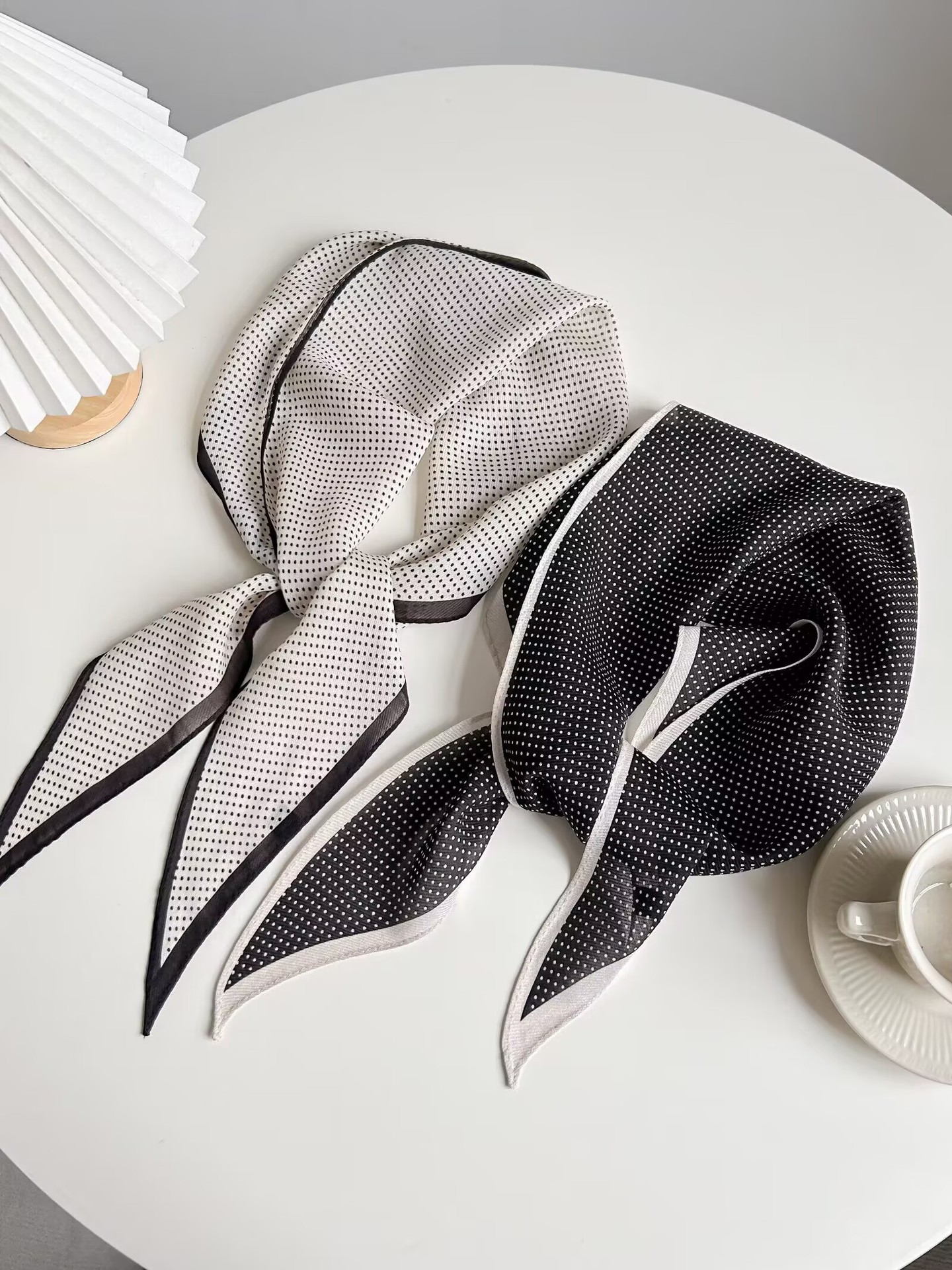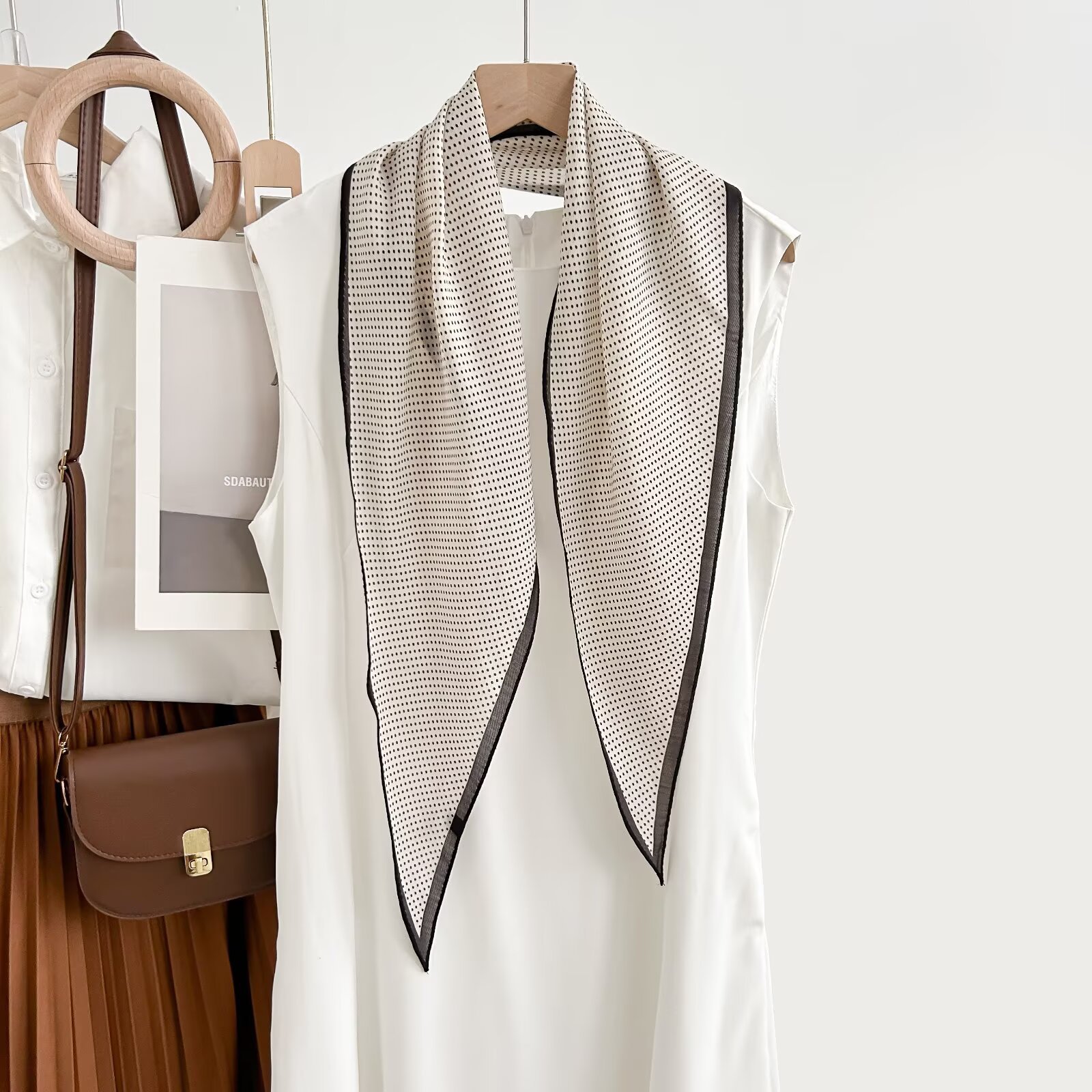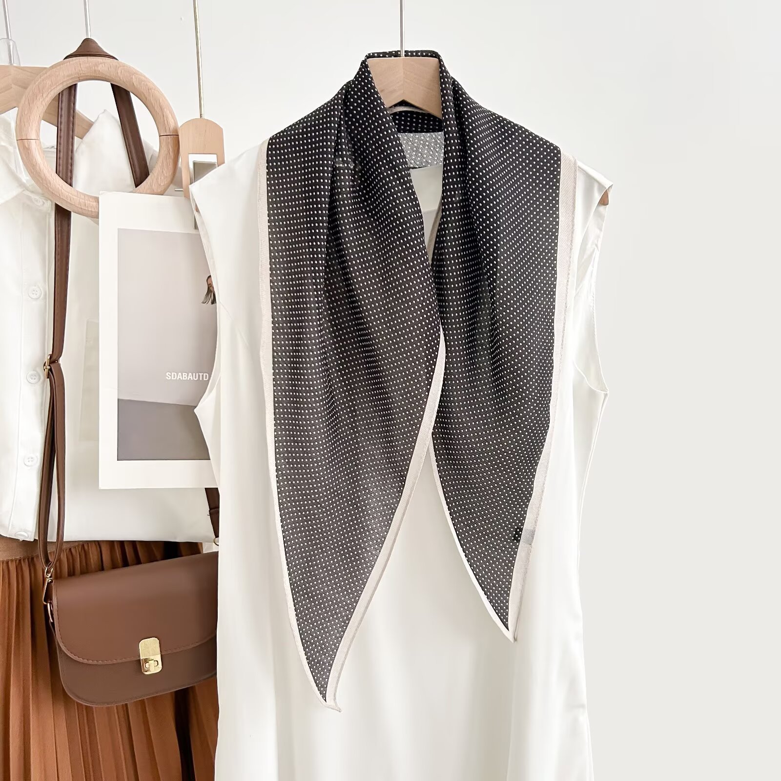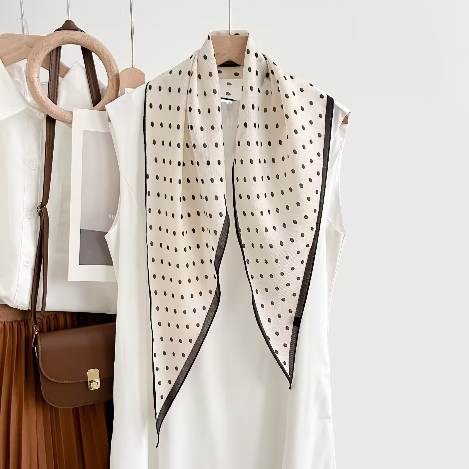 레트로 폴카 도트 기질 뽕나무 실크 울 마름모 스카프 여성 여름 얇은 아우터 셔츠 스커트 선물스토어 가기