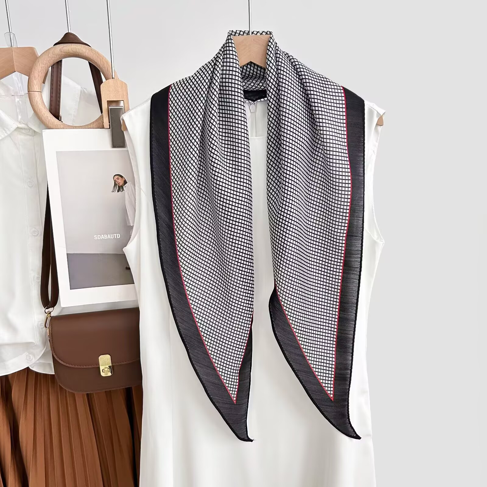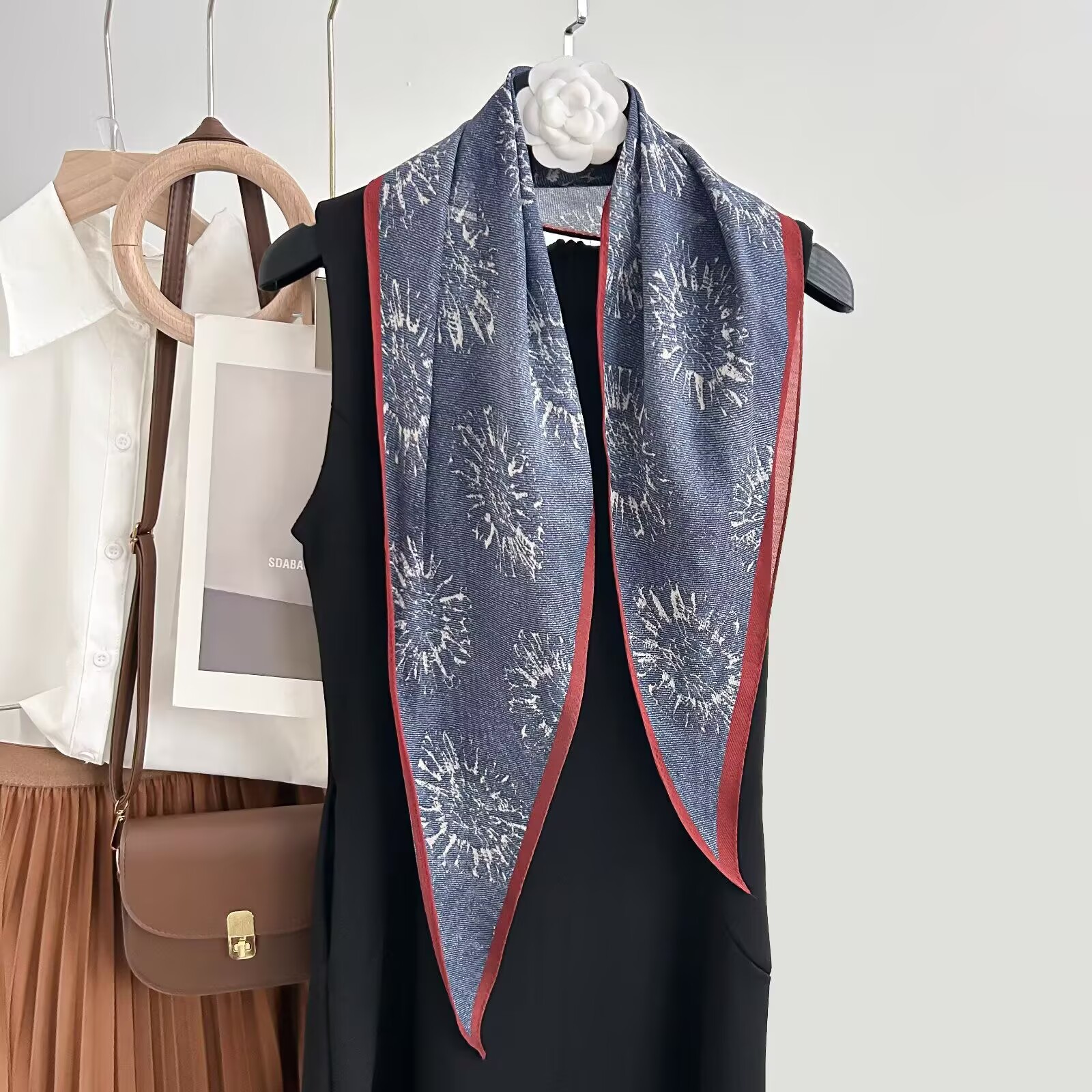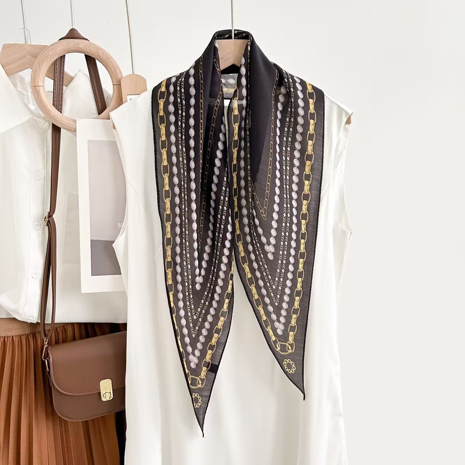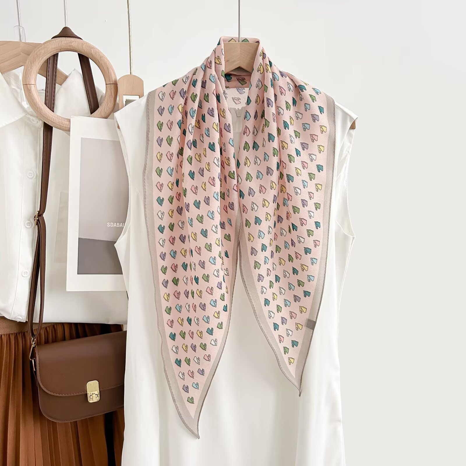 레트로 폴카 도트 기질 뽕나무 실크 울 마름모 스카프 여성 여름 얇은 아우터 셔츠 스커트 선물스토어 가기