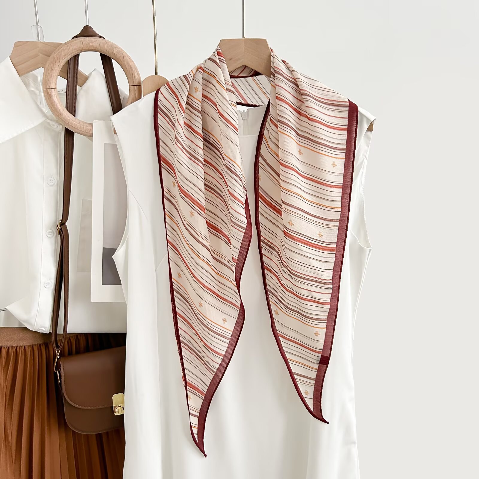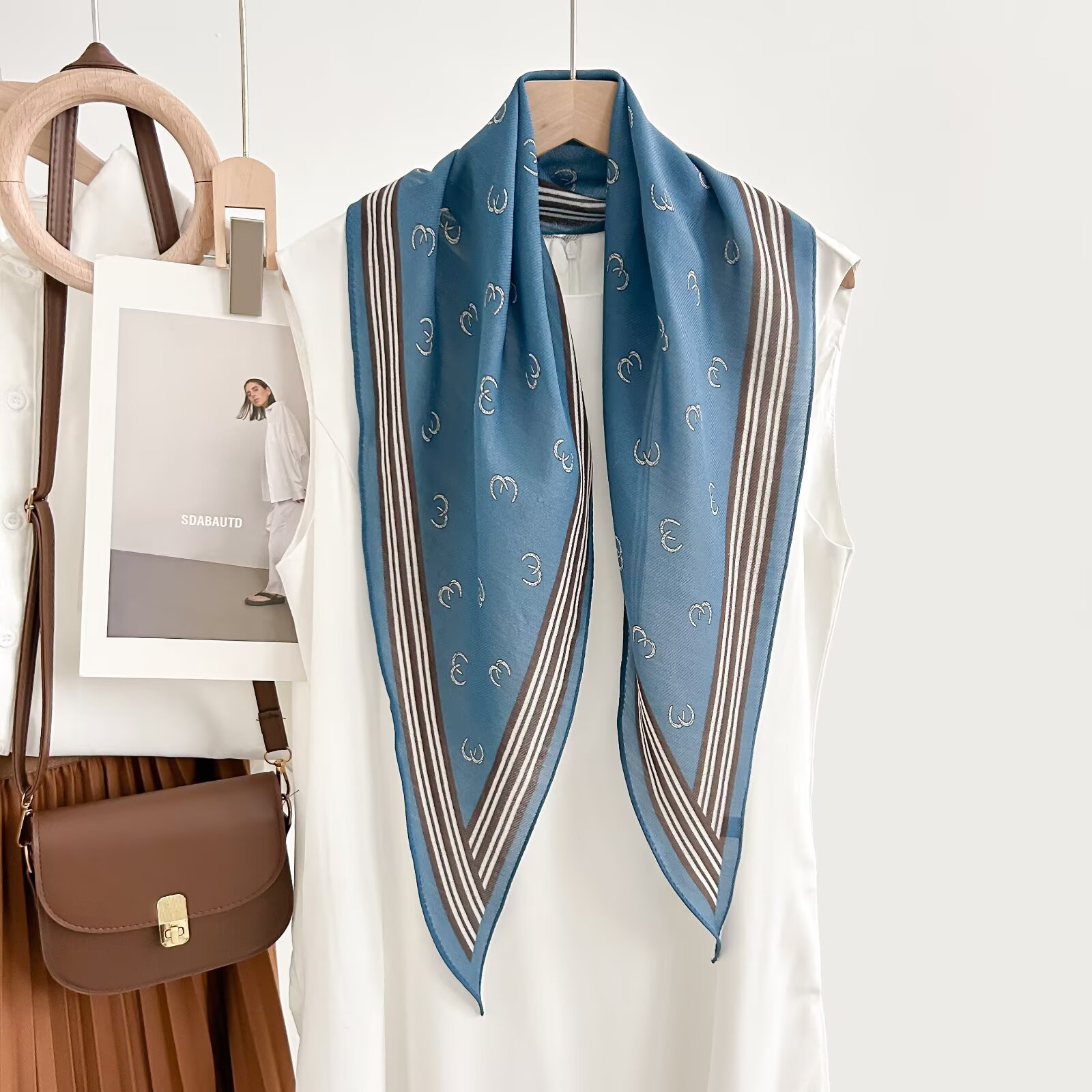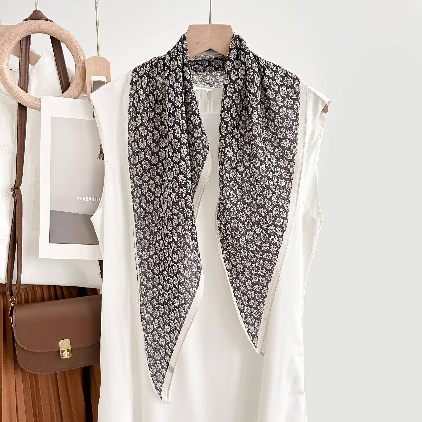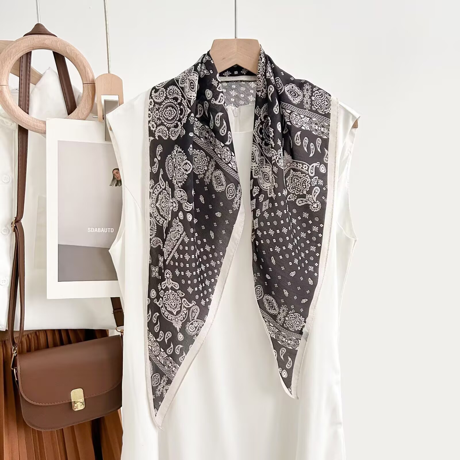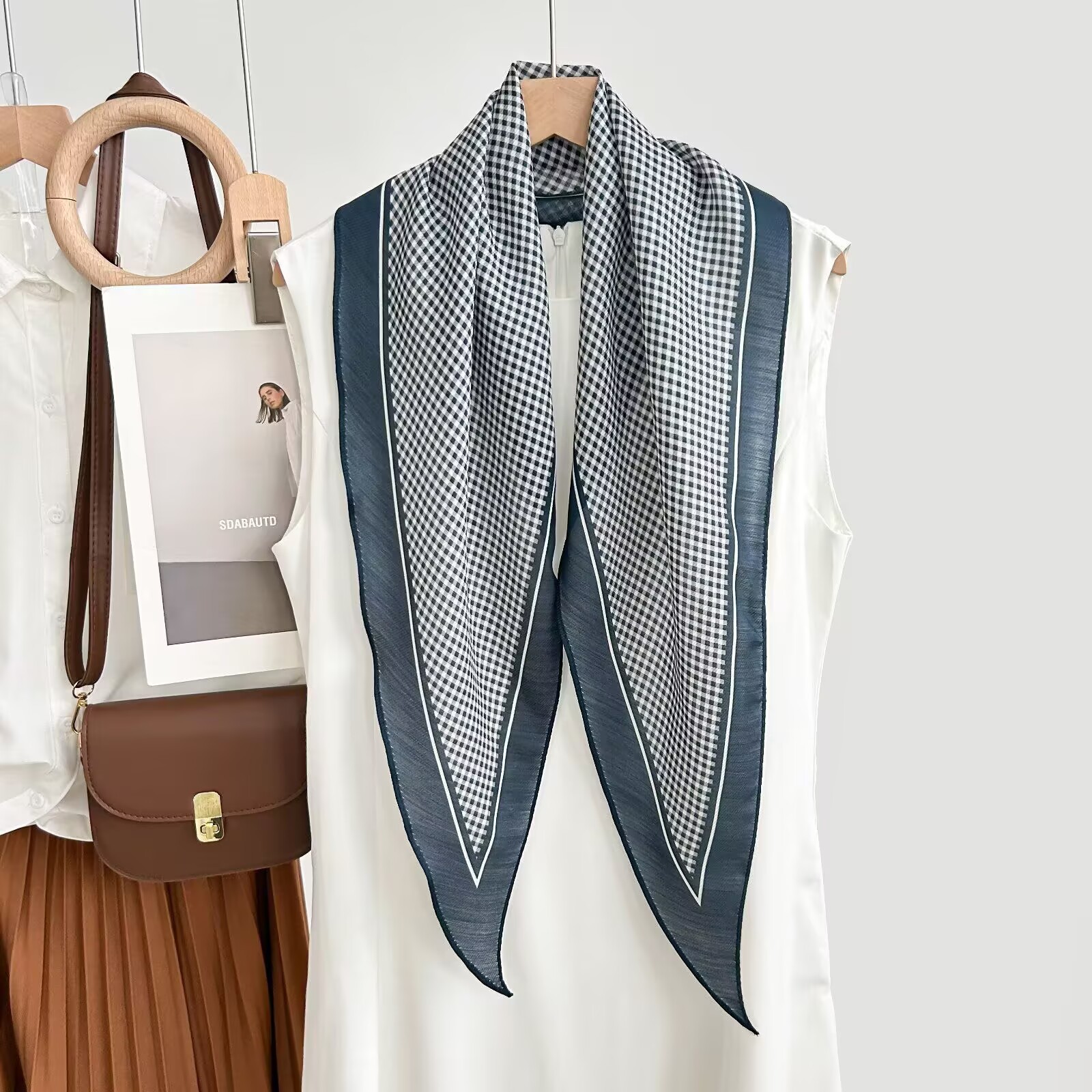 레트로 폴카 도트 기질 뽕나무 실크 울 마름모 스카프 여성 여름 얇은 아우터 셔츠 스커트 선물스토어 가기