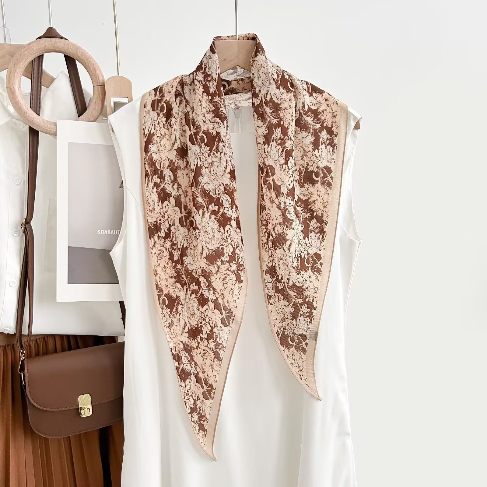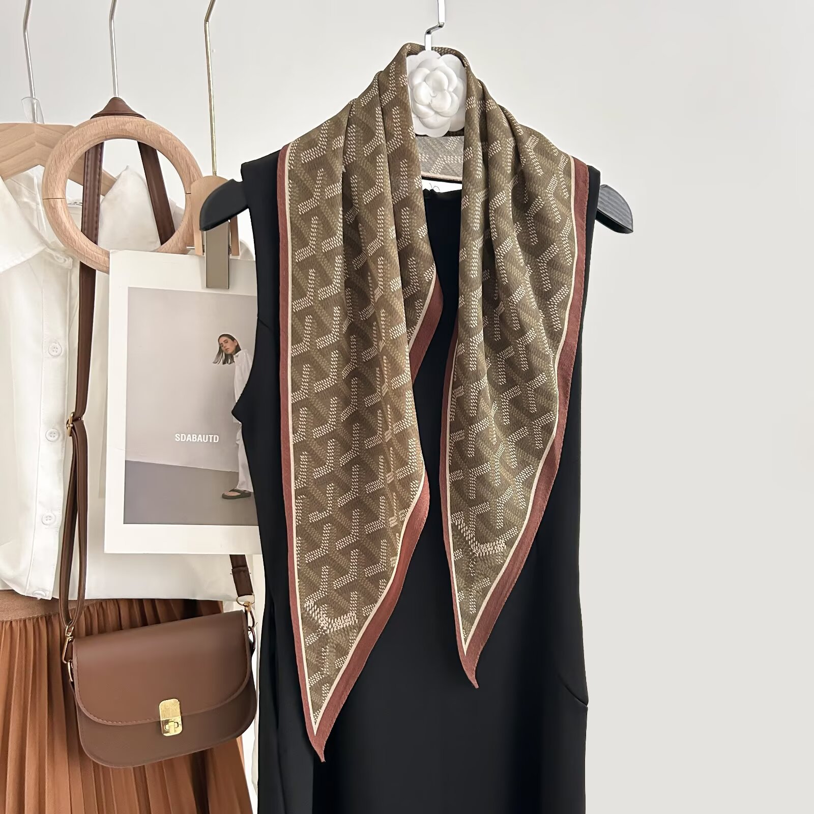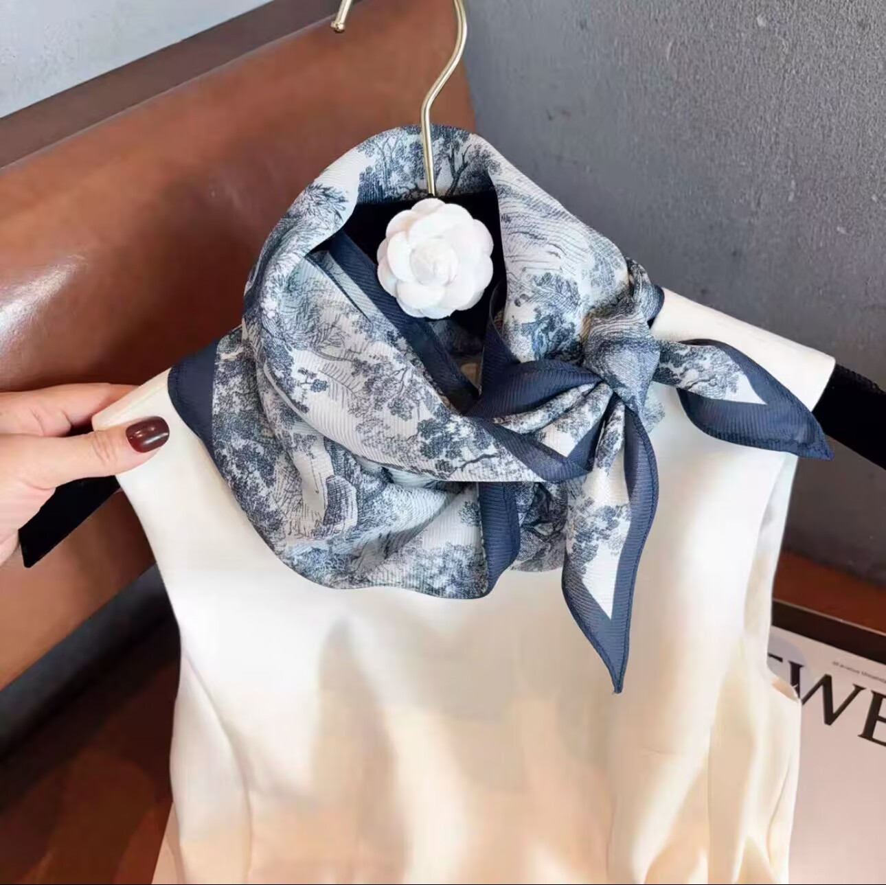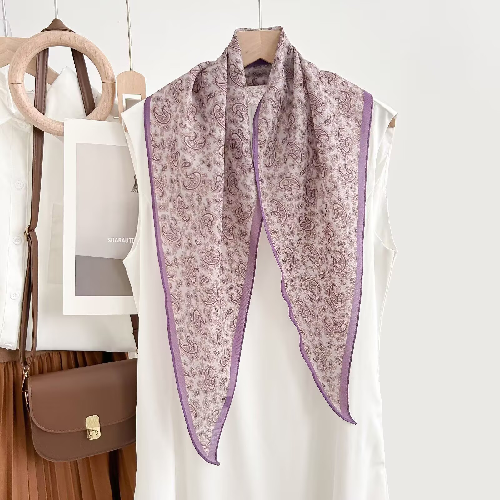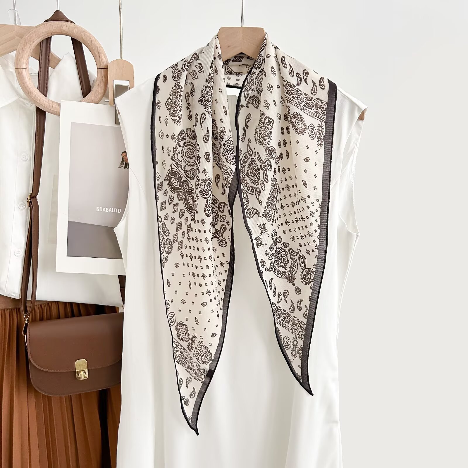 레트로 폴카 도트 기질 뽕나무 실크 울 마름모 스카프 여성 여름 얇은 아우터 셔츠 스커트 선물스토어 가기