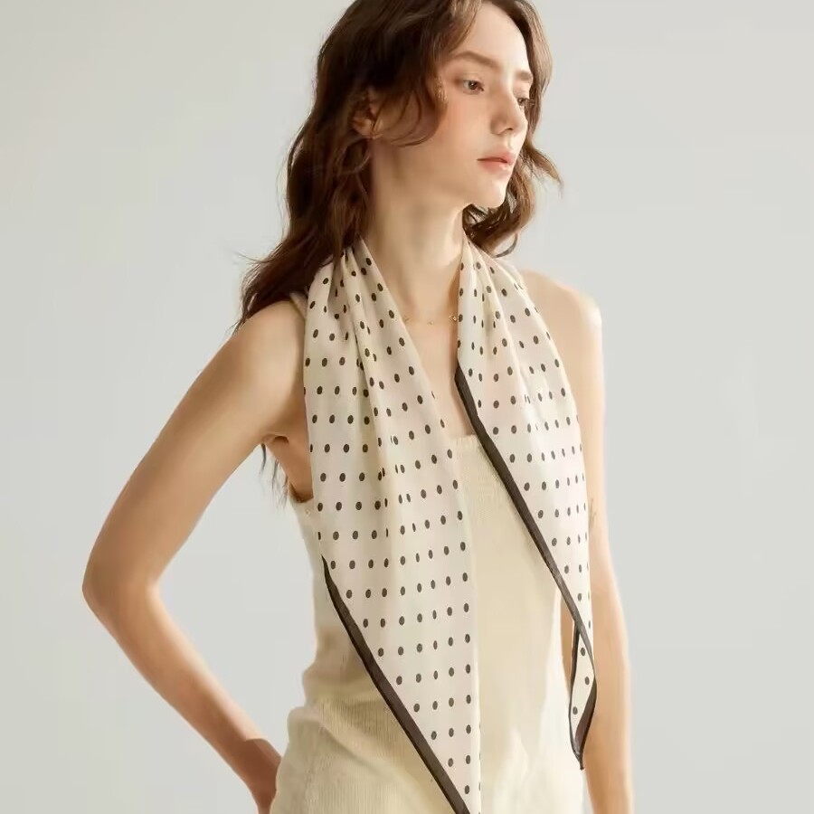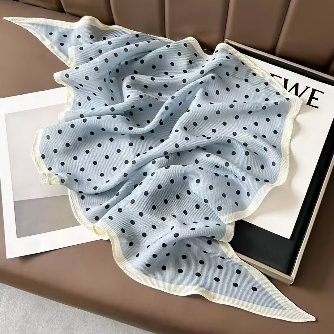 레트로 폴카 도트 기질 뽕나무 실크 울 마름모 스카프 여성 여름 얇은 아우터 셔츠 스커트 선물
