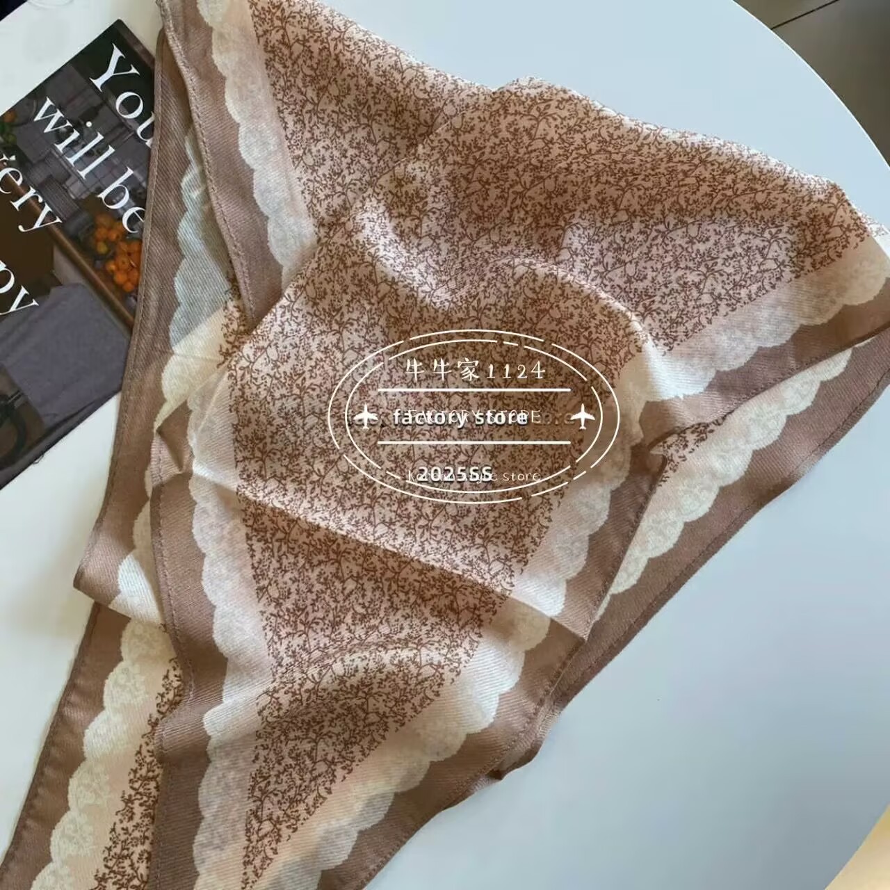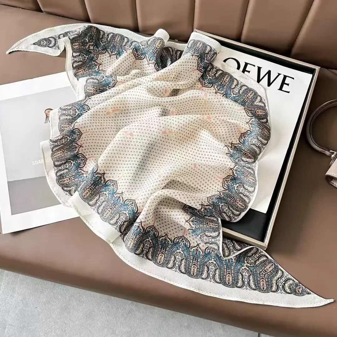 • 큰 꽃 캐슈 실크 울 다이아몬드 스카프