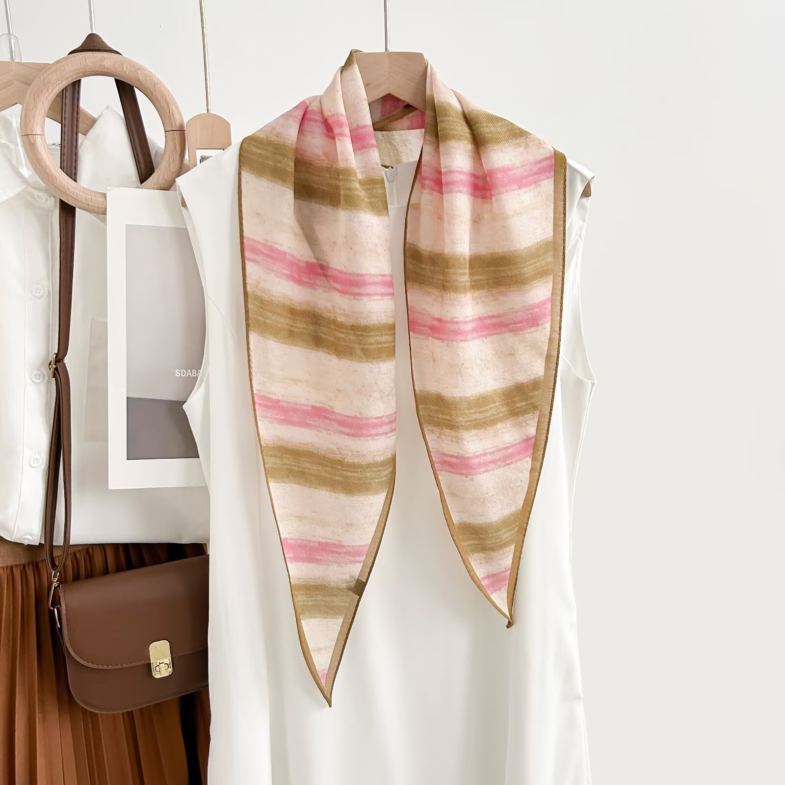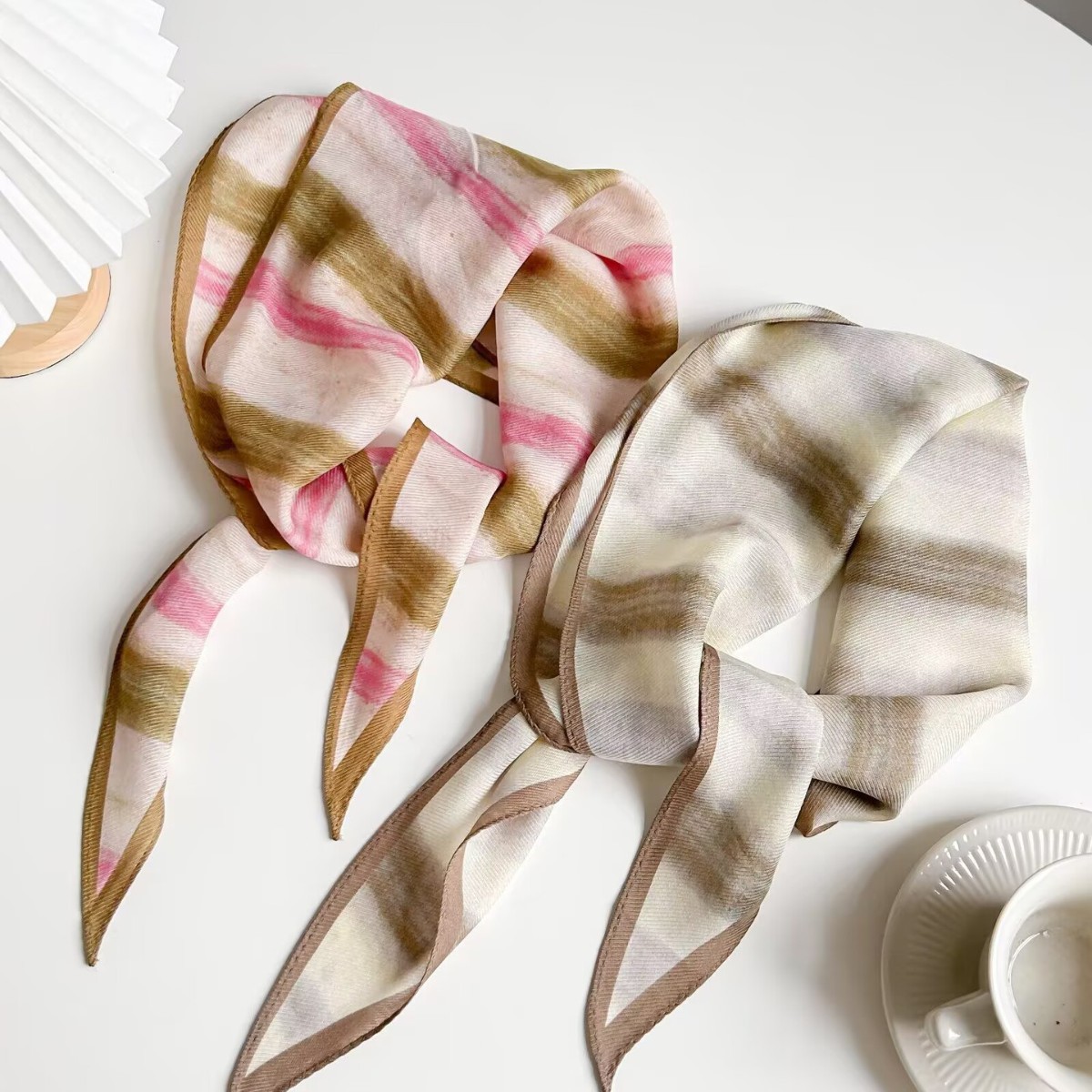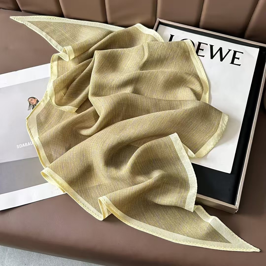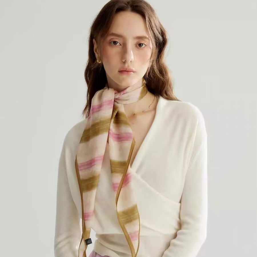 • 그라데이션 스트라이프 카키색 실크 울 마름모 스카프