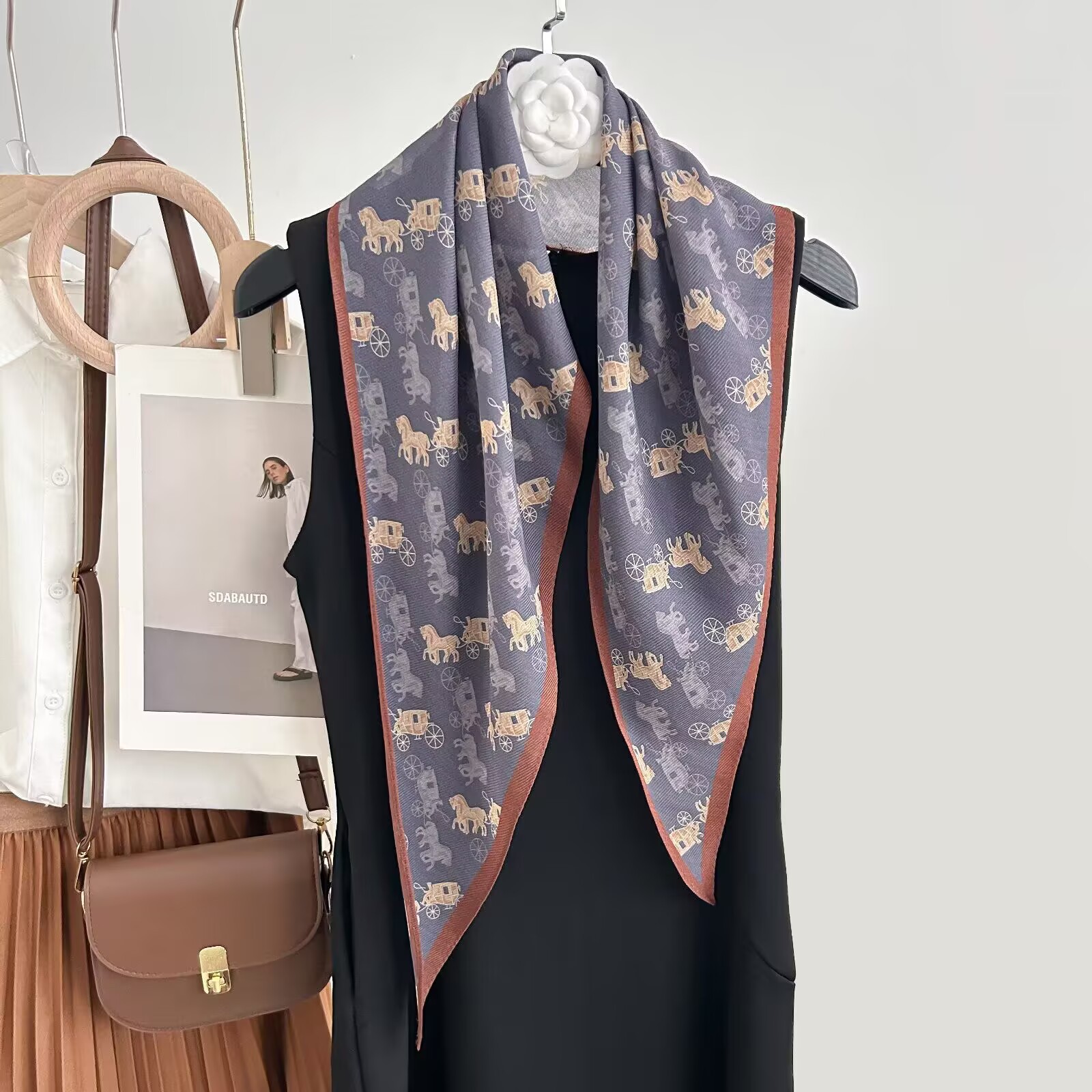 • Mi Xing Carriage v 실크 울 마름모 스카프