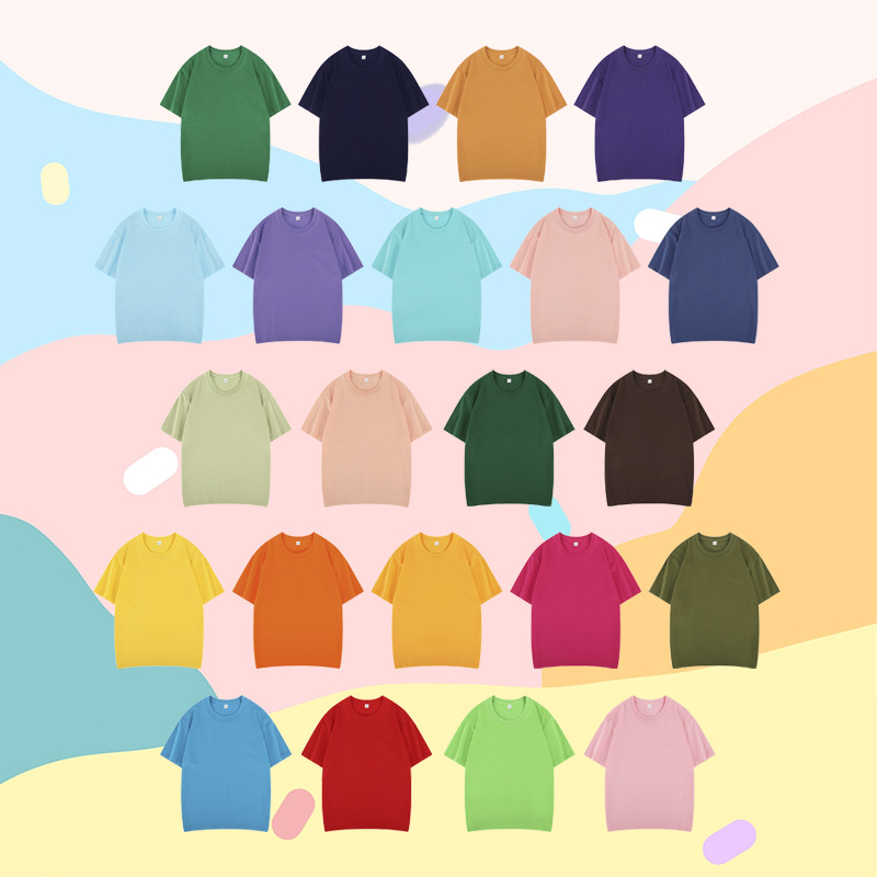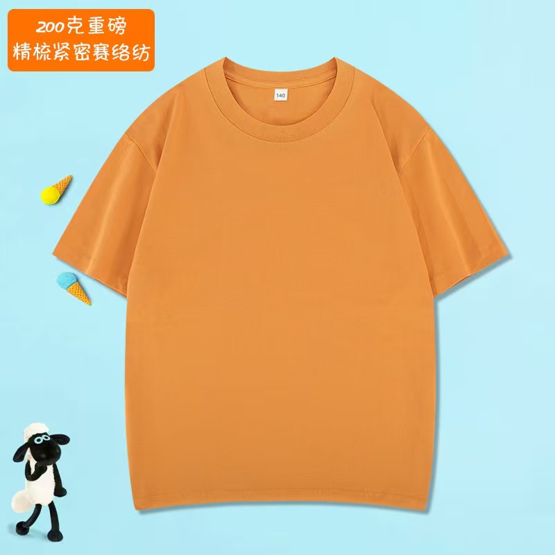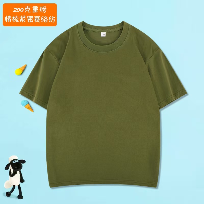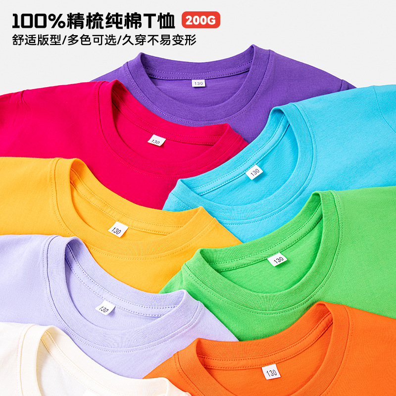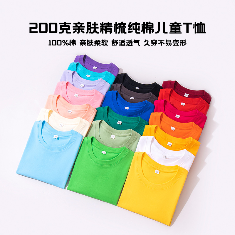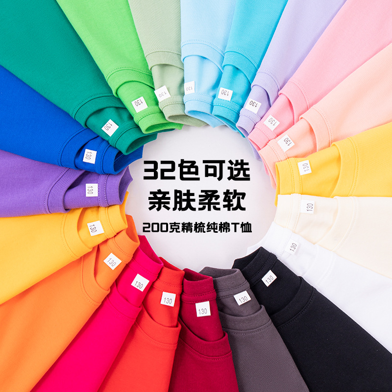 순수 코튼 200g 어린이 반팔 티셔츠 부모-자식 루즈 캐주얼 캠퍼스 라운드 넥 소년 솔리드 컬러 티셔츠 유치원 유니폼 탑스토어 가기