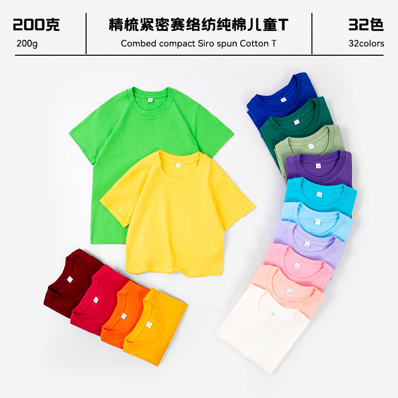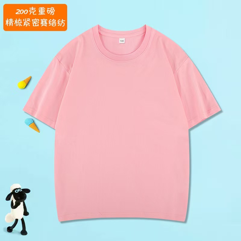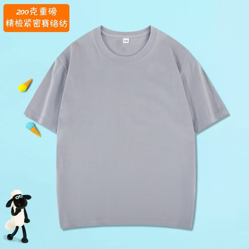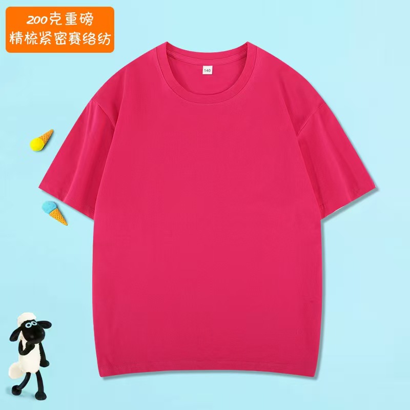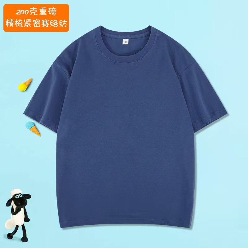 순수 코튼 200g 어린이 반팔 티셔츠 부모-자식 루즈 캐주얼 캠퍼스 라운드 넥 소년 솔리드 컬러 티셔츠 유치원 유니폼 탑