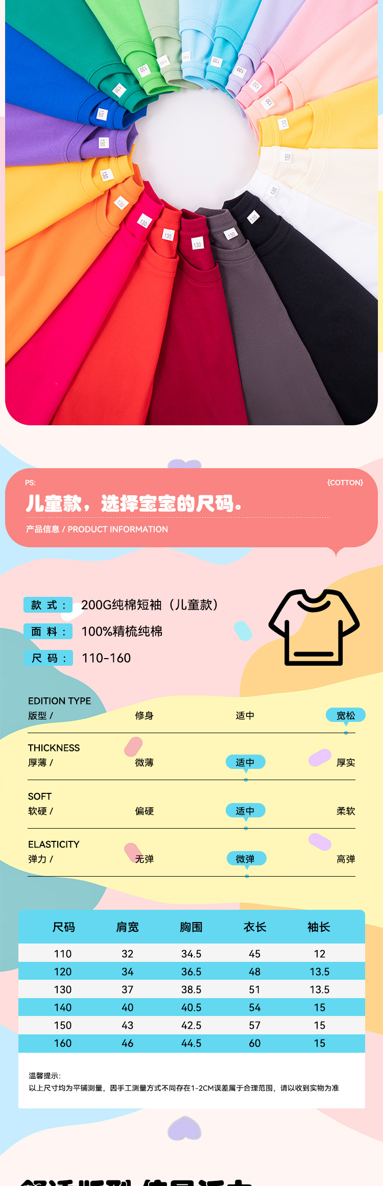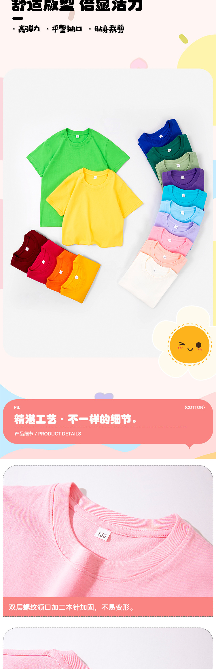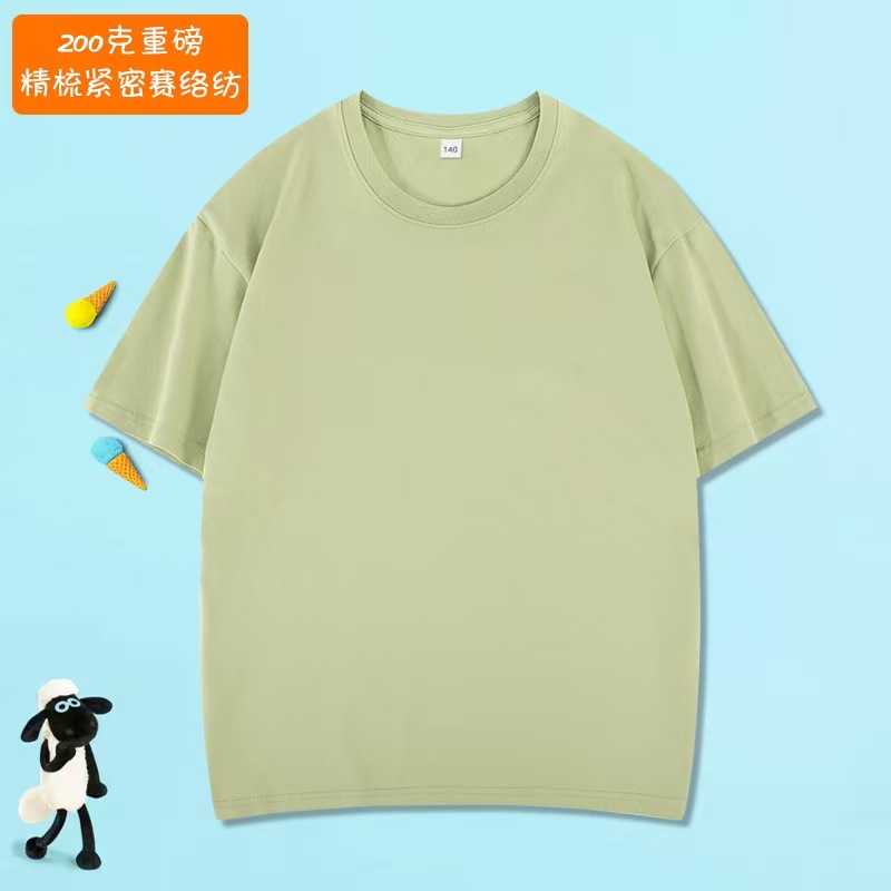 순수 코튼 200g 어린이 반팔 티셔츠 부모-자식 루즈 캐주얼 캠퍼스 라운드 넥 소년 솔리드 컬러 티셔츠 유치원 유니폼 탑