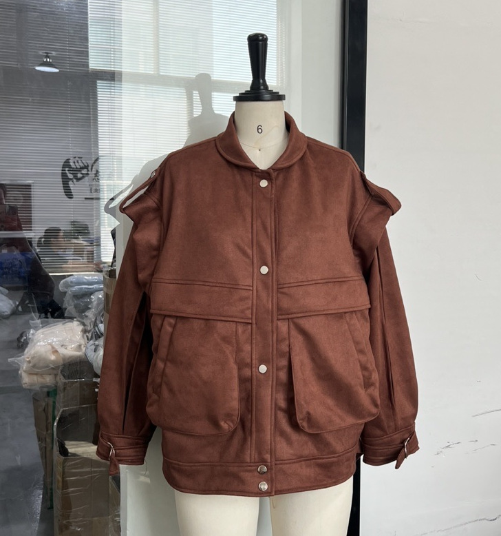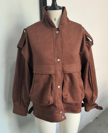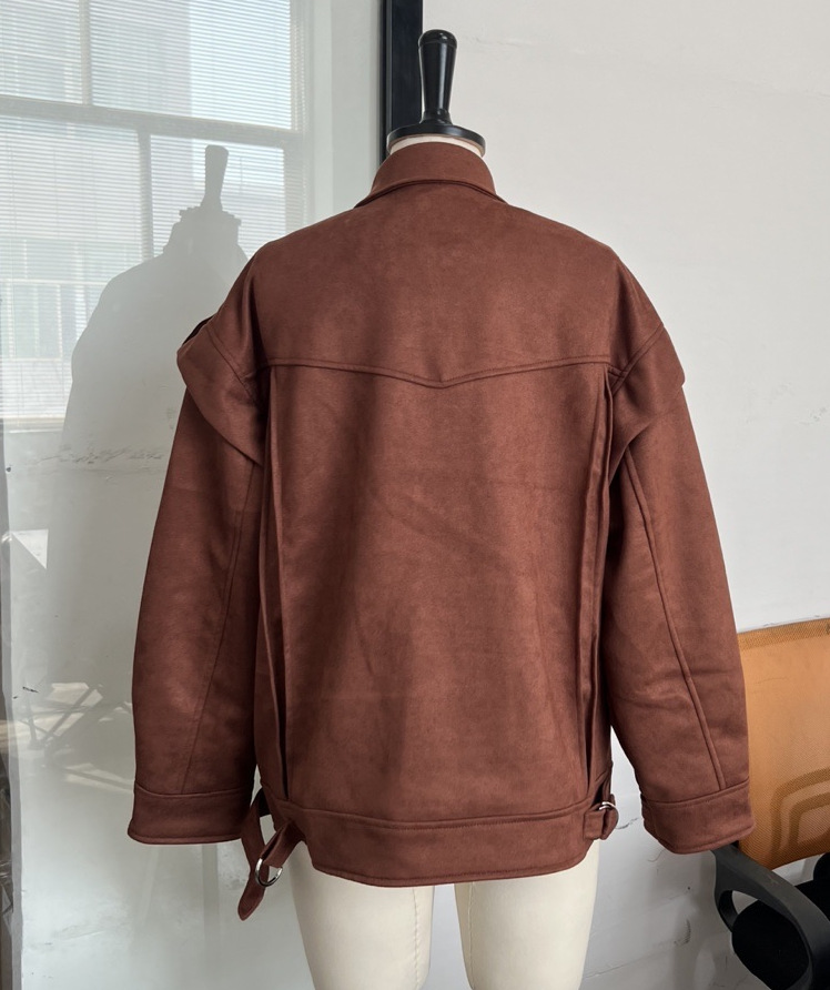 2025년 가을 여성 의류 크로스보더 아마존 인기 단색 개성 레트로 숏 스웨이드 재킷스토어 가기