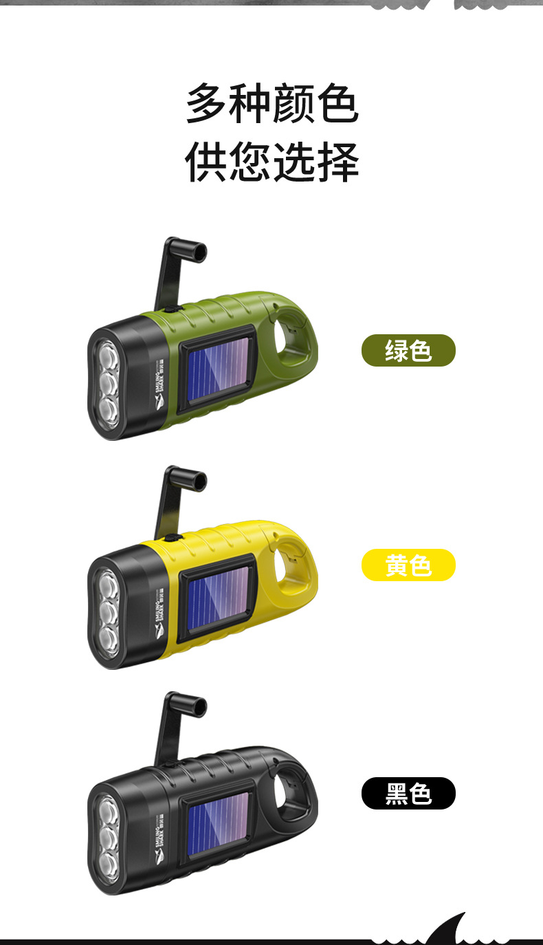 매달린 버클 디자인 손전등과 다기능 야외 비상 조명 태양 손으로 충전식 ABS 작업 조명스토어 가기
