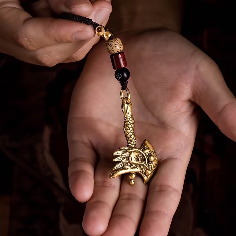 문화적이고 창의적인 행운의 틈새 시장 수도꼭지 도끼 열쇠 고리 펜던트 황동 공예품 장식품 작은 품목은 매점에서 많이 판매됩니다.