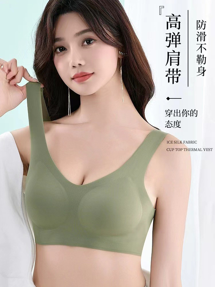 여름용 여성용 크로스보더 대외 무역 인기 누드 무봉제 대형 브라, 얇고 와이어 없음, 푸쉬업, 보조 가슴 수축, 아이스 실크, 아름다운 등스토어 가기