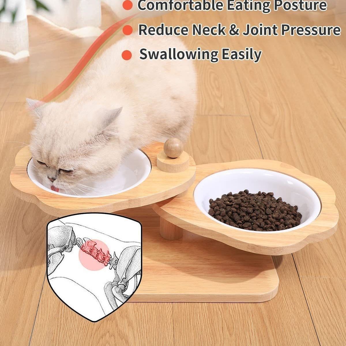 고양이와 개를위한 나무 먹이 랙 높은 그릇 랙 가정용 애완 동물 고양이 먹이 그릇 회전 다기능 나무 피더