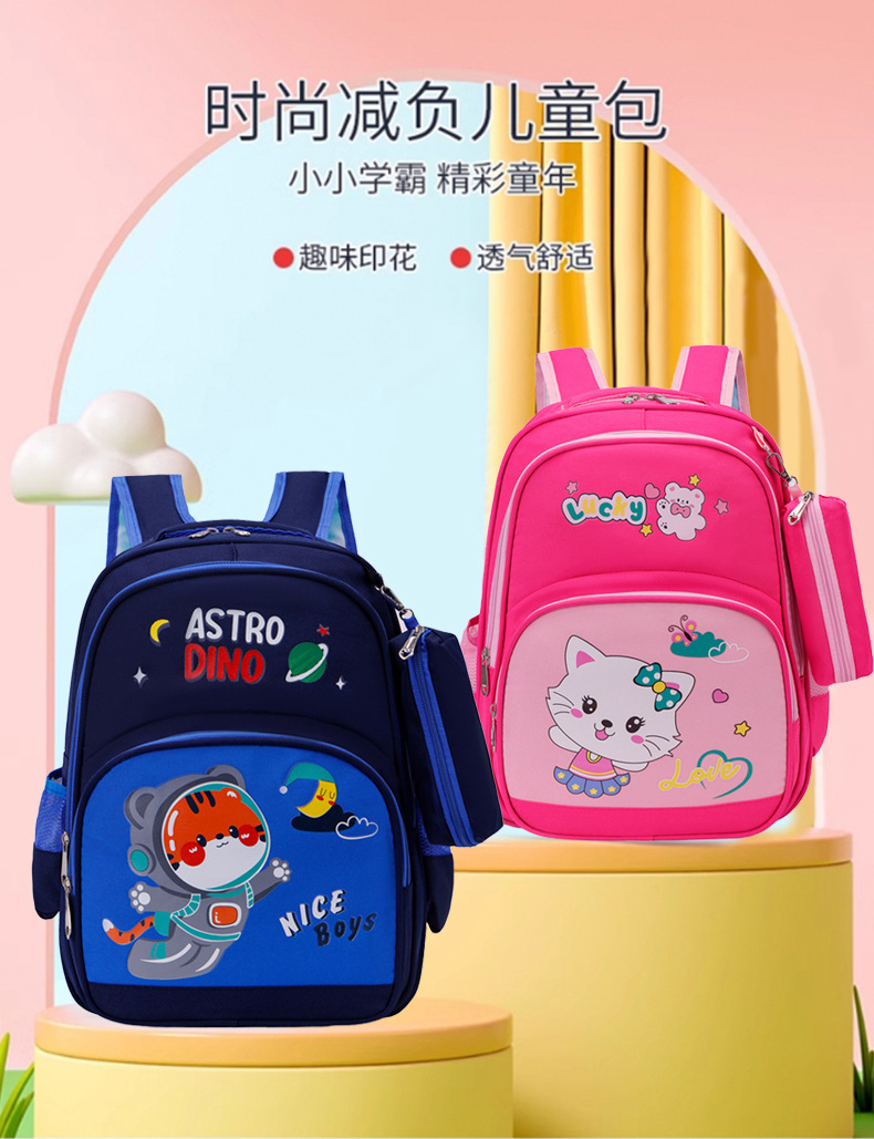 대외 무역 새로운 유치원 학교 가방 초등학생 1-3 학년 배낭 만화 귀여운 소년과 소녀 어린이 배낭스토어 가기