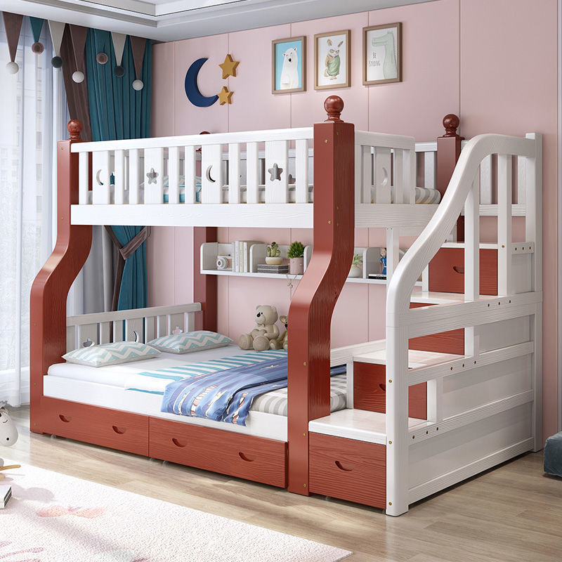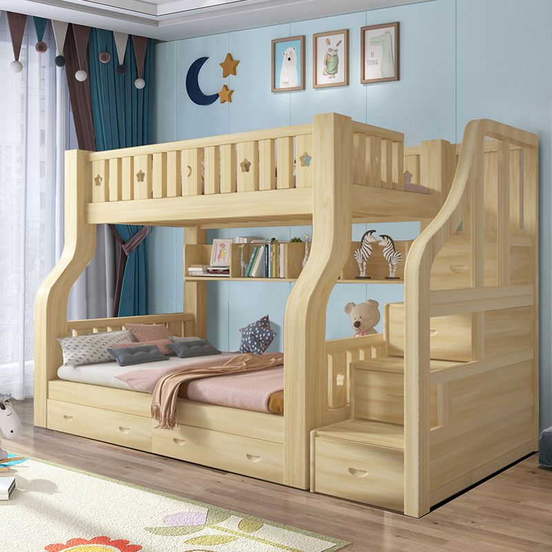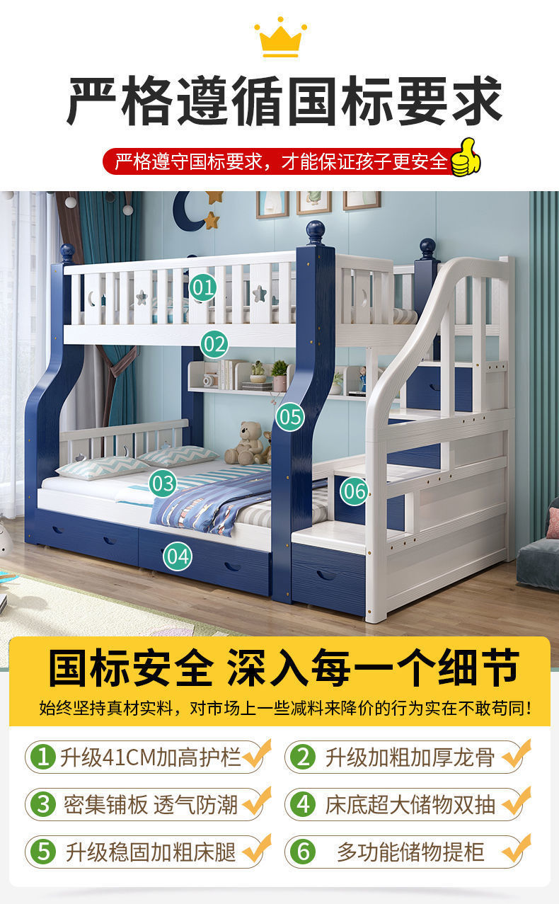 단단한 나무 어린이 침대 높고 낮은 어머니 침대 2 층 침대 더블 침대 상단 및 다운 침대 등반 침대 성인 침대 간단한 현대