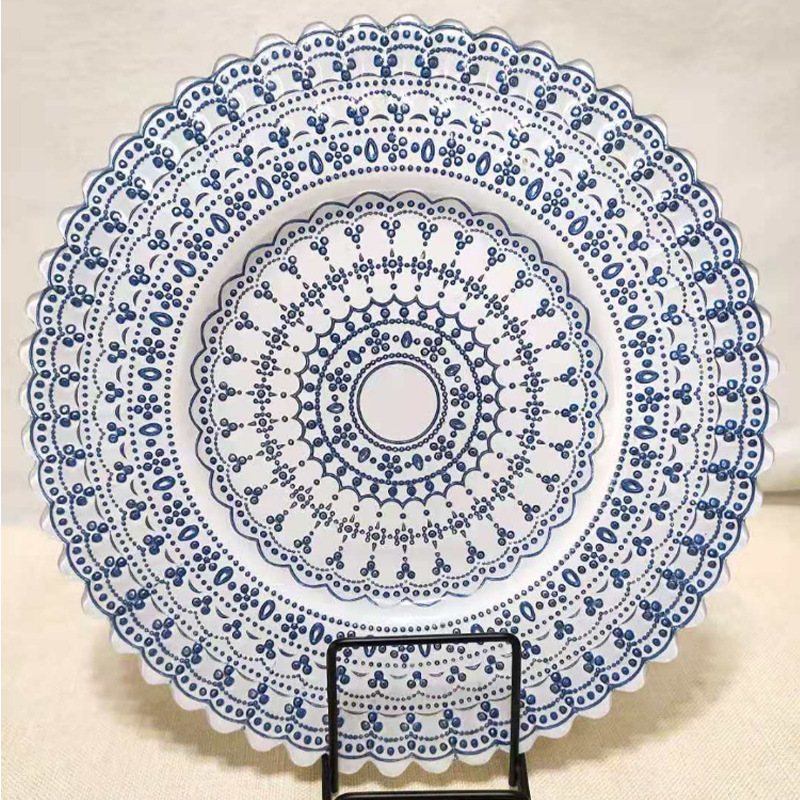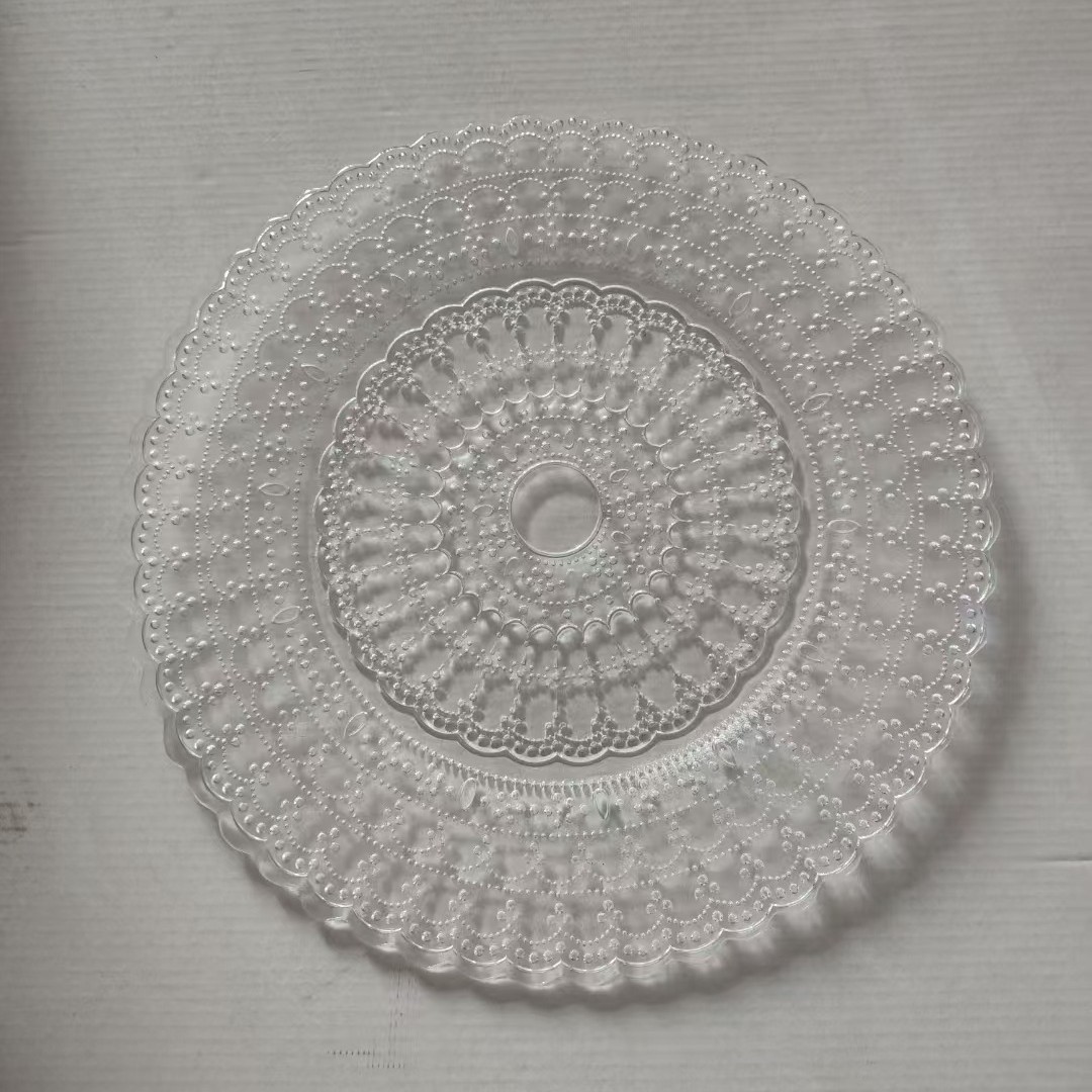현대 간단한 레이스 유리 플레이트 창조적 인 가정 새겨진 과일 살라 플레이트 디너 플레이트 거실 장식 유리 플레이트