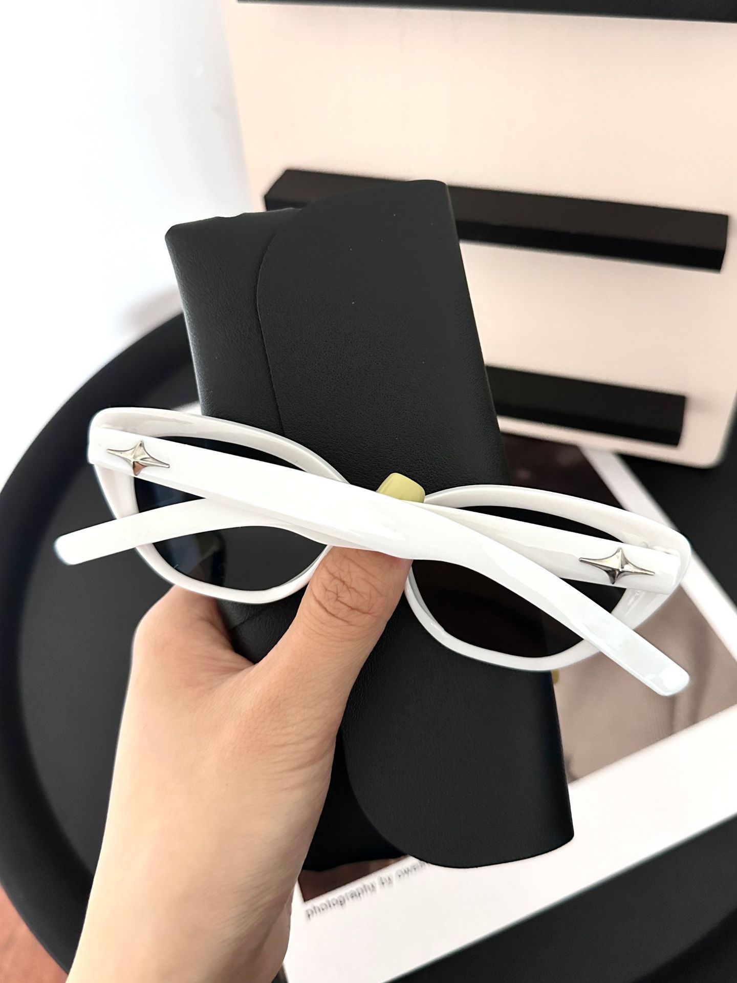 • 광택 있는 검정색 프레임 차 조각