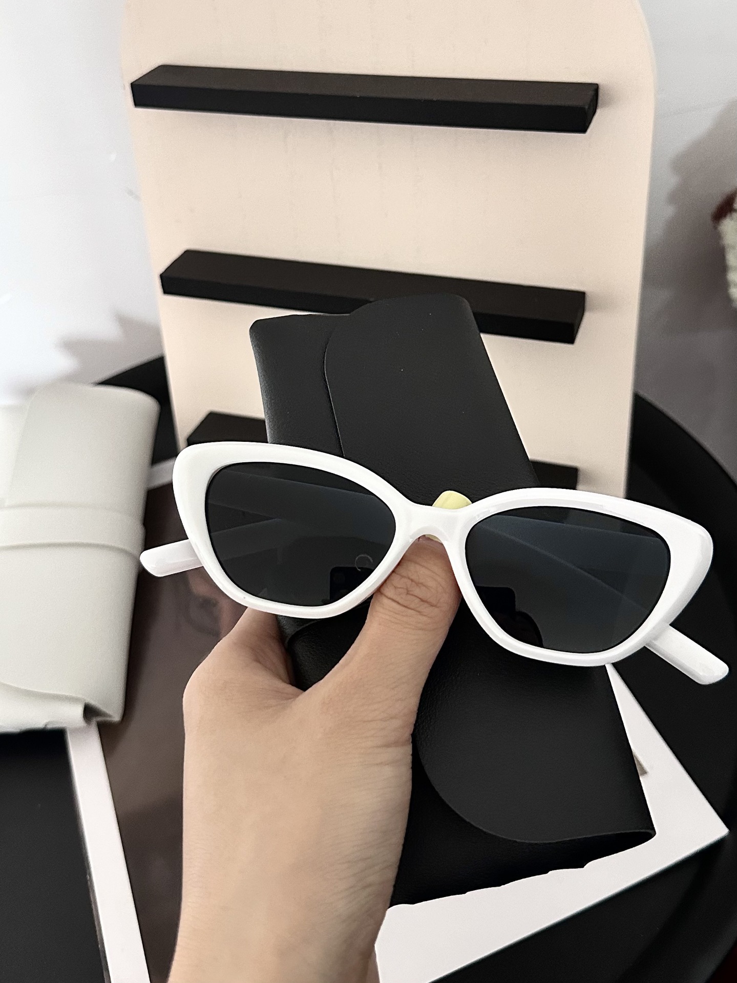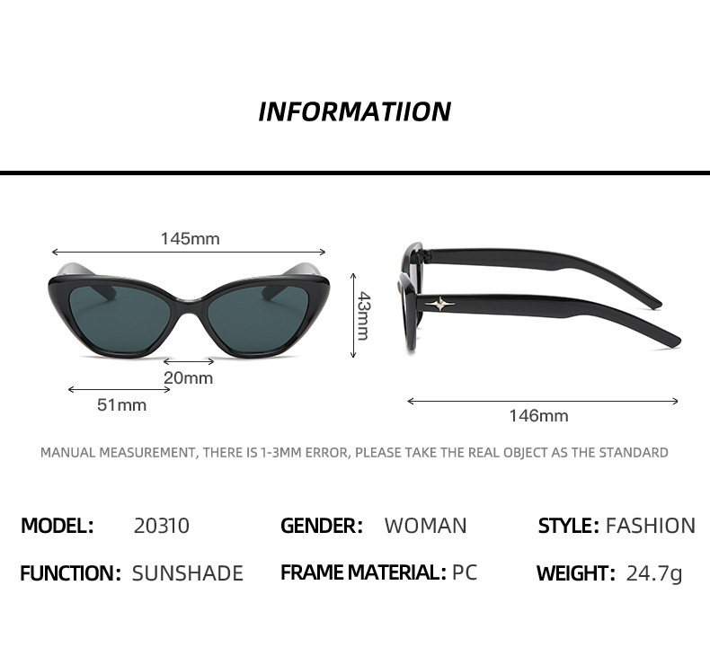 여성용 삼각형 캣아이 선글라스, 인스타 감성 블랙 스몰 프레임 선글라스, 자외선 차단, 스타일리쉬한 사진 촬영용 차양 안경스토어 가기
