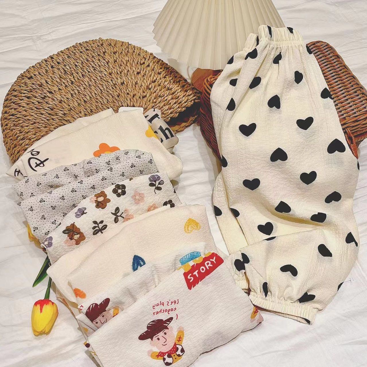 2025 여름 느슨한 새로운 어린이 모기 방지 바지 어린이 캐주얼 레깅스 아기 블루머 얇은 바지