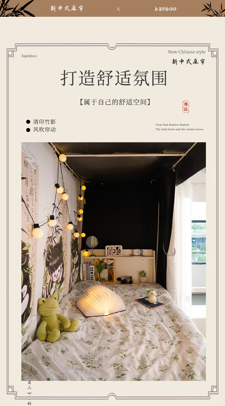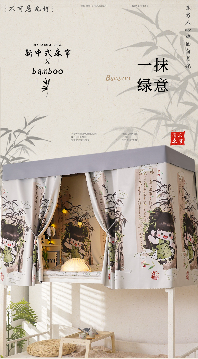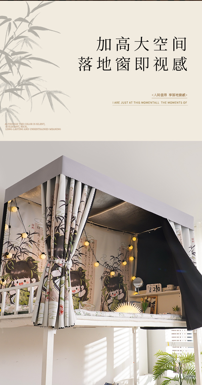 학생 기숙사 만화 침대 커튼, 강력한 차광 상단 침대 커튼, 남성용 및 여성용 모기장, 귀여운 하단 침대 커튼