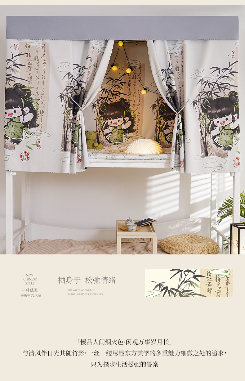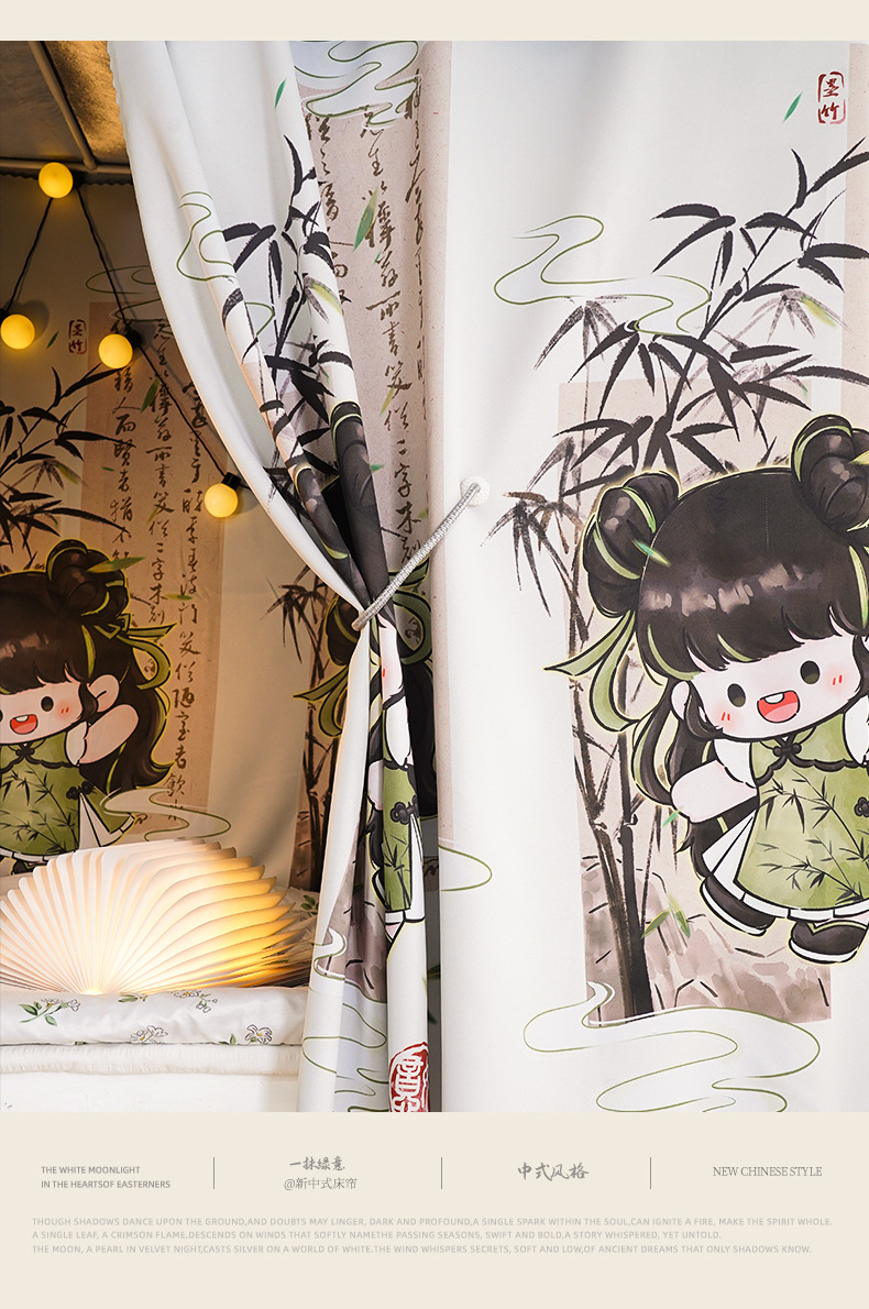 학생 기숙사 만화 침대 커튼, 강력한 차광 상단 침대 커튼, 남성용 및 여성용 모기장, 귀여운 하단 침대 커튼스토어 가기