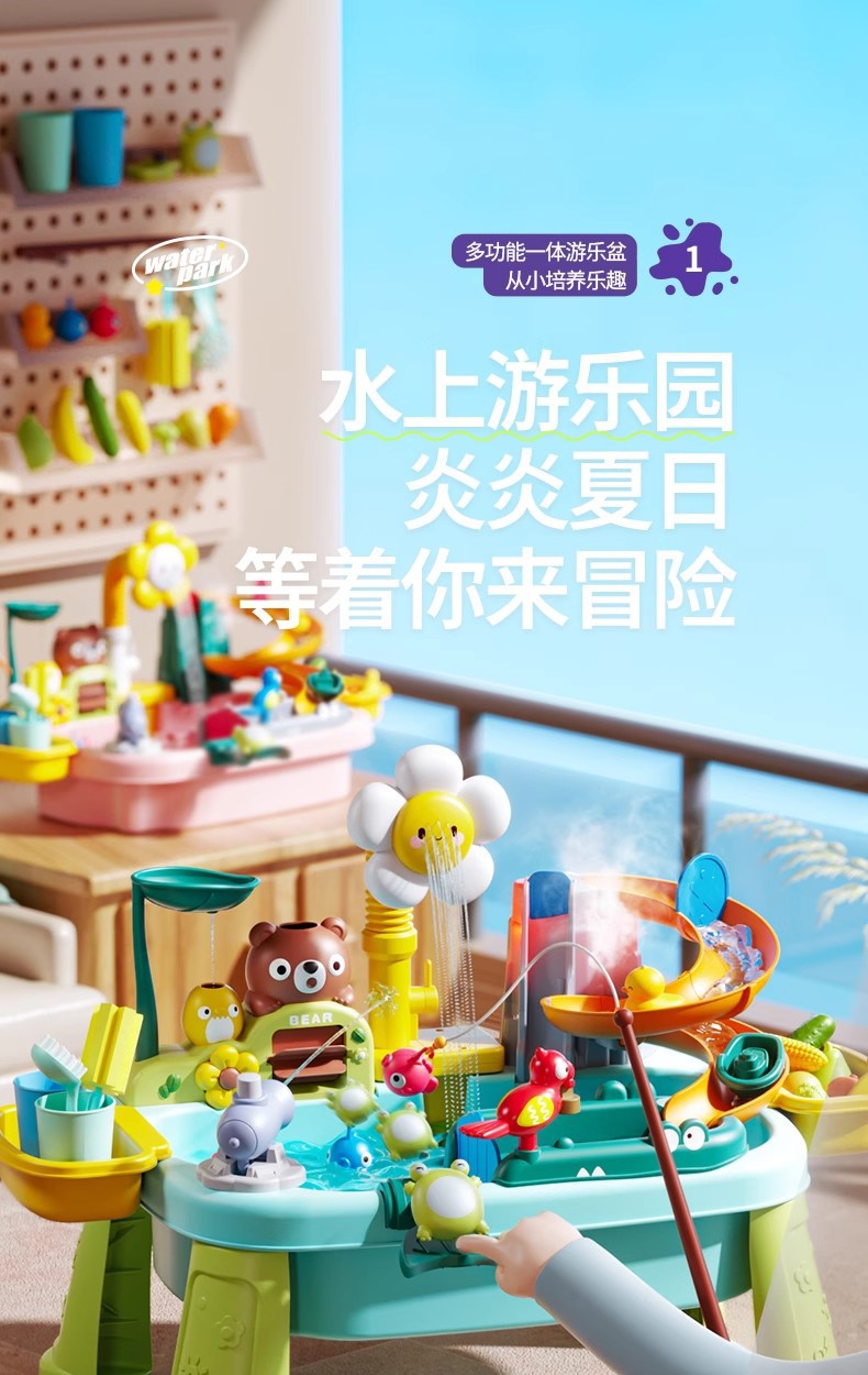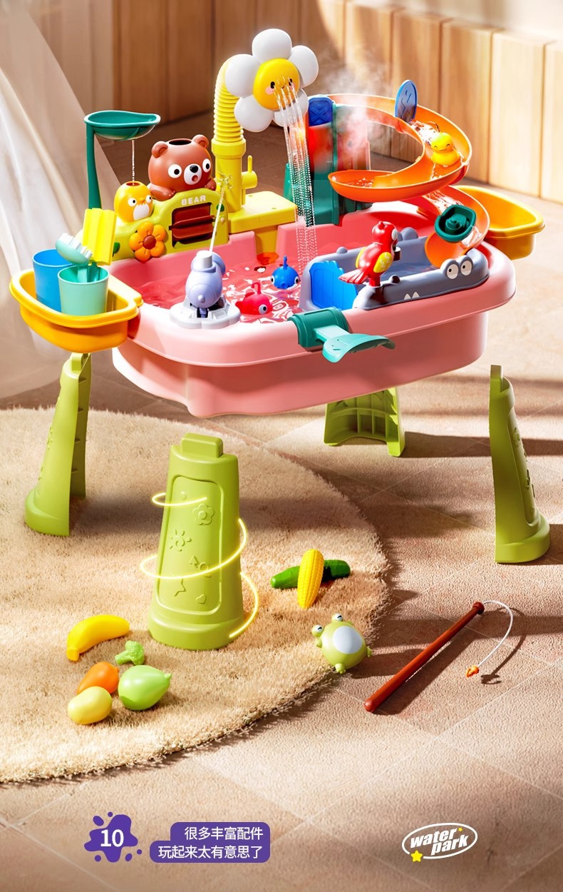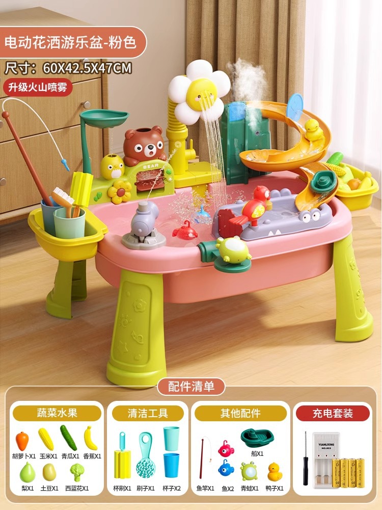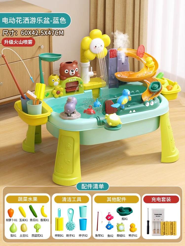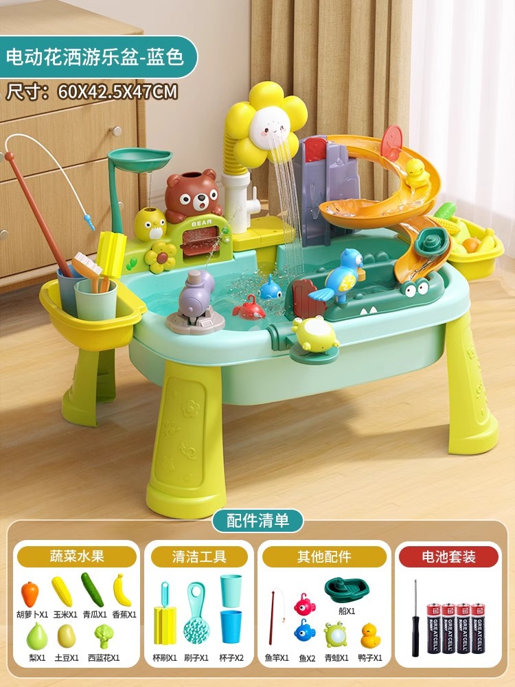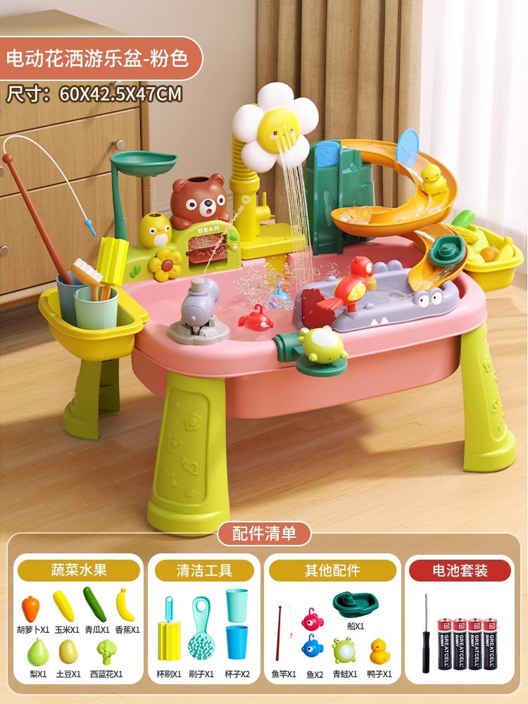 어린이 다기능 워터 파크 낚시 연못 전기 수도꼭지 식기 세척기 해바라기 물 스프레이 놀이 집 장난감스토어 가기
