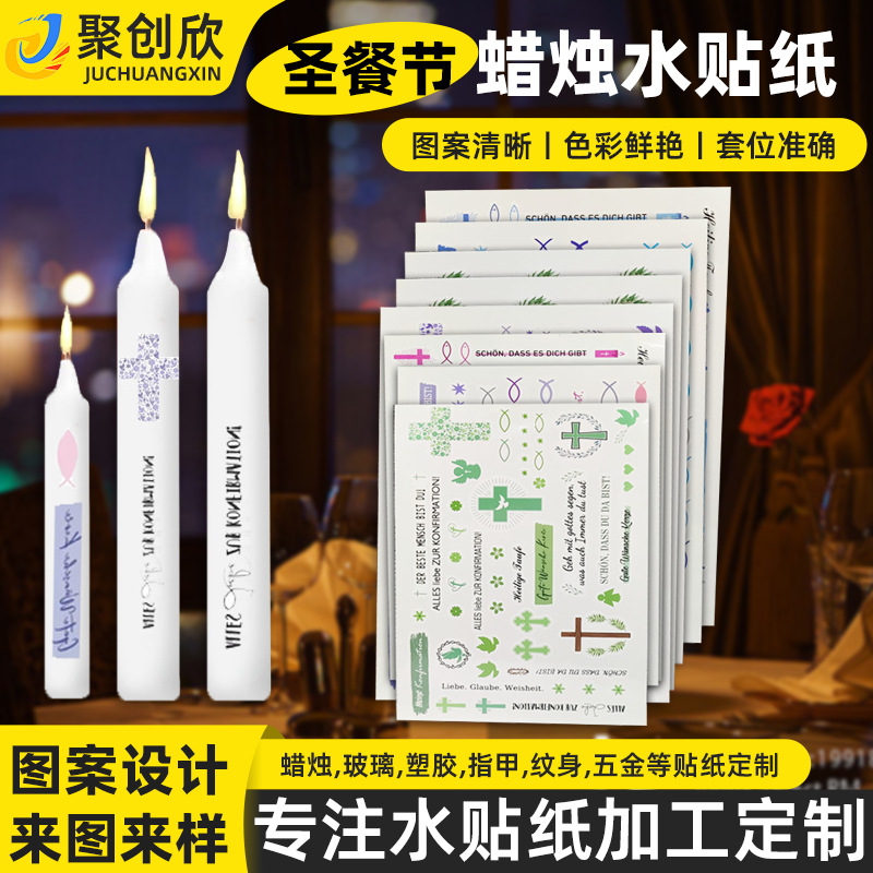 즉시 출고 가능한 성찬절 문신 스티커, 해외 직수입 캔들 워터 스티커, 독창적인 디자인 테마 강조