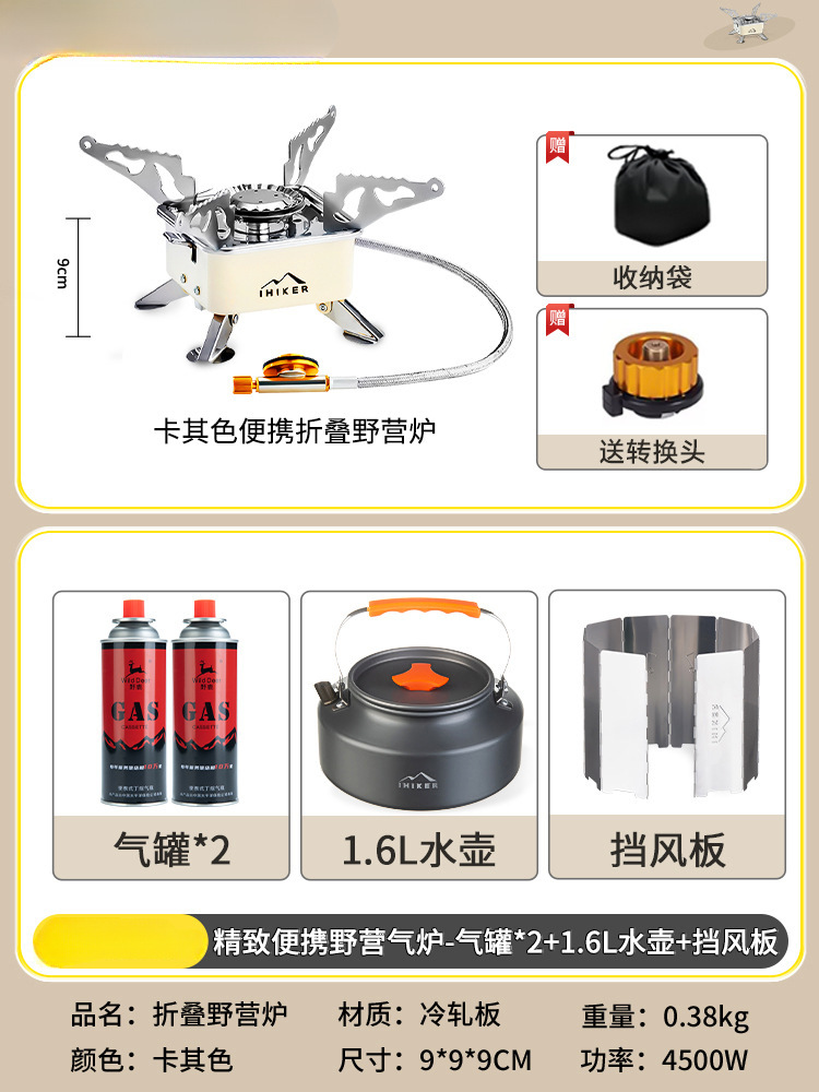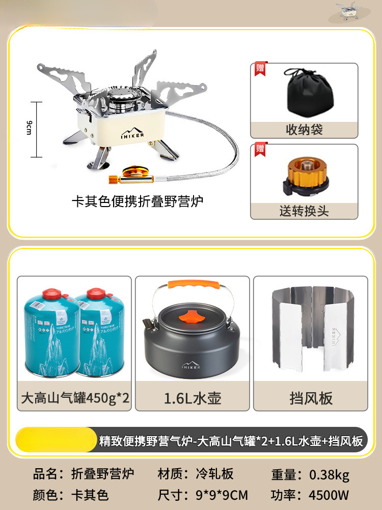 • 이중 사용 모델 + 450g 플랫 가스 탱크 * 2 + 1.6L 주전자 + 앞 유리