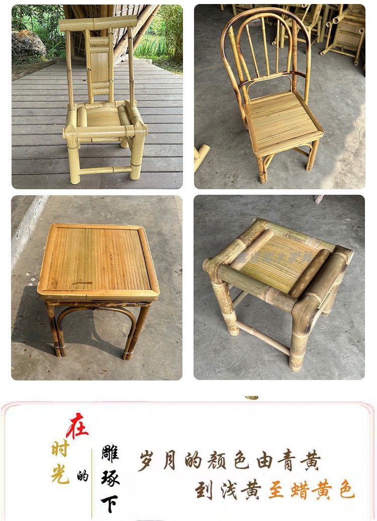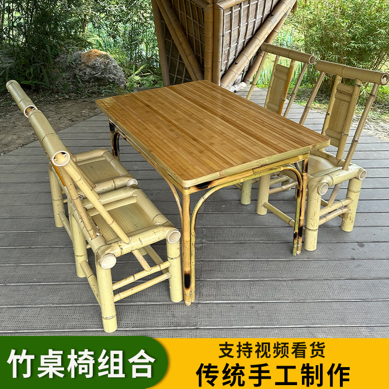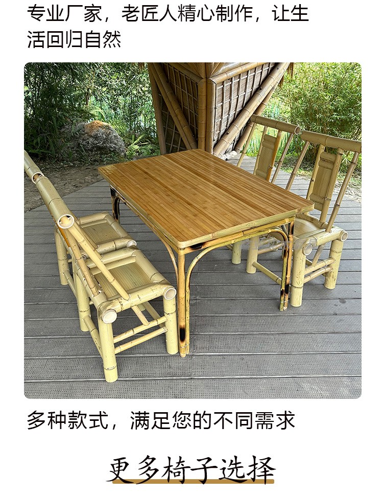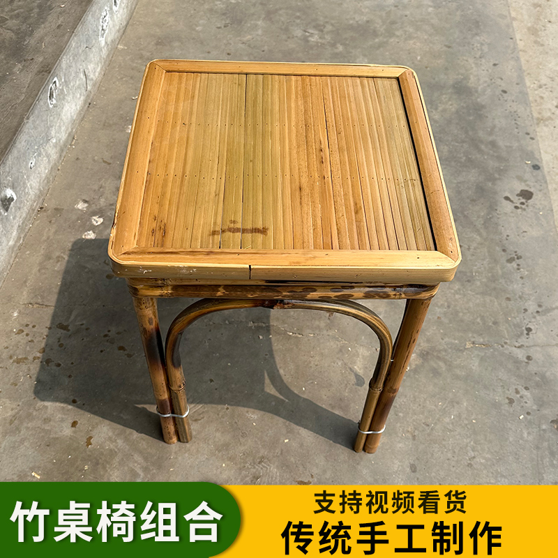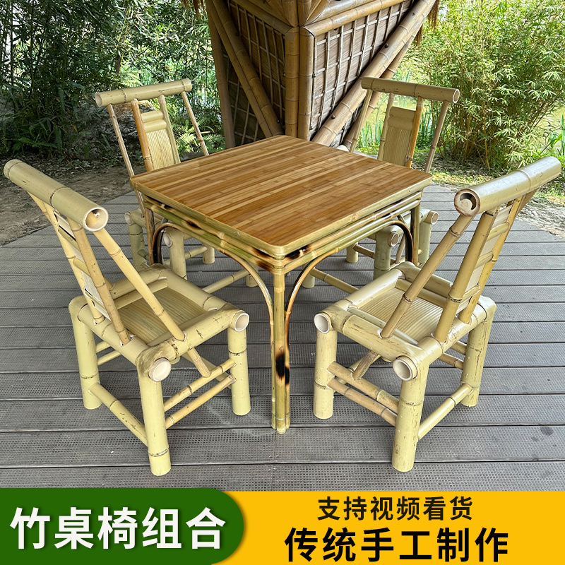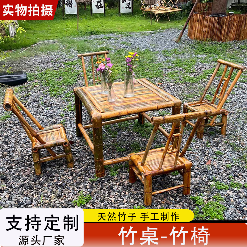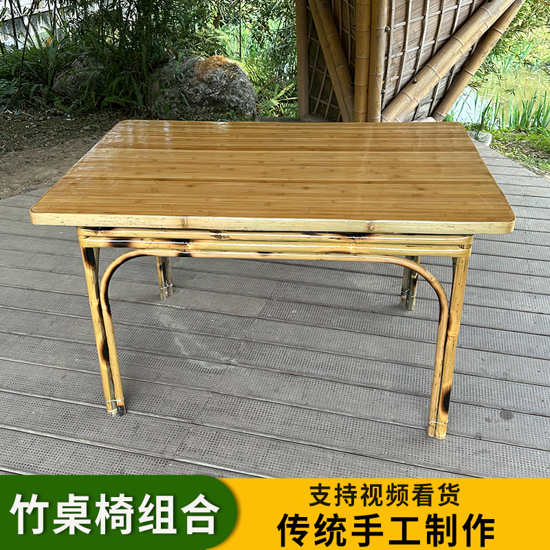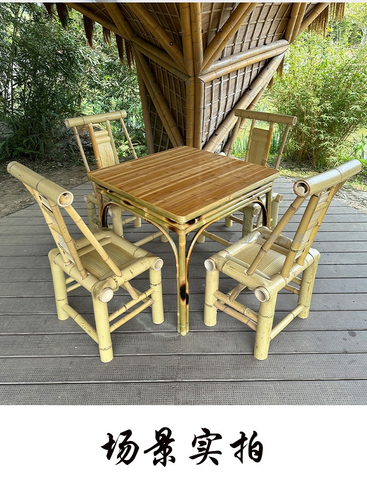 A6T 복고풍 대나무 식탁과 의자 조합 상업용 야외 댐 올드 찻집 사각형 테이블 호텔 레스토랑 대나무스토어 가기