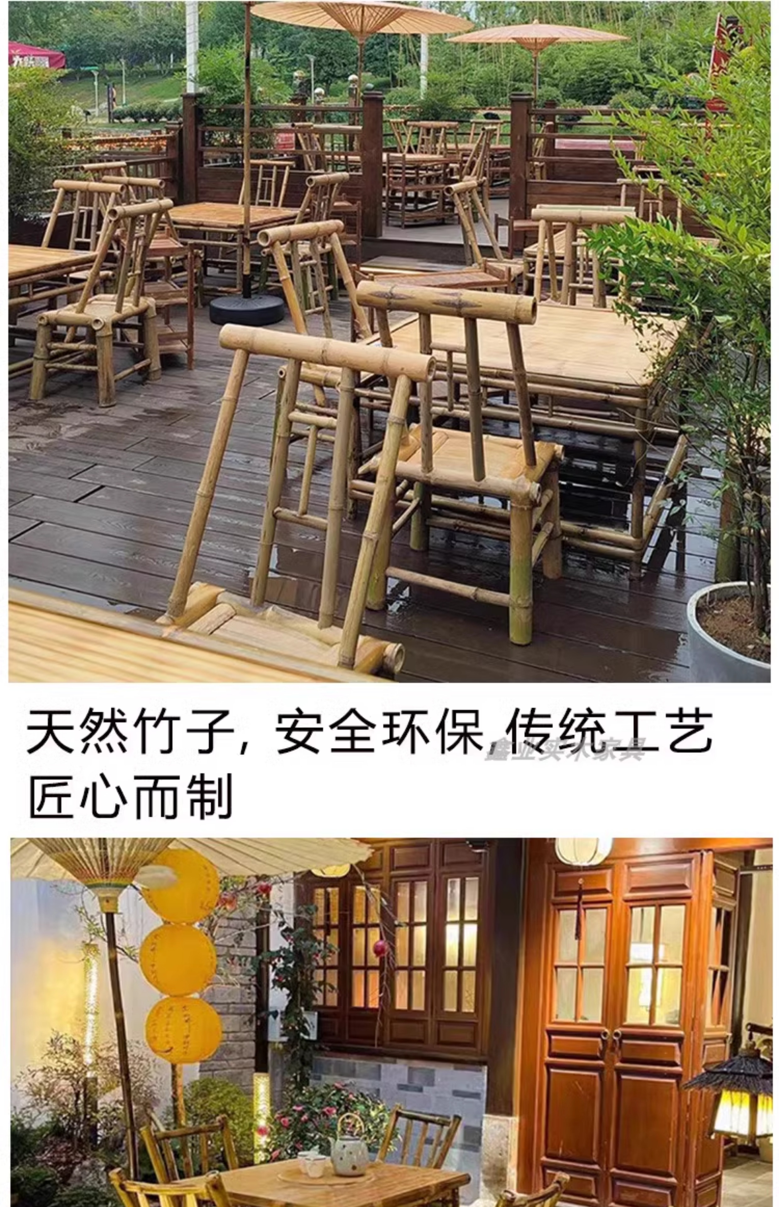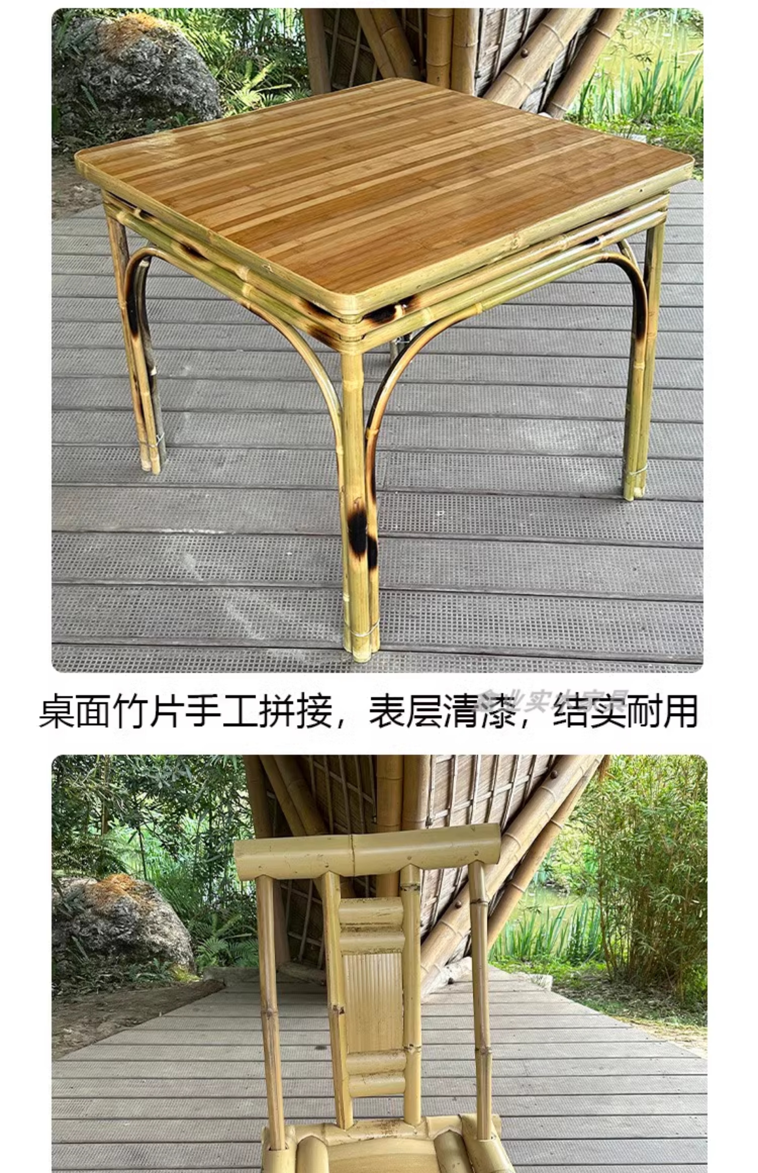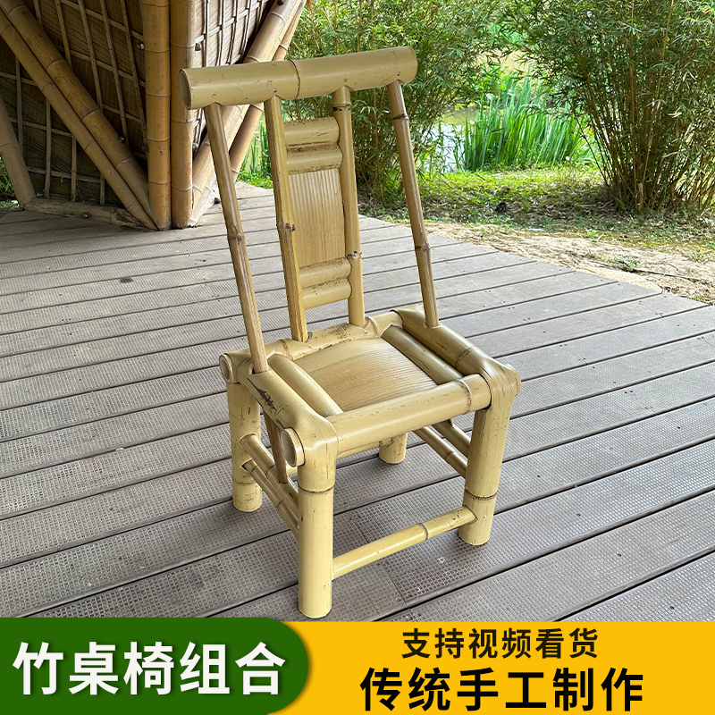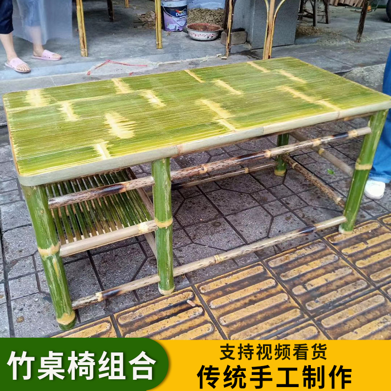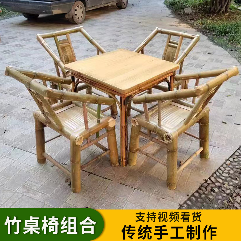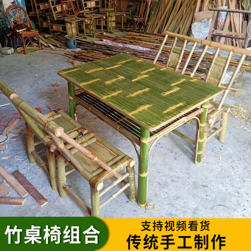 A6T 복고풍 대나무 식탁과 의자 조합 상업용 야외 댐 올드 찻집 사각형 테이블 호텔 레스토랑 대나무스토어 가기