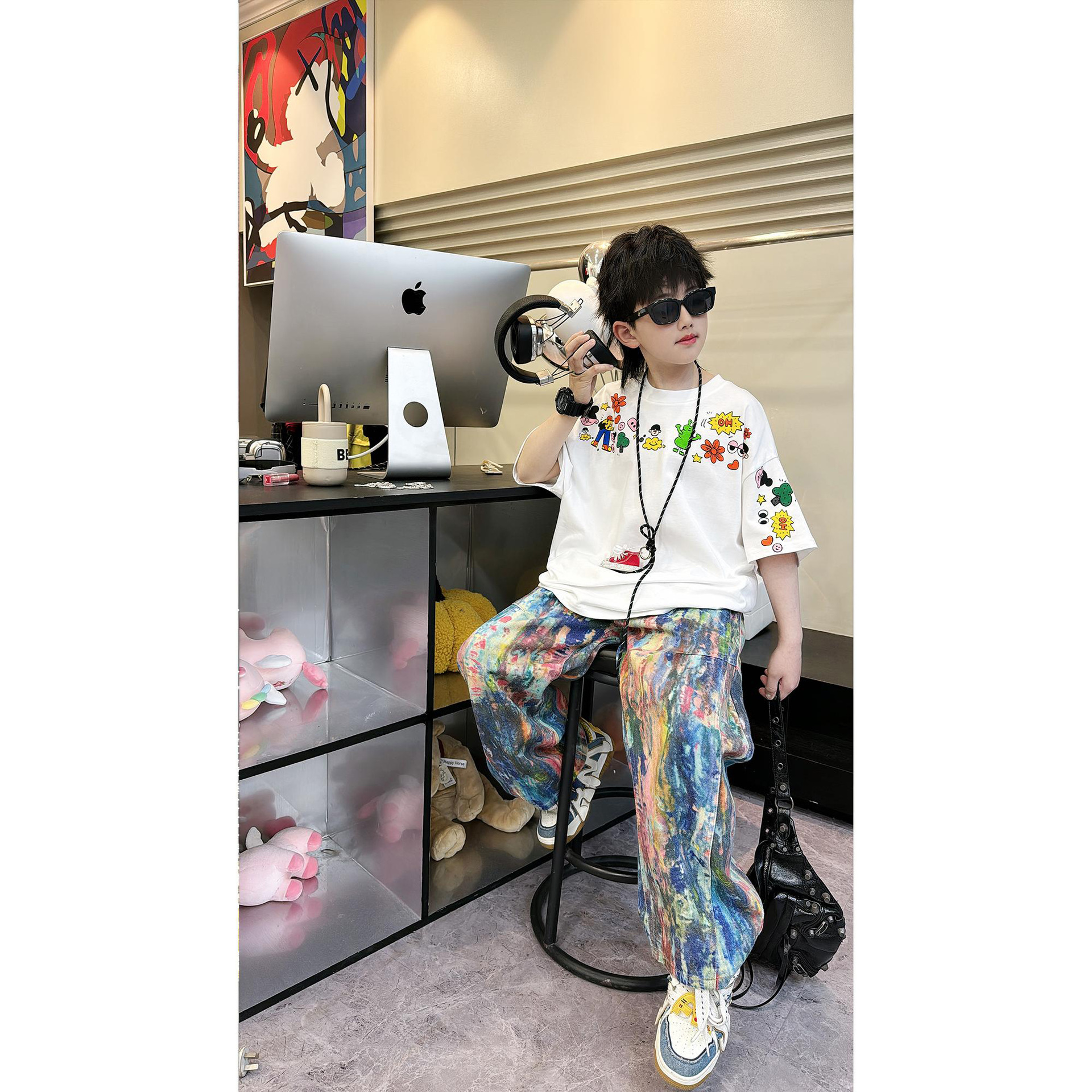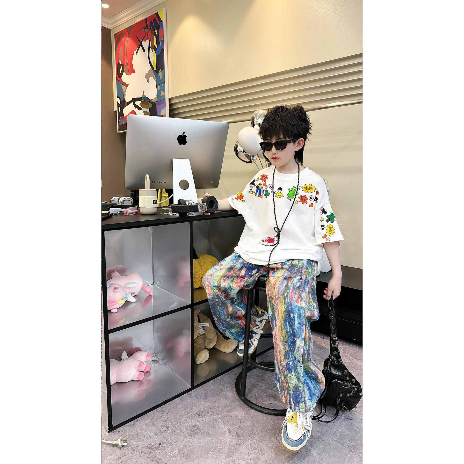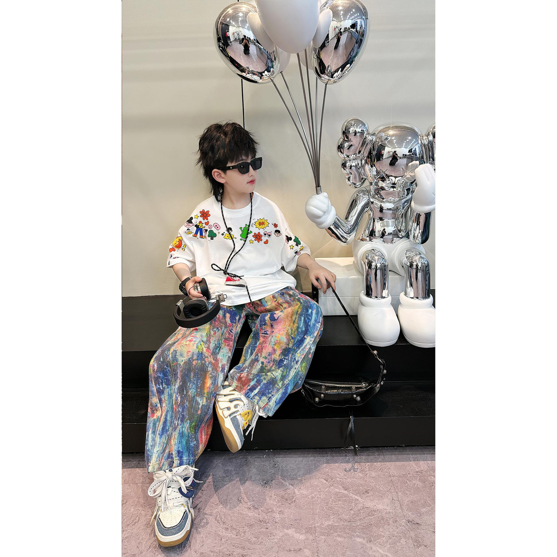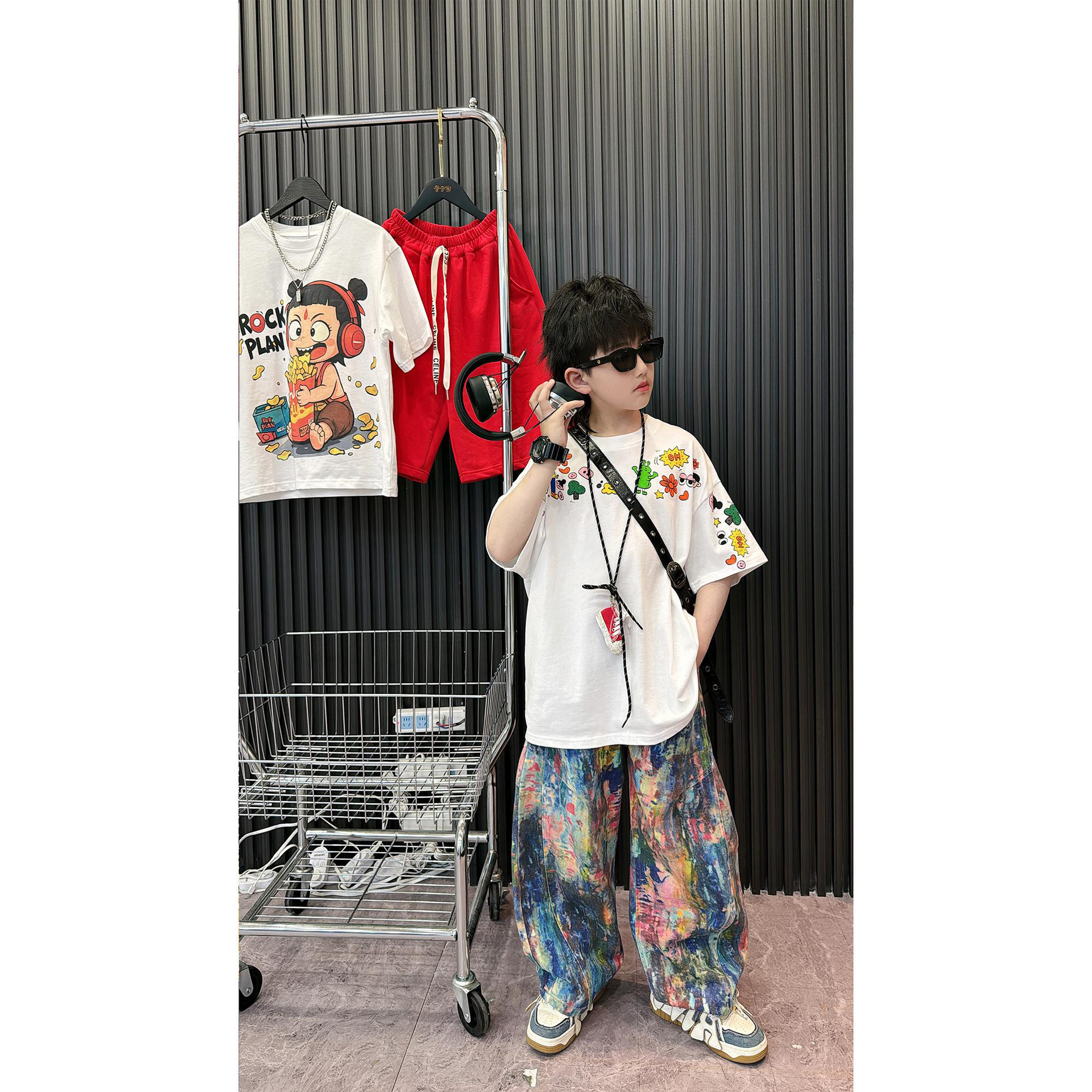 소년 여름 멋진 스트리트 코튼 탑 2025 한국어 버전 중대형 아동 캐주얼 루즈 반팔 티셔츠 트렌디하고 쿨스토어 가기