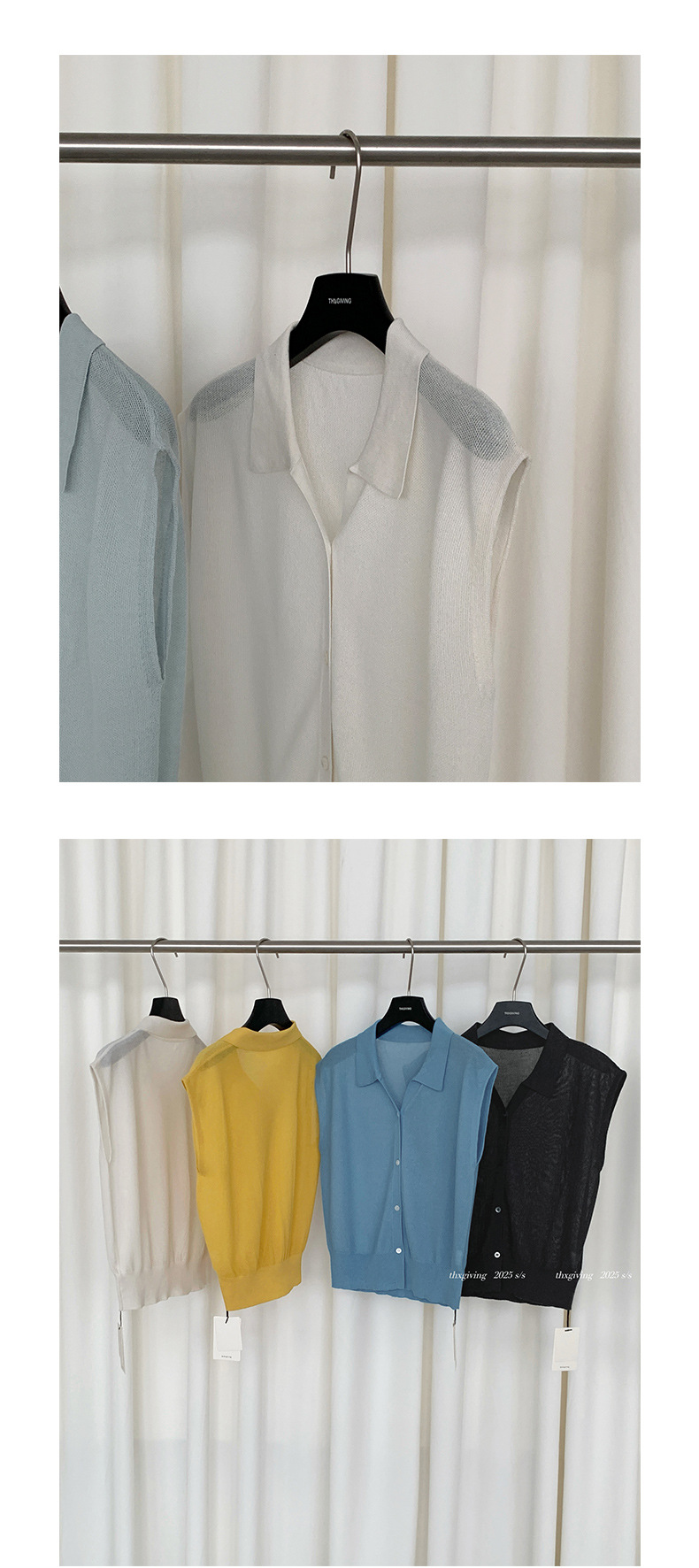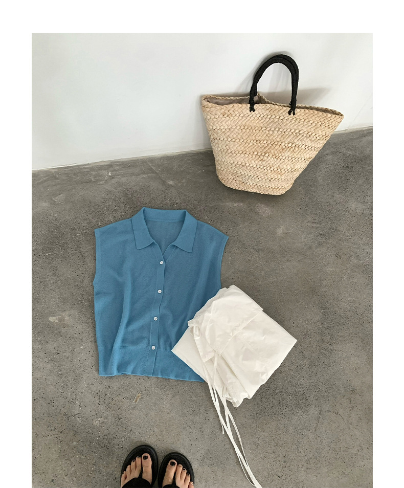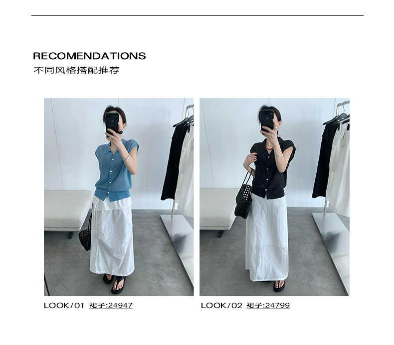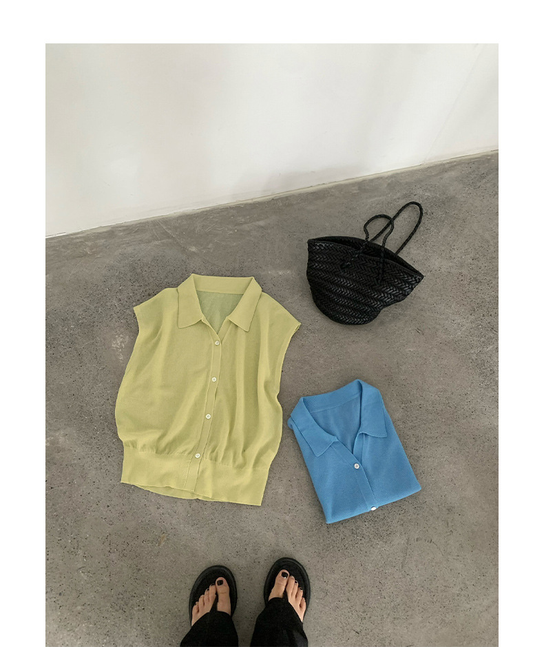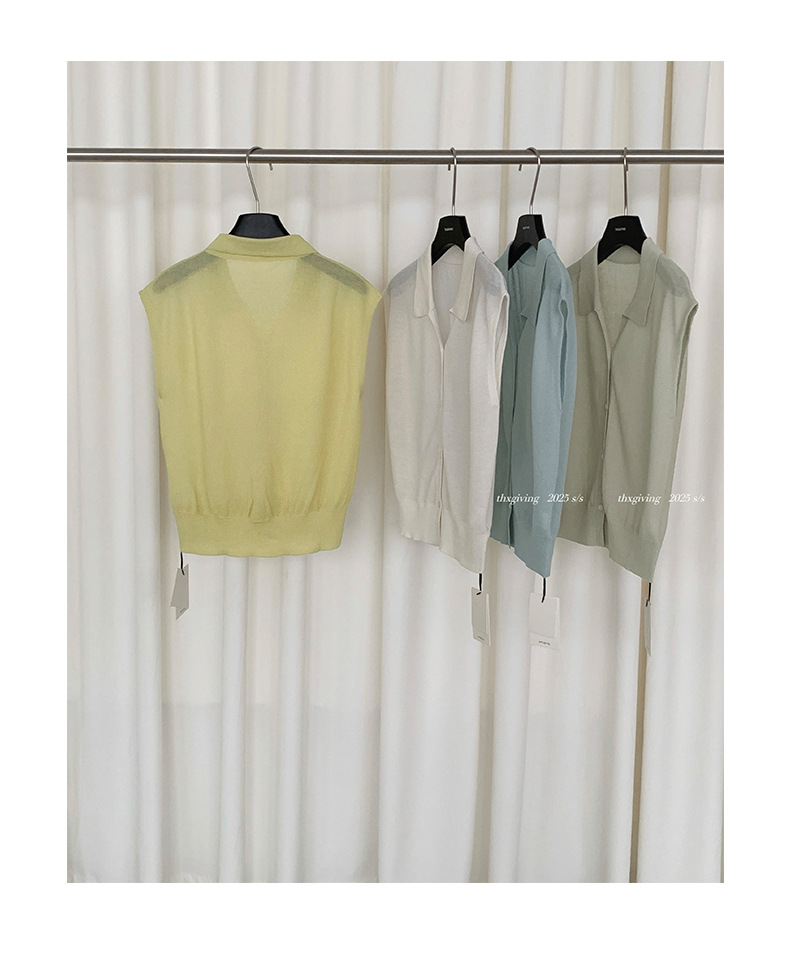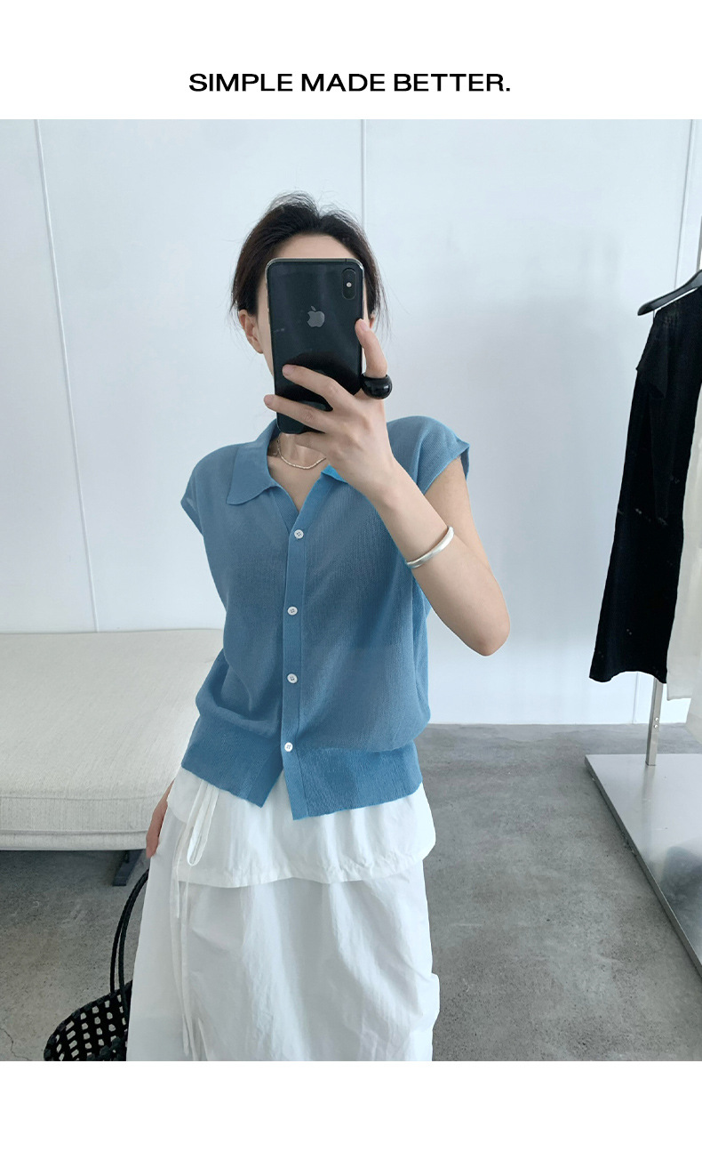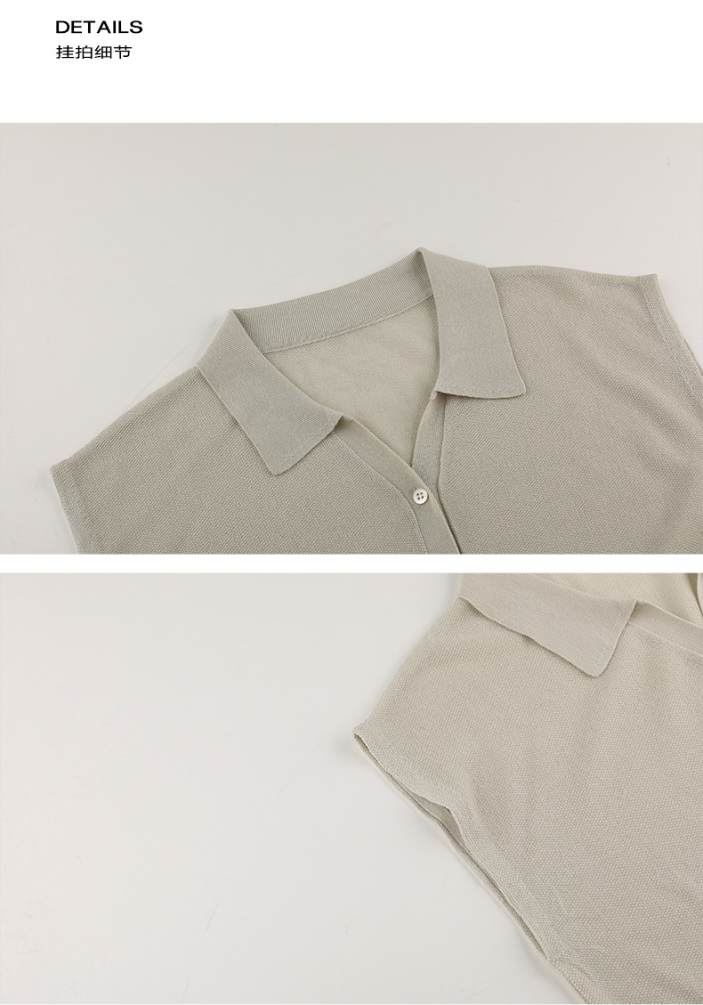 TG 심플 통근 솔리드 컬러 버튼 니트 폴로 셔츠 여성 2025 여름 신작 플라잉 슬리브 얇은 탑 24891스토어 가기