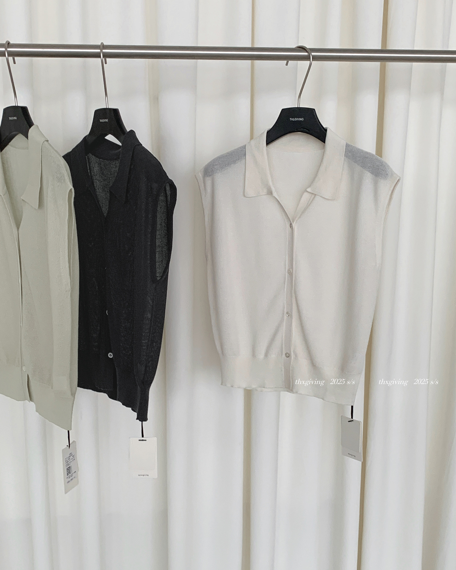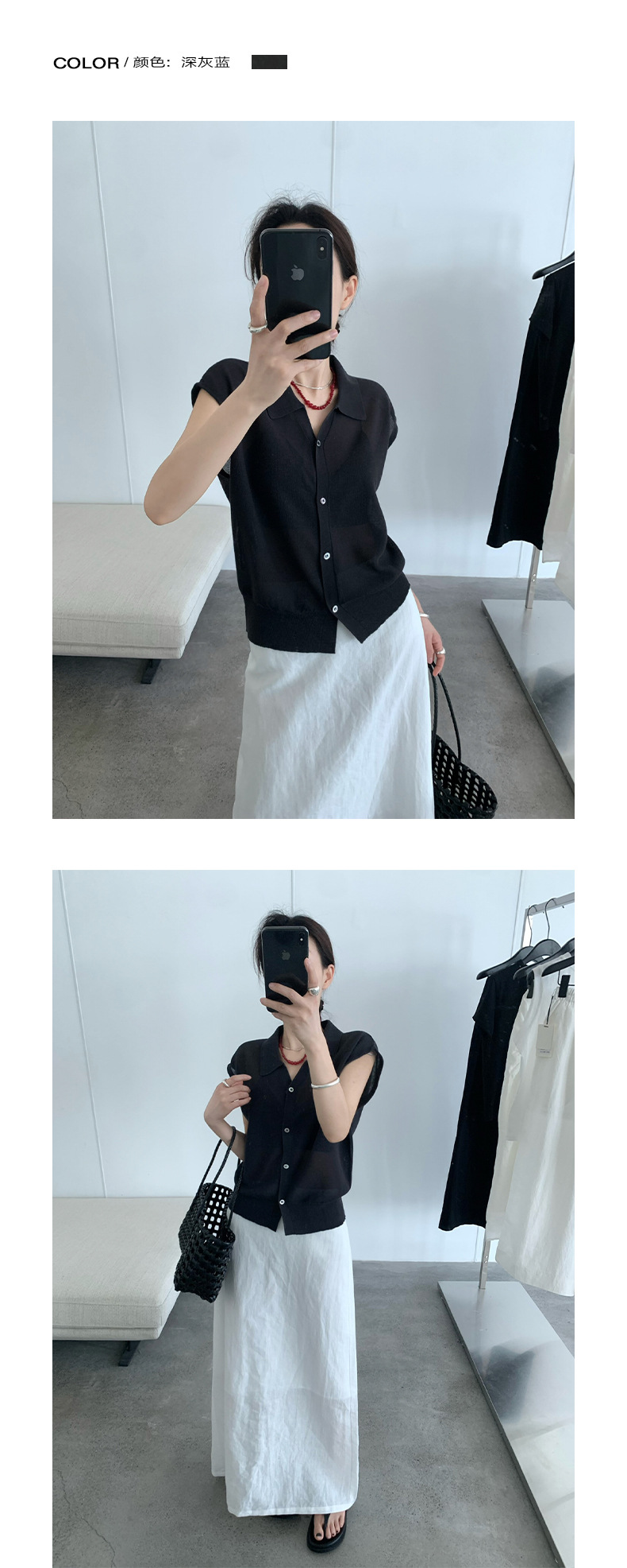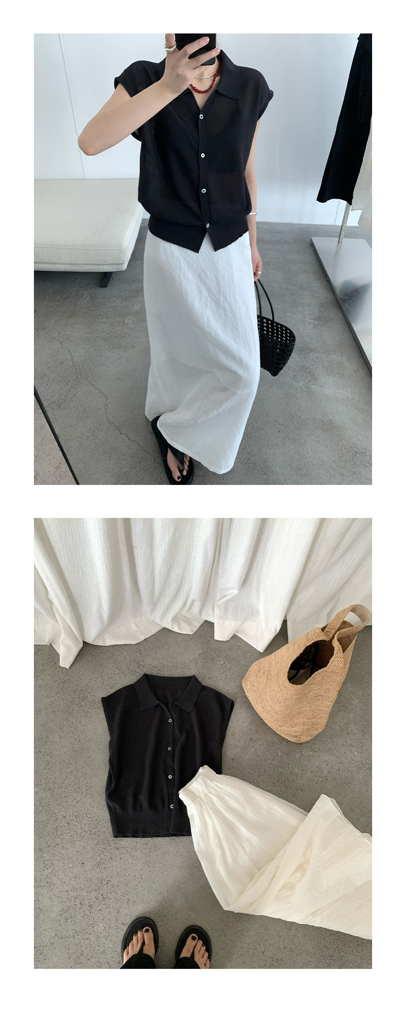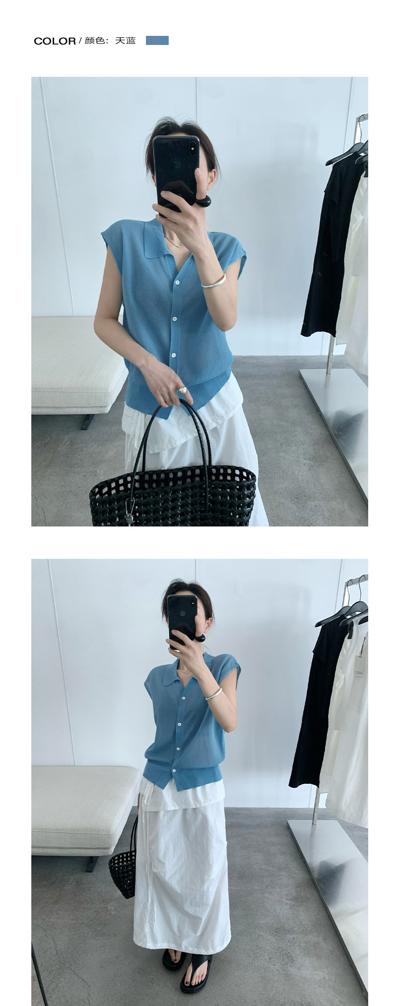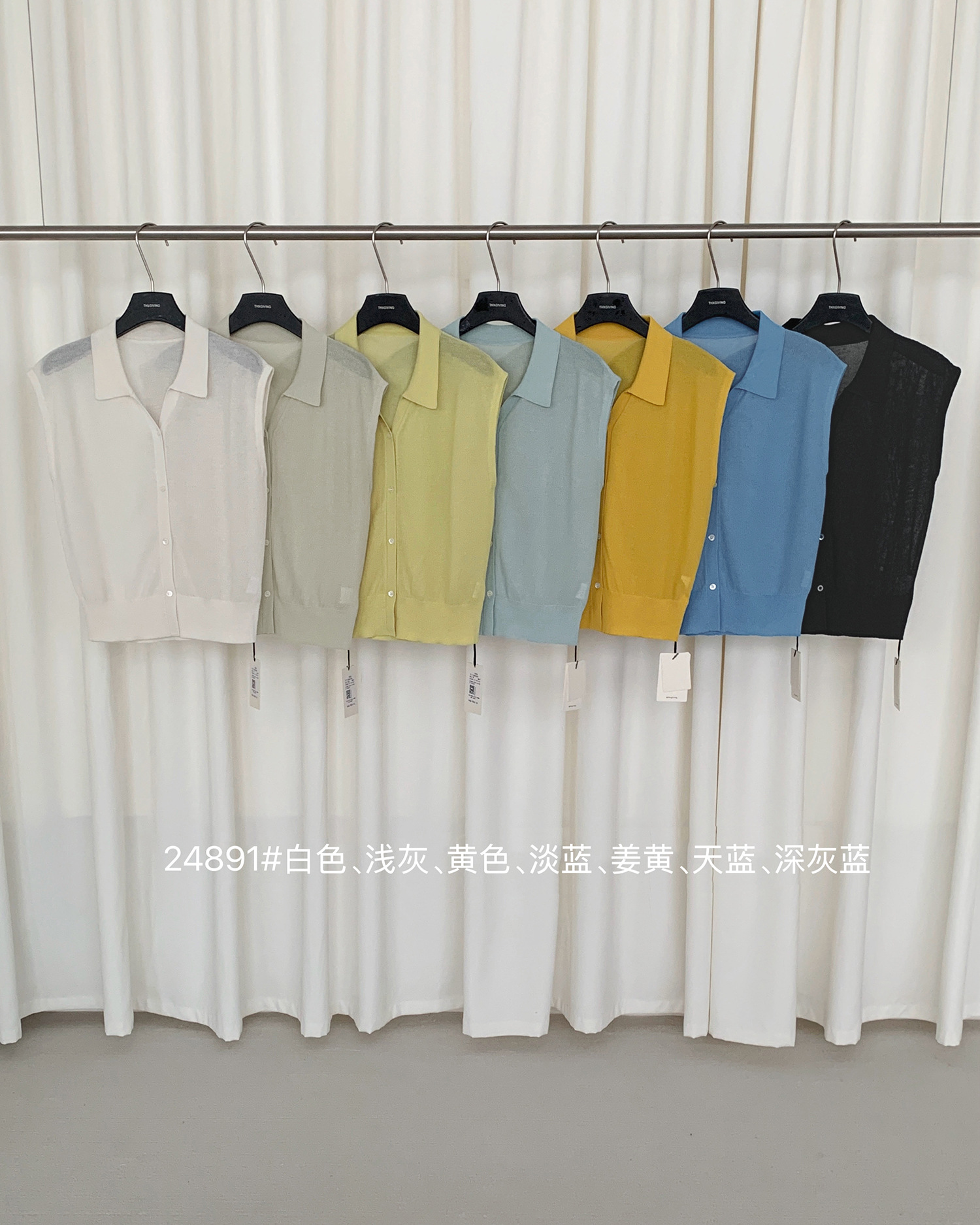 TG 심플 통근 솔리드 컬러 버튼 니트 폴로 셔츠 여성 2025 여름 신작 플라잉 슬리브 얇은 탑 24891스토어 가기