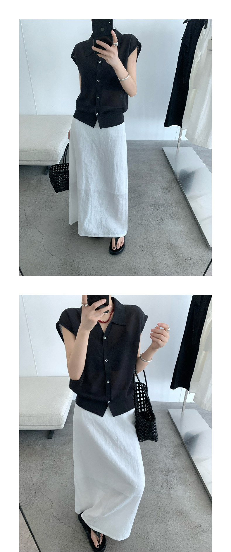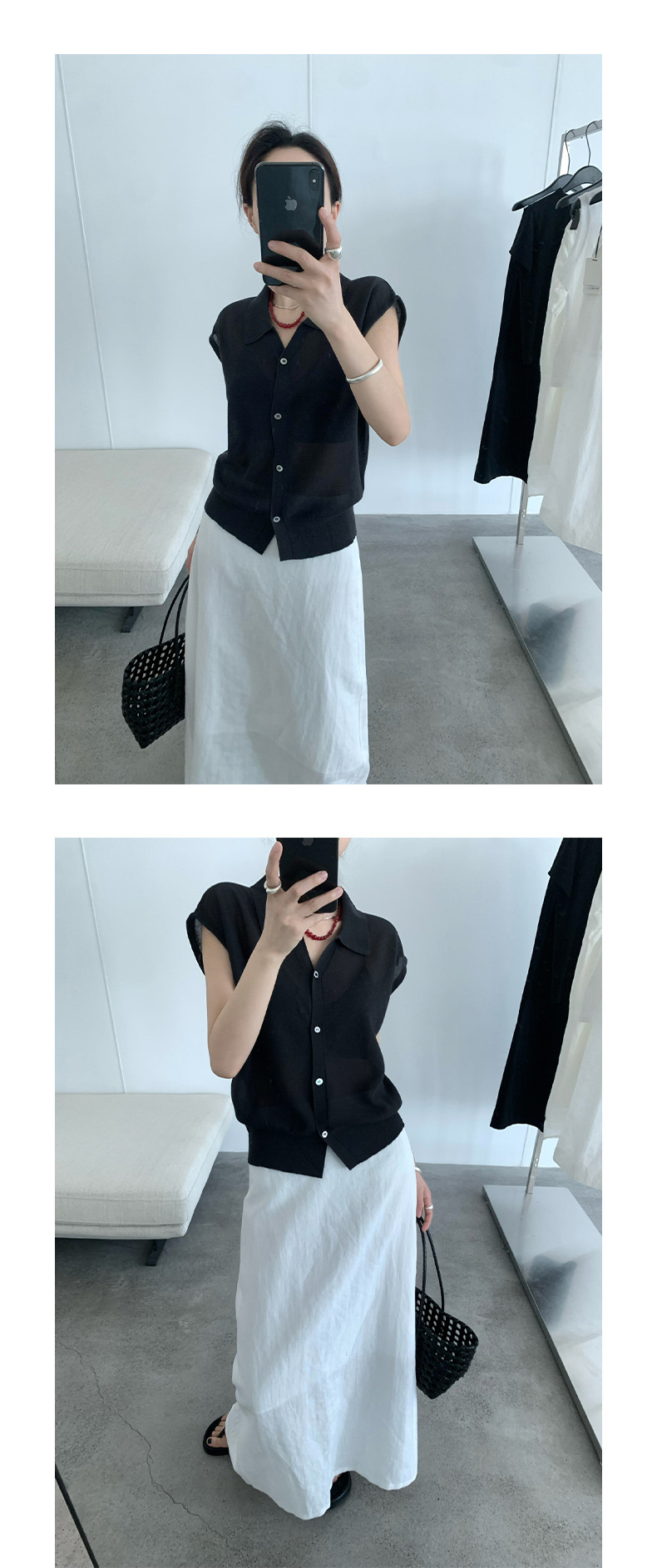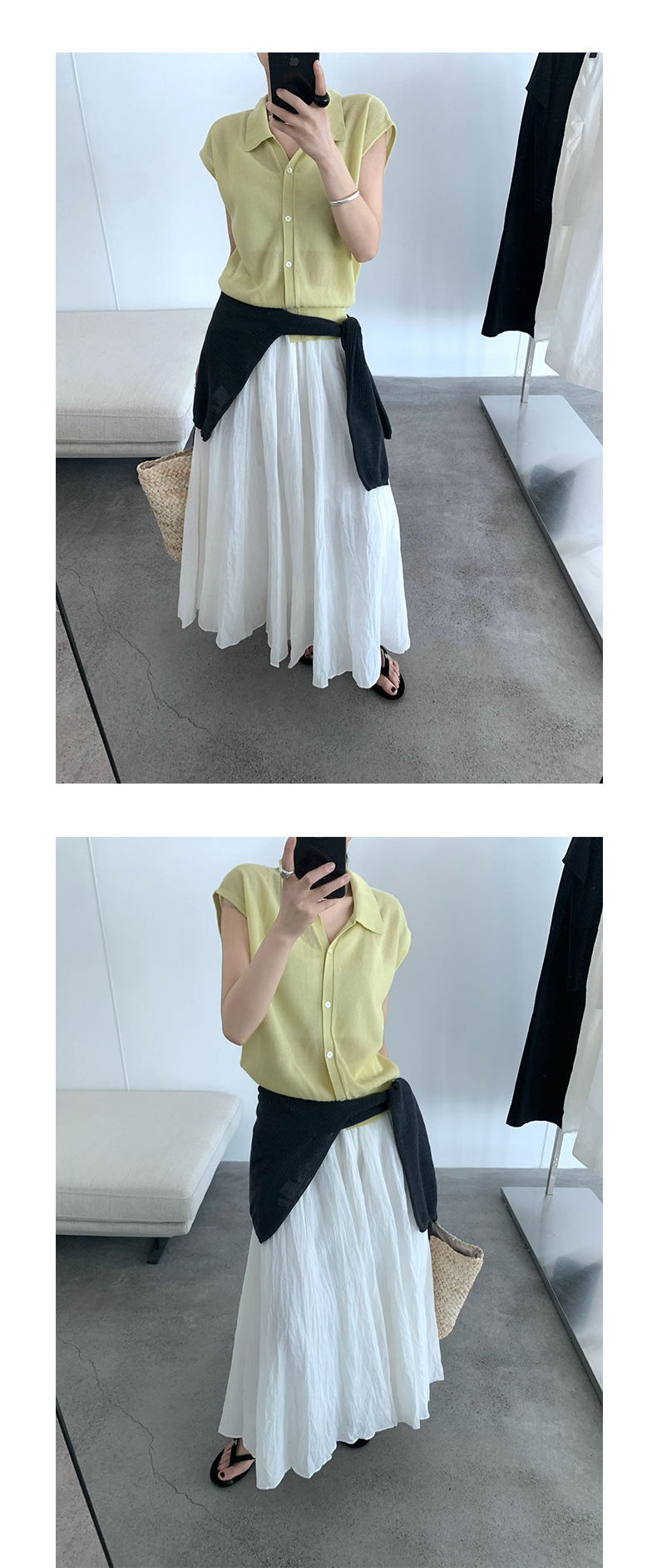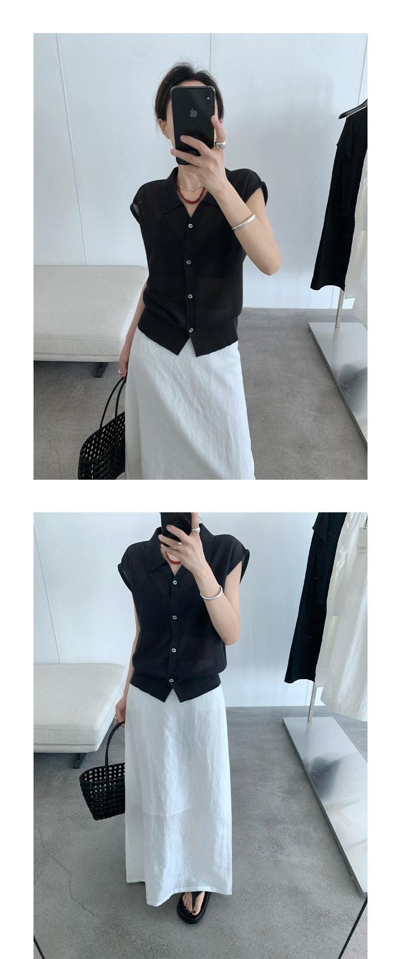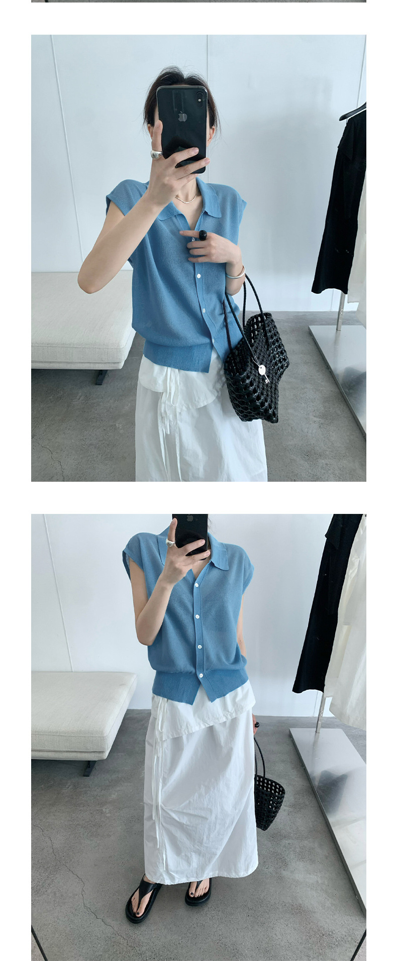 TG 심플 통근 솔리드 컬러 버튼 니트 폴로 셔츠 여성 2025 여름 신작 플라잉 슬리브 얇은 탑 24891스토어 가기