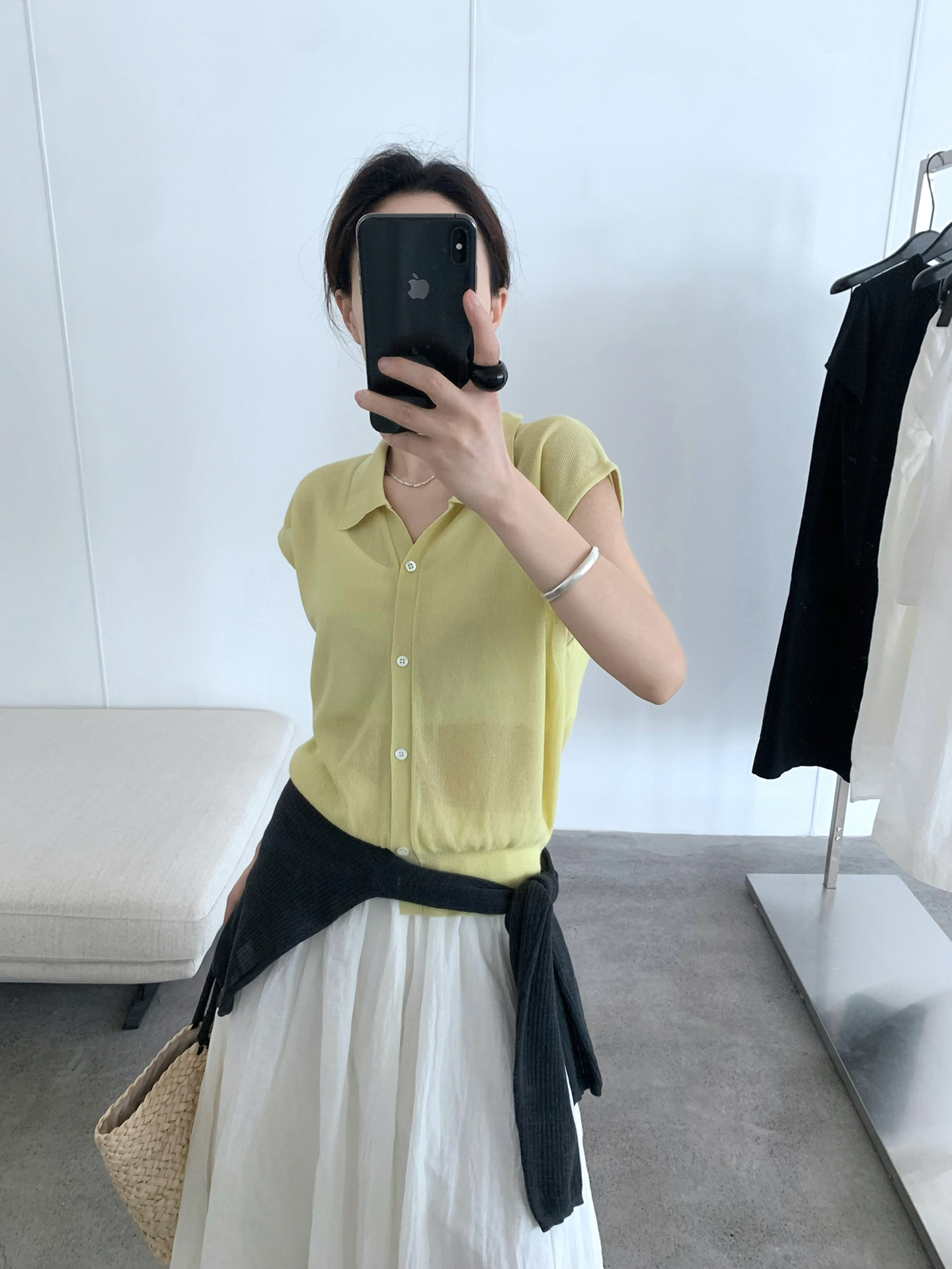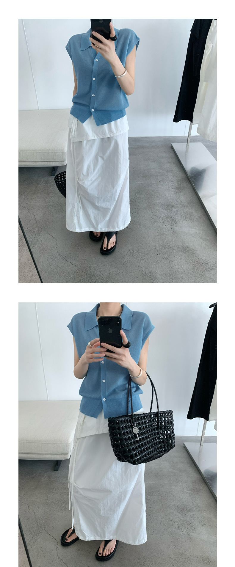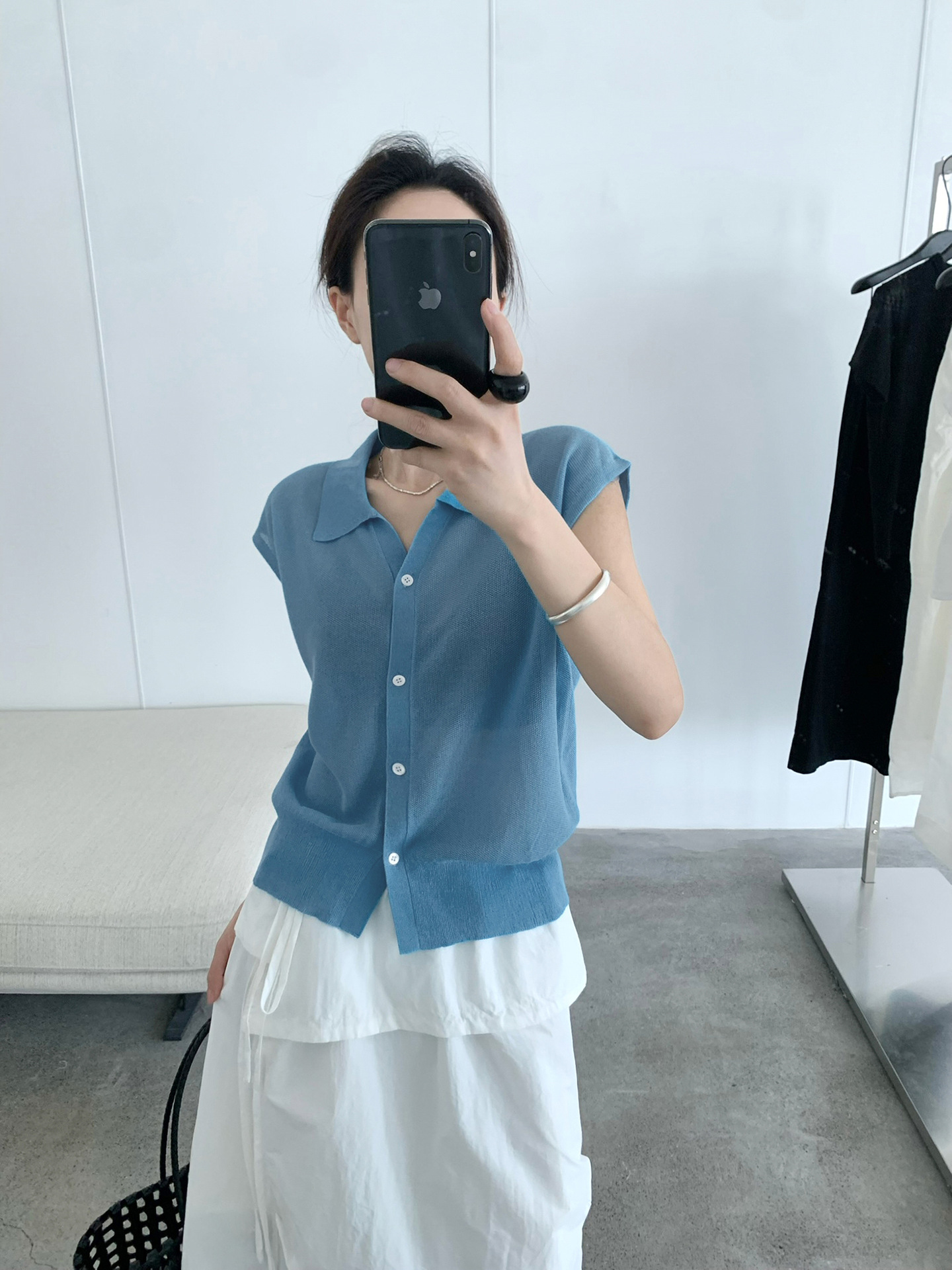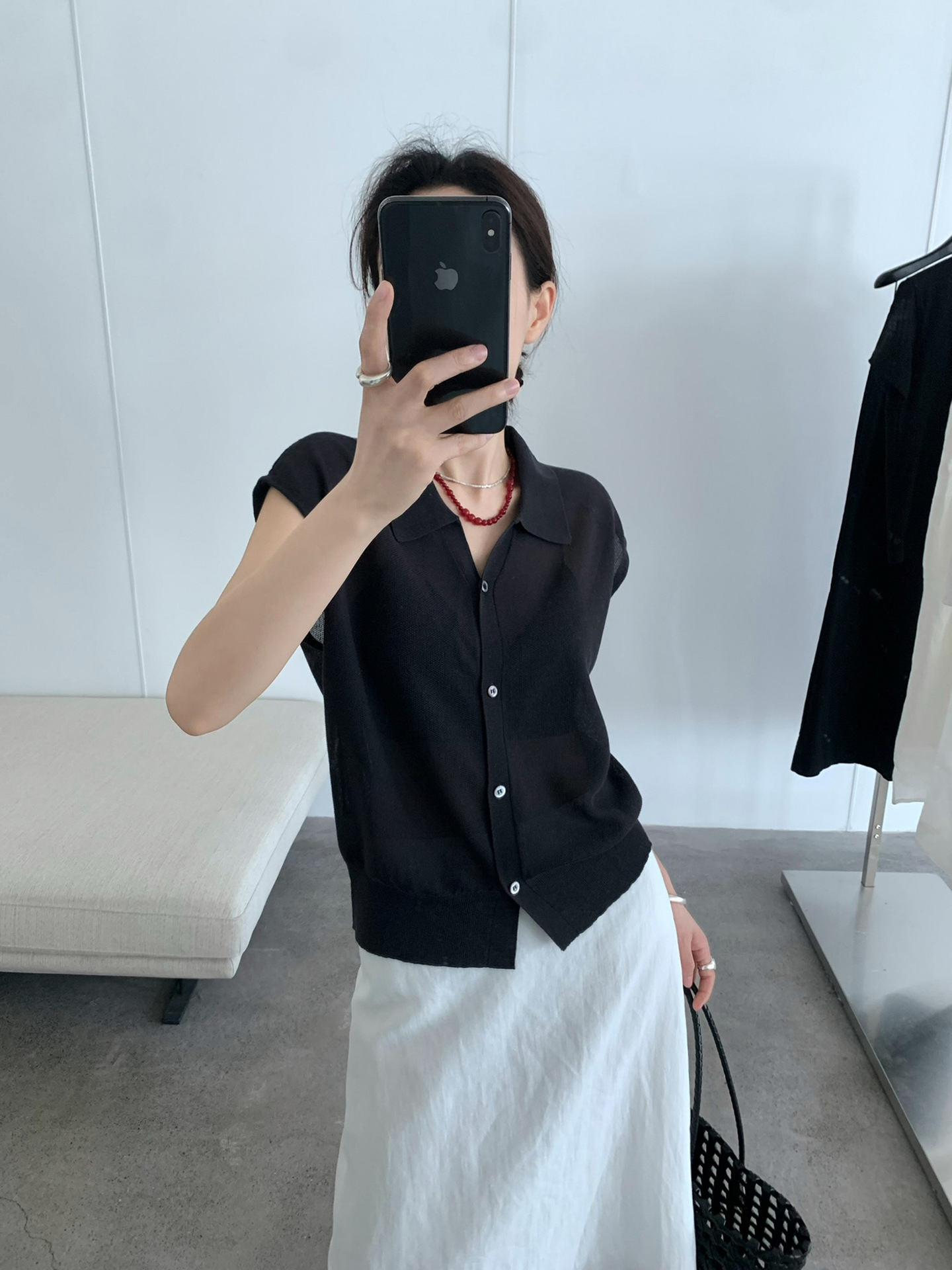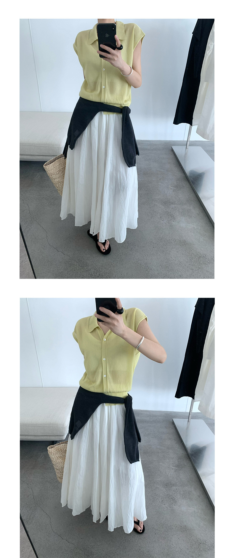 TG 심플 통근 솔리드 컬러 버튼 니트 폴로 셔츠 여성 2025 여름 신작 플라잉 슬리브 얇은 탑 24891스토어 가기