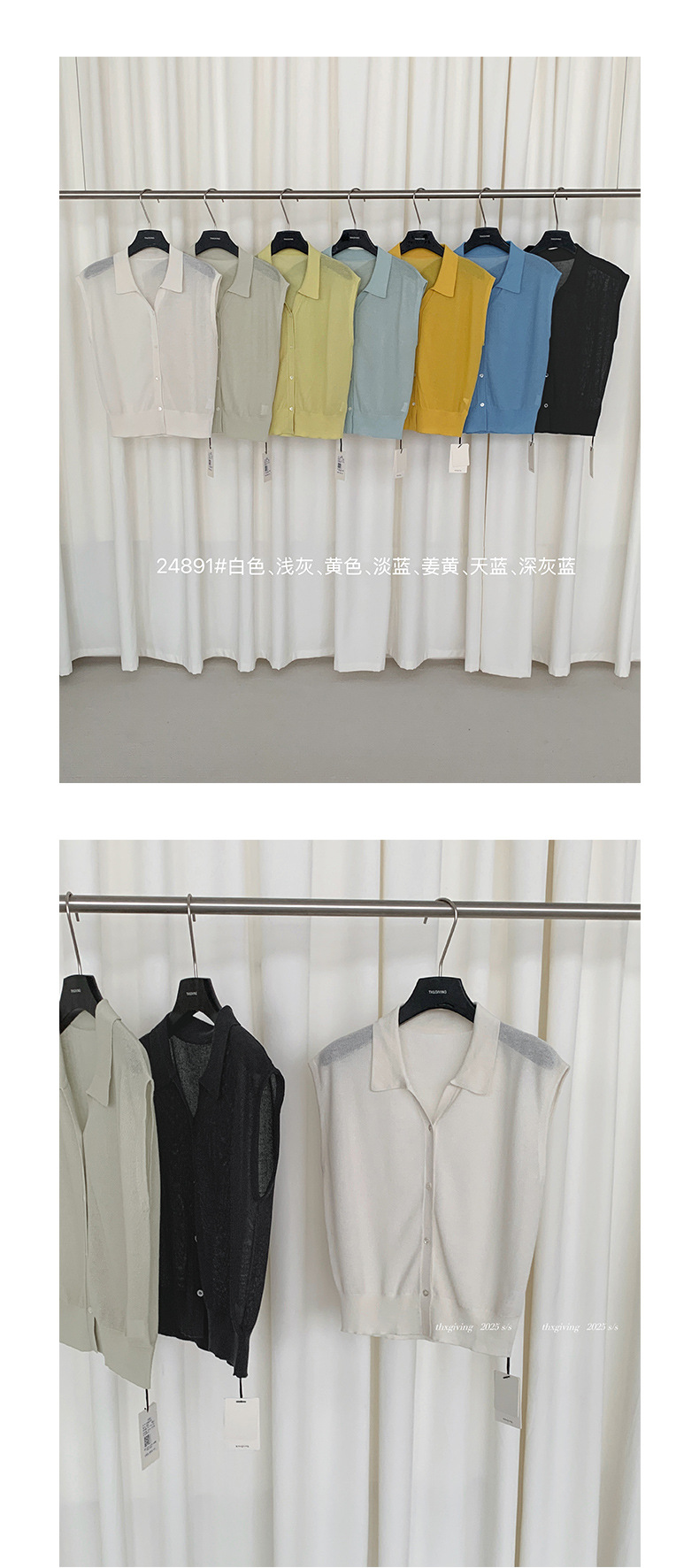 TG 심플 통근 솔리드 컬러 버튼 니트 폴로 셔츠 여성 2025 여름 신작 플라잉 슬리브 얇은 탑 24891