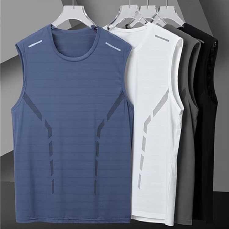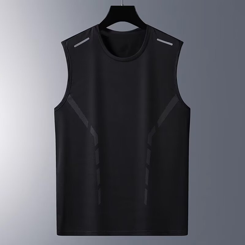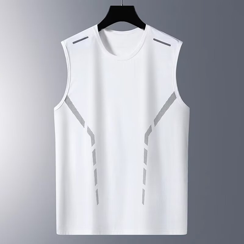 아이스 실크 민소매 티셔츠 남성용 스포츠 농구 탑 피트니스 트레이닝 복 러닝 플러스 사이즈 조끼 조끼 육상