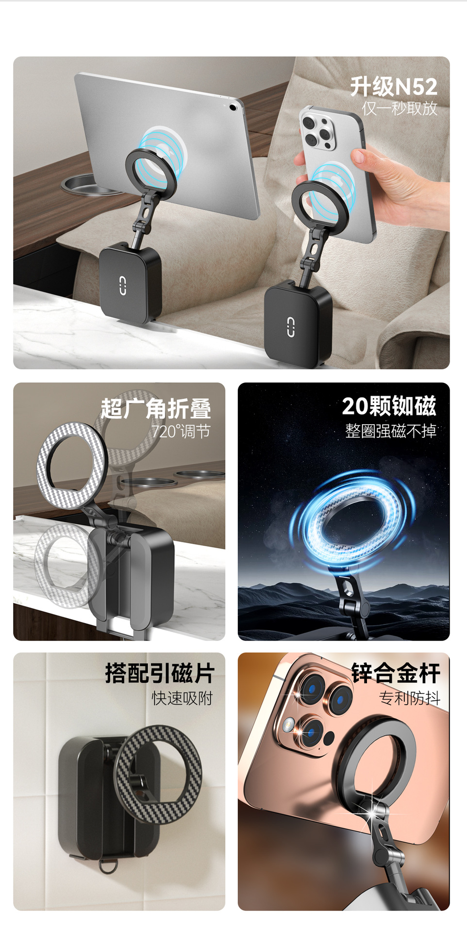 Magsafe 마그네틱 브래킷 다기능 유니버설 조정 자동차 전화 홀더 휴대용 접이식 데스크탑 브래킷