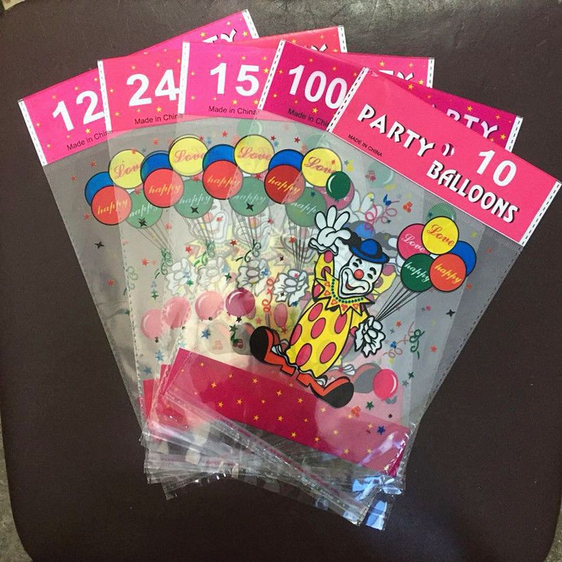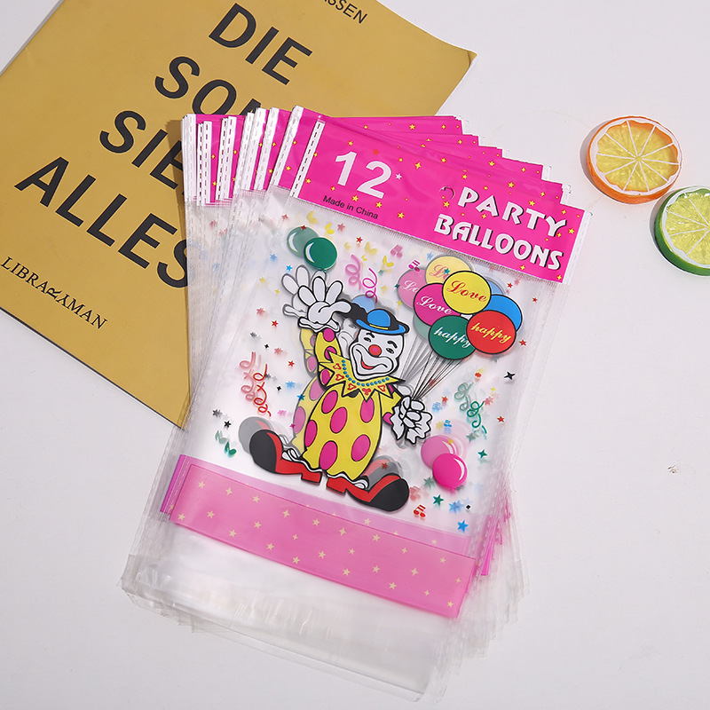 빨간색 광대 풍선 가방 컬러 인쇄 OPP 포장 가방 접착식 가방 투명 플라스틱 PE 지퍼백 도매스토어 가기